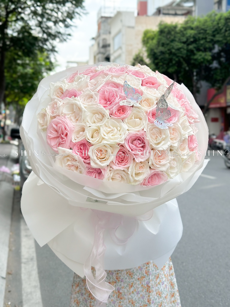 Bó Hoa 50 hồng Ohara Hồng mix Ohara trắng S484