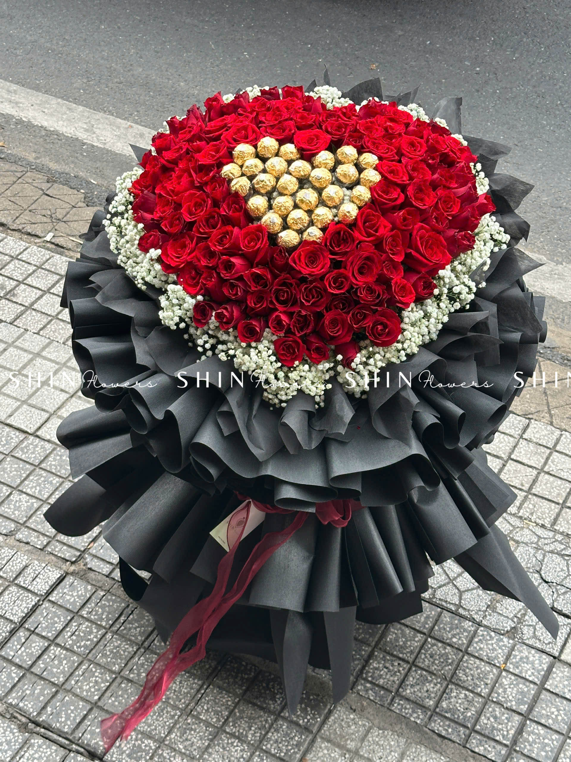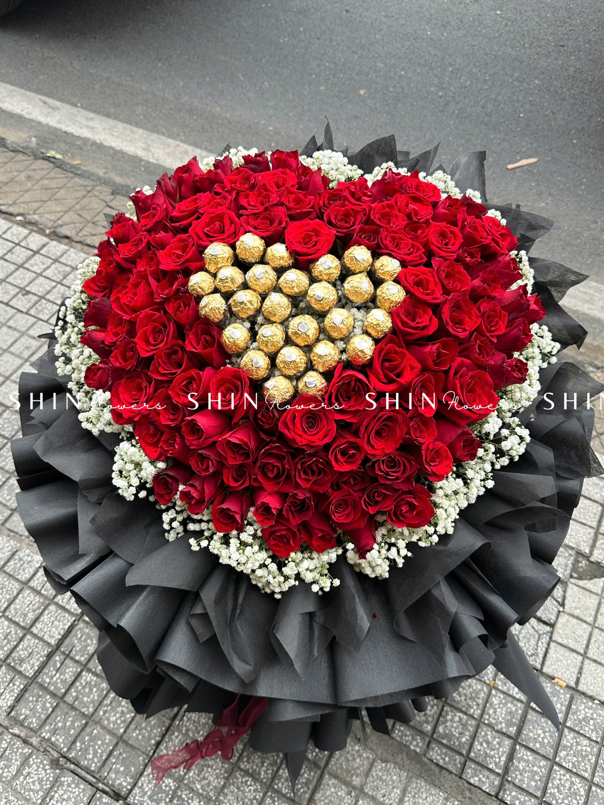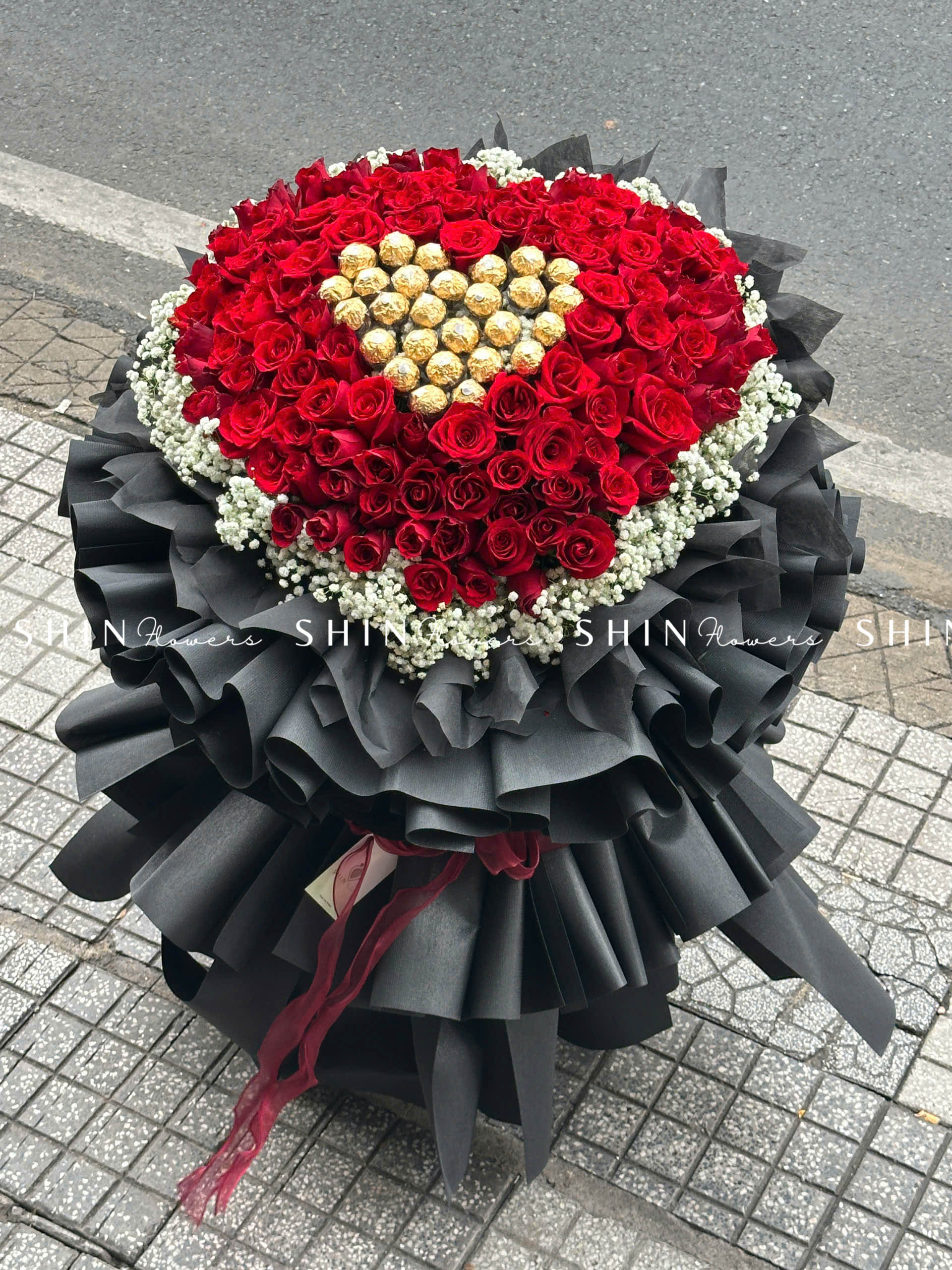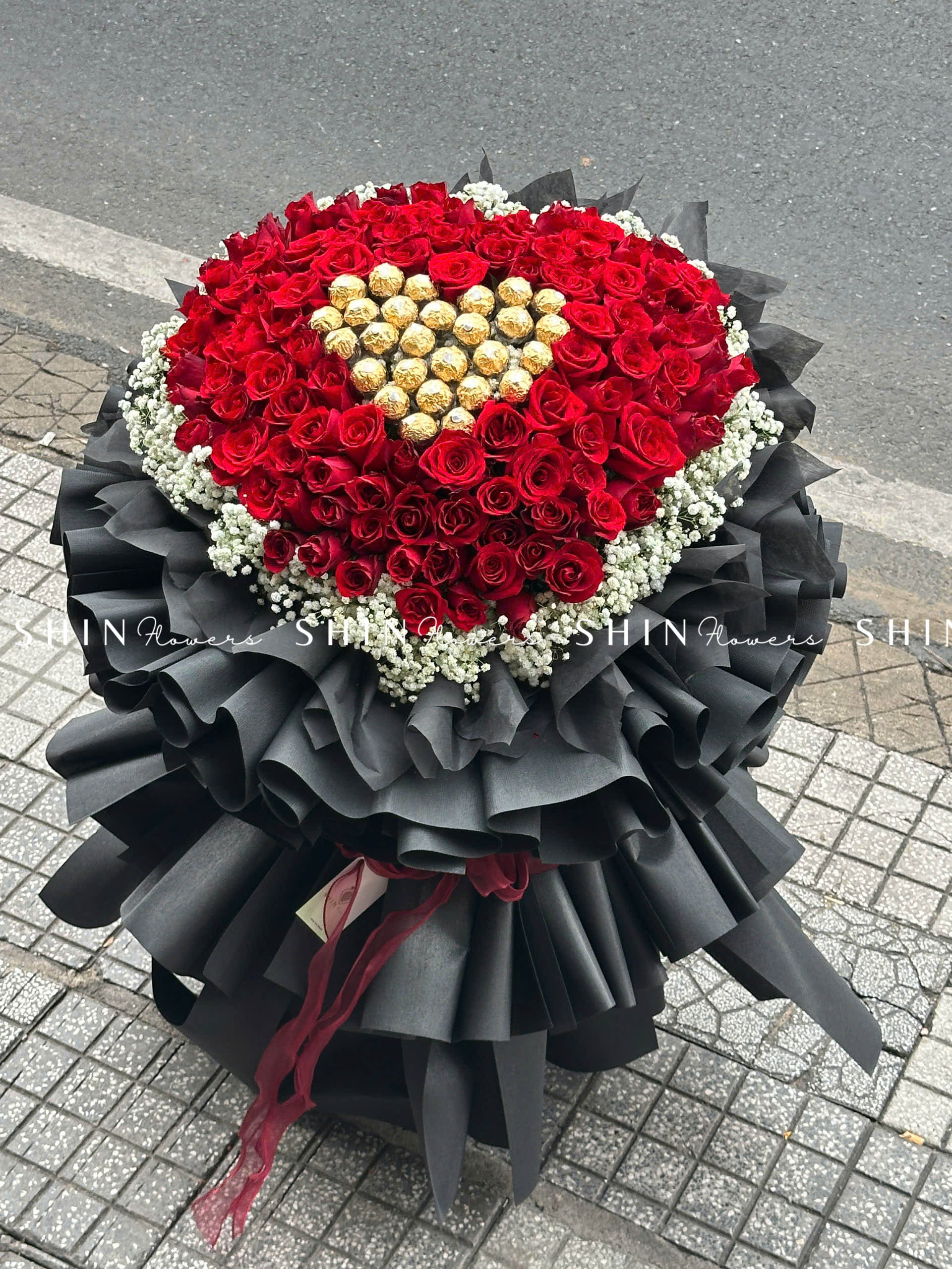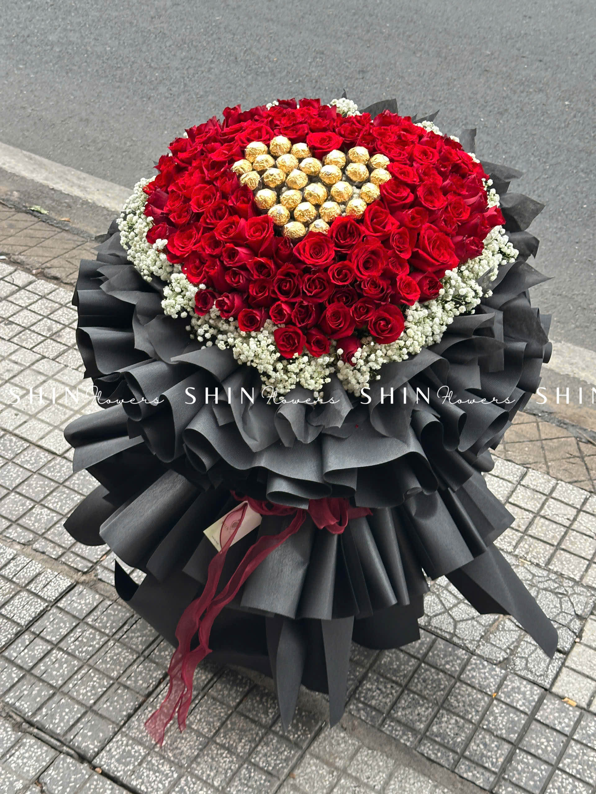 Bó Hoa 99 Hồng Đỏ Khổng Lồ Mix Chocolate và baby S355