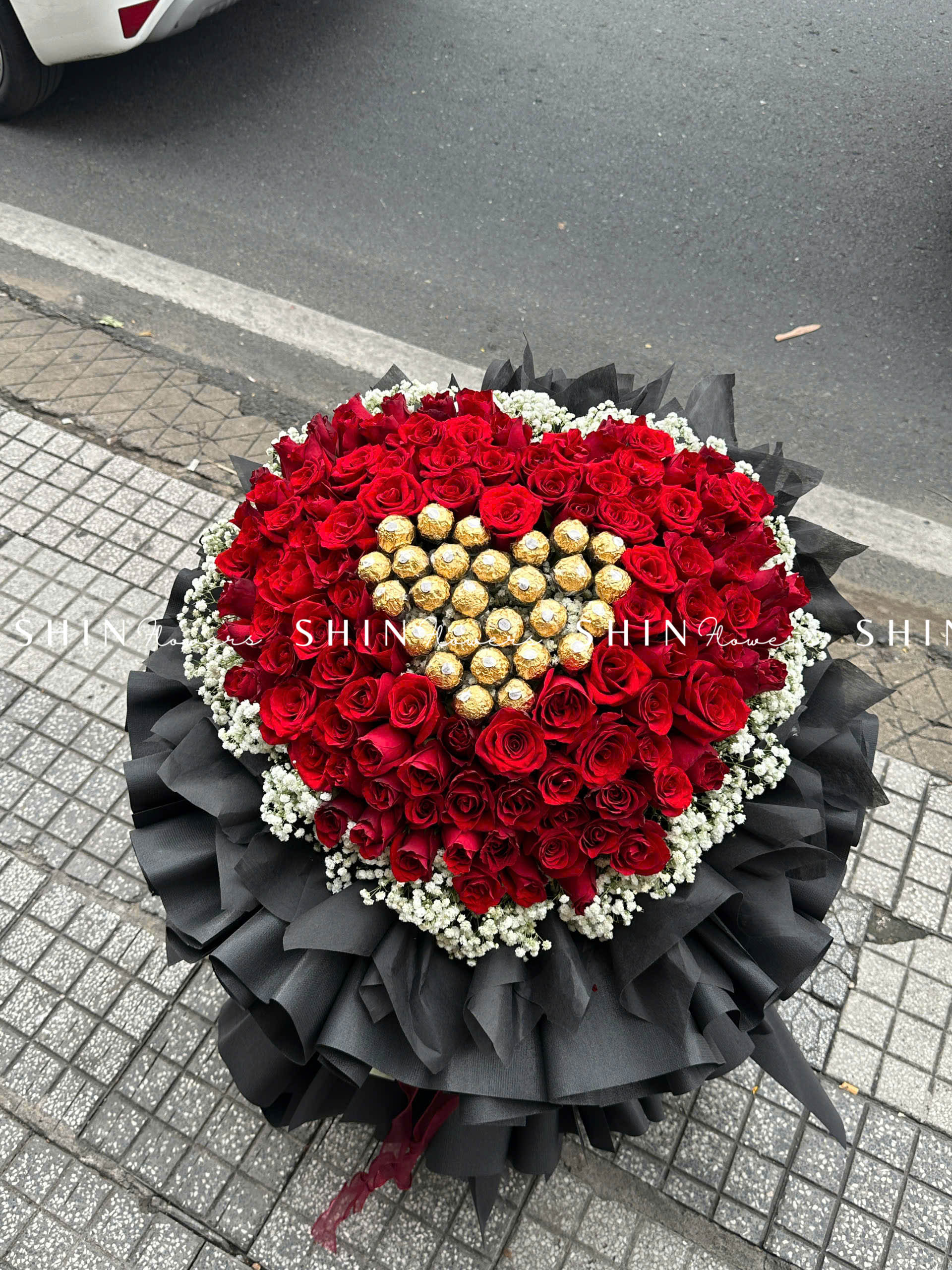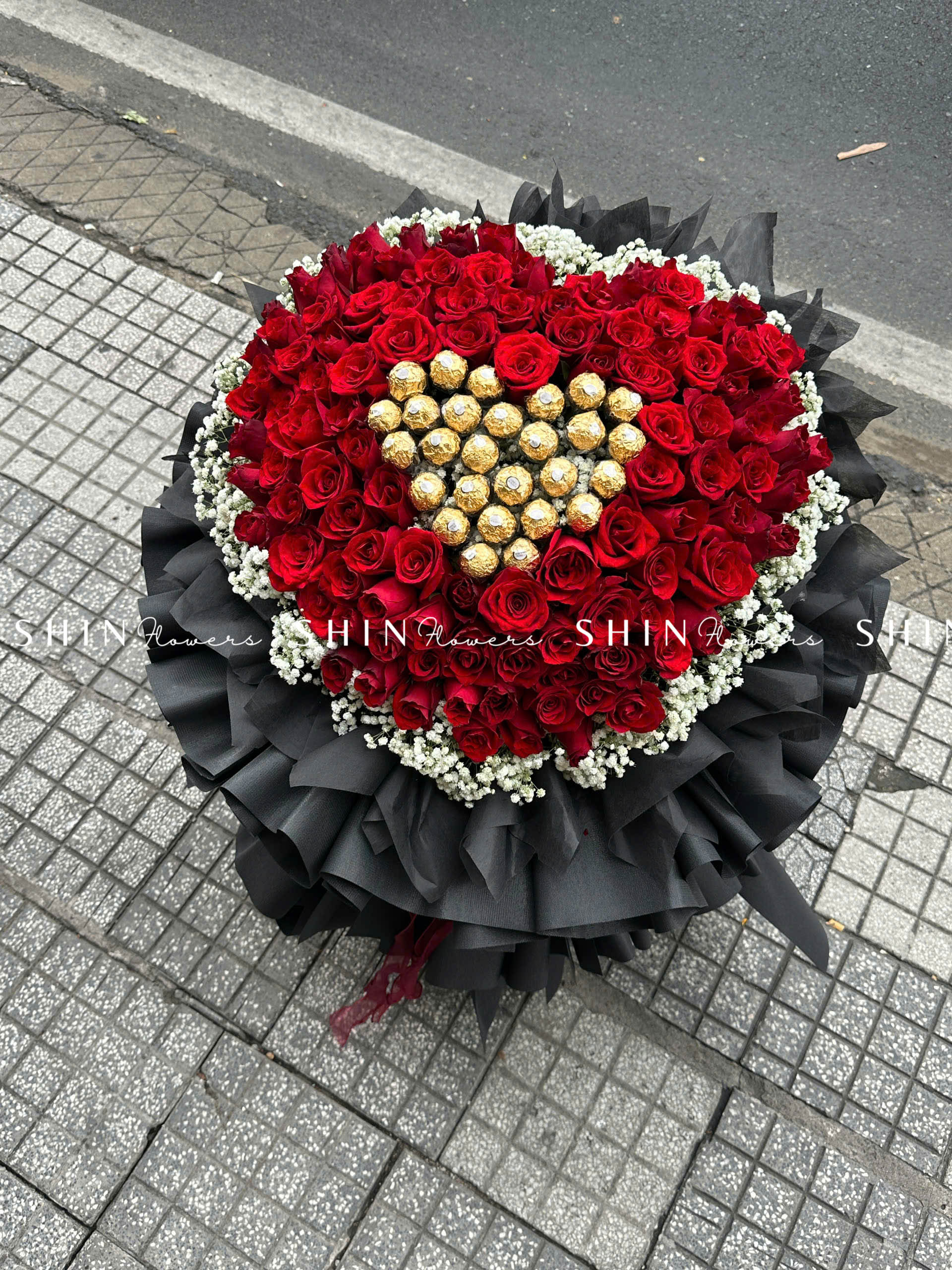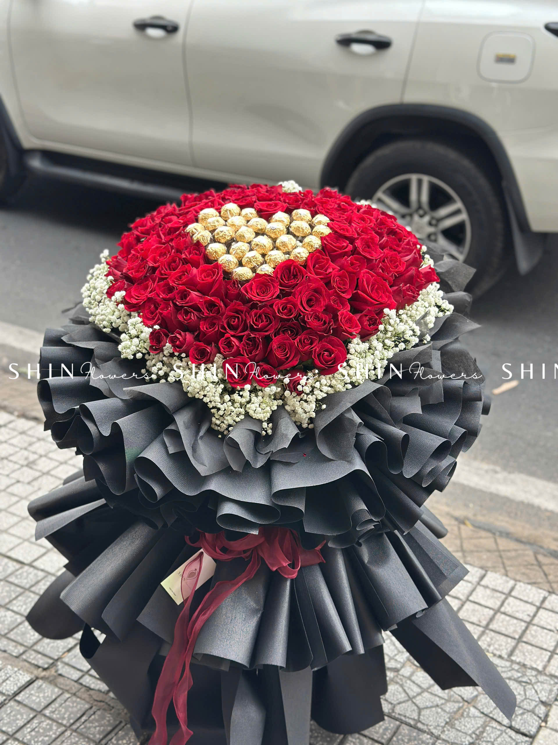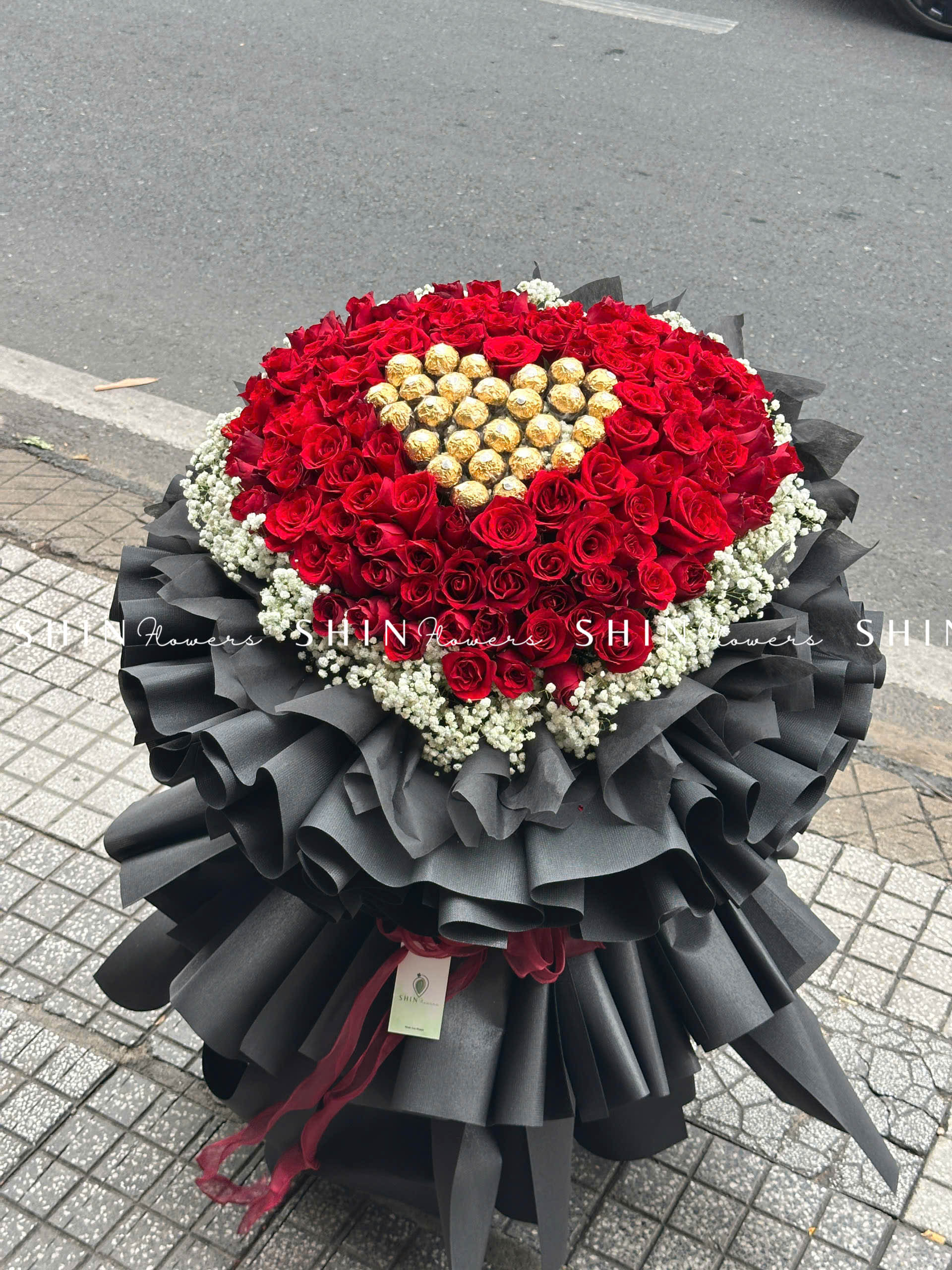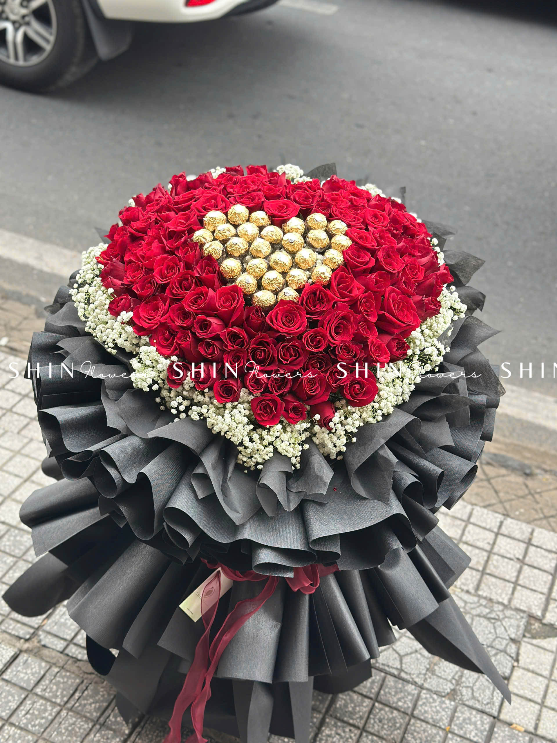 Bó Hoa 99 Hồng Đỏ Khổng Lồ Mix Chocolate và baby S355