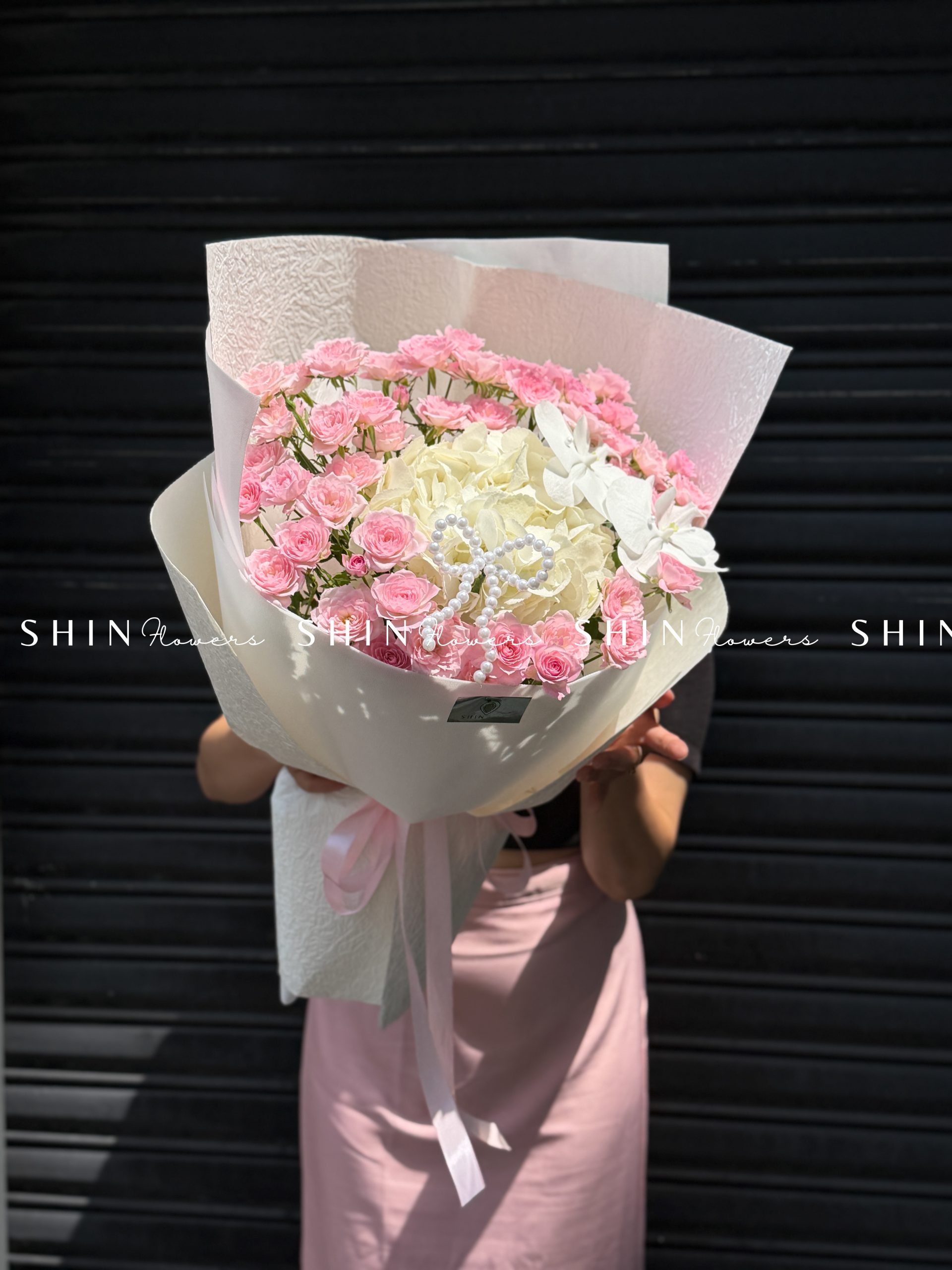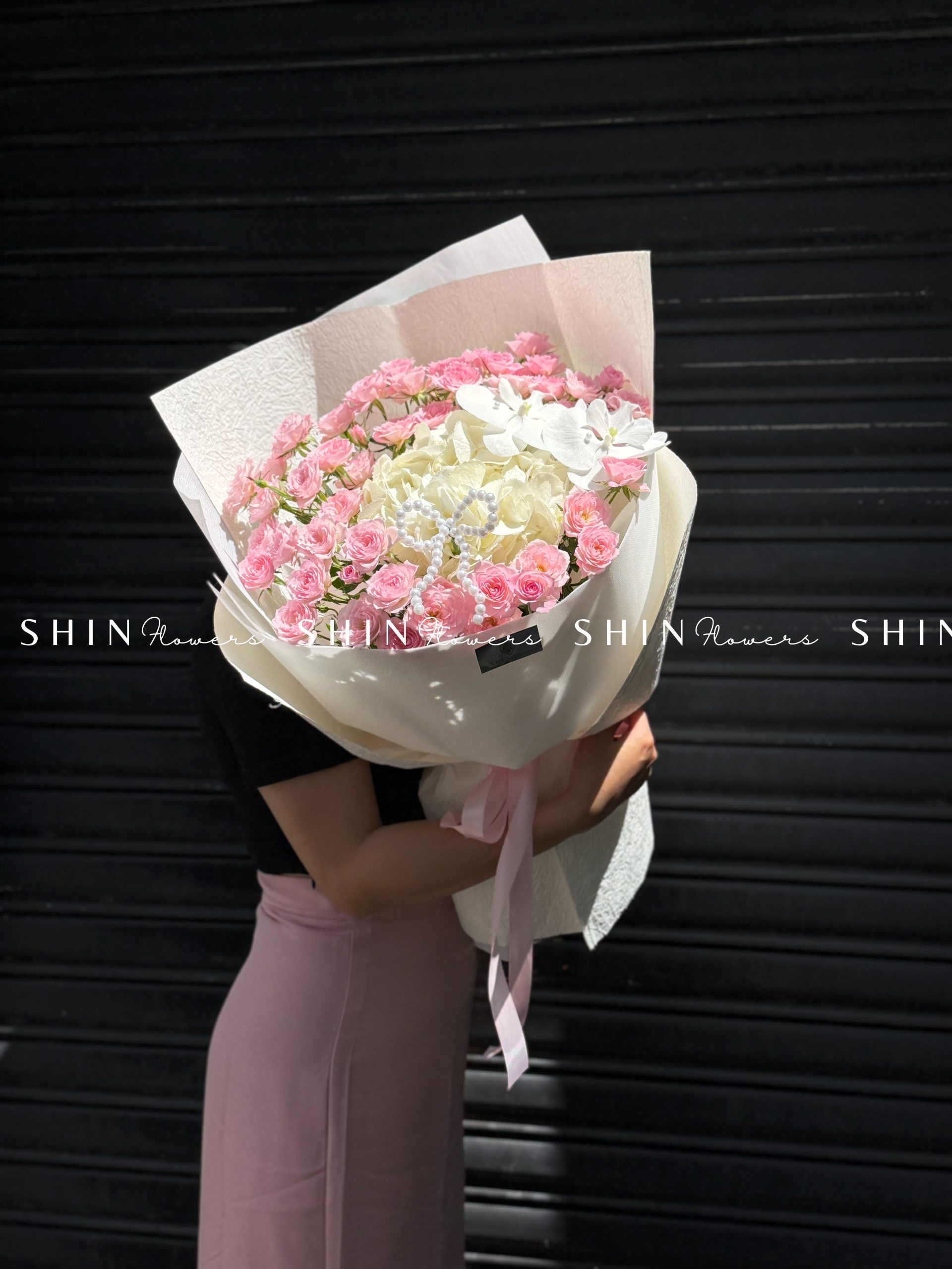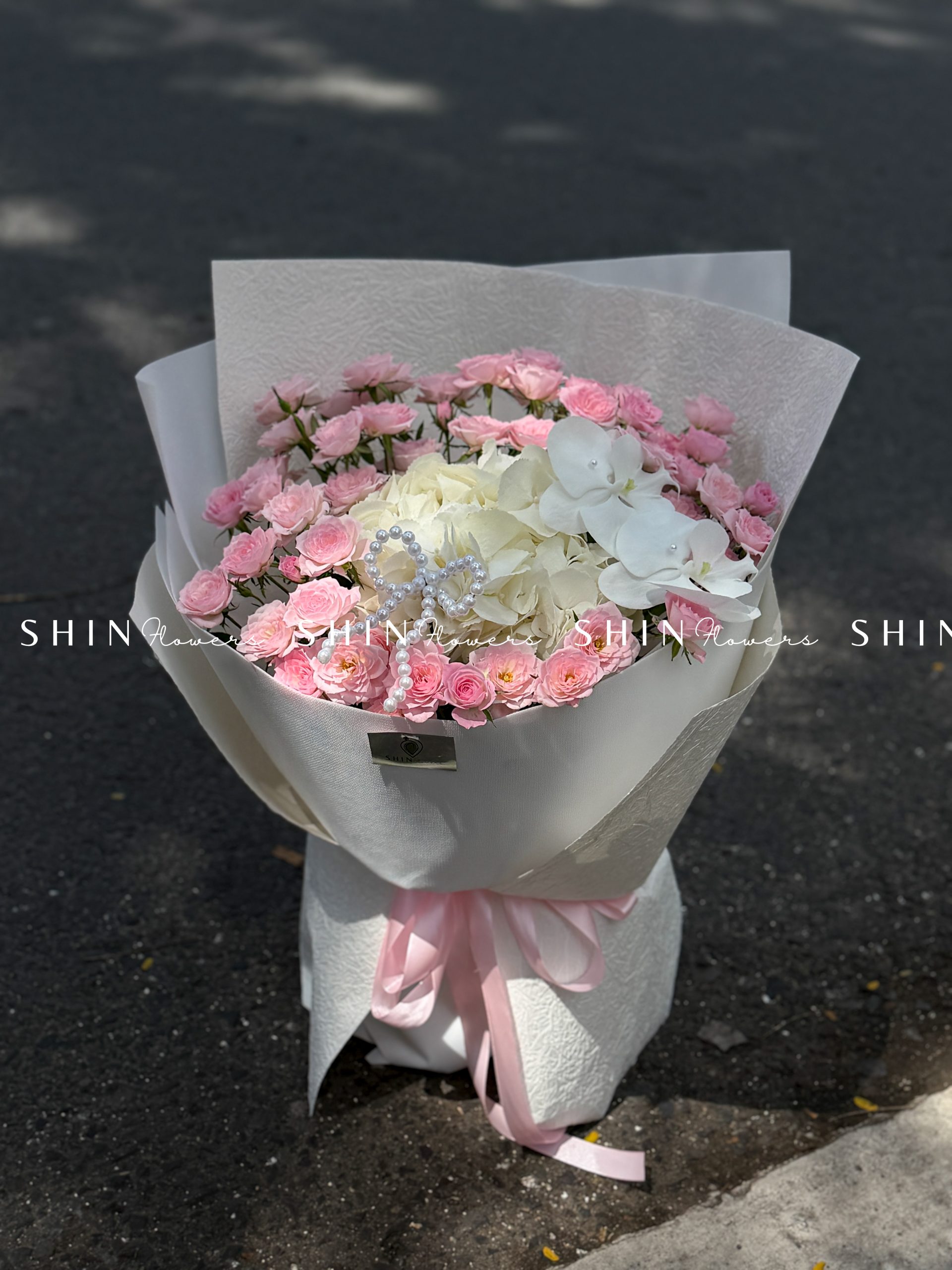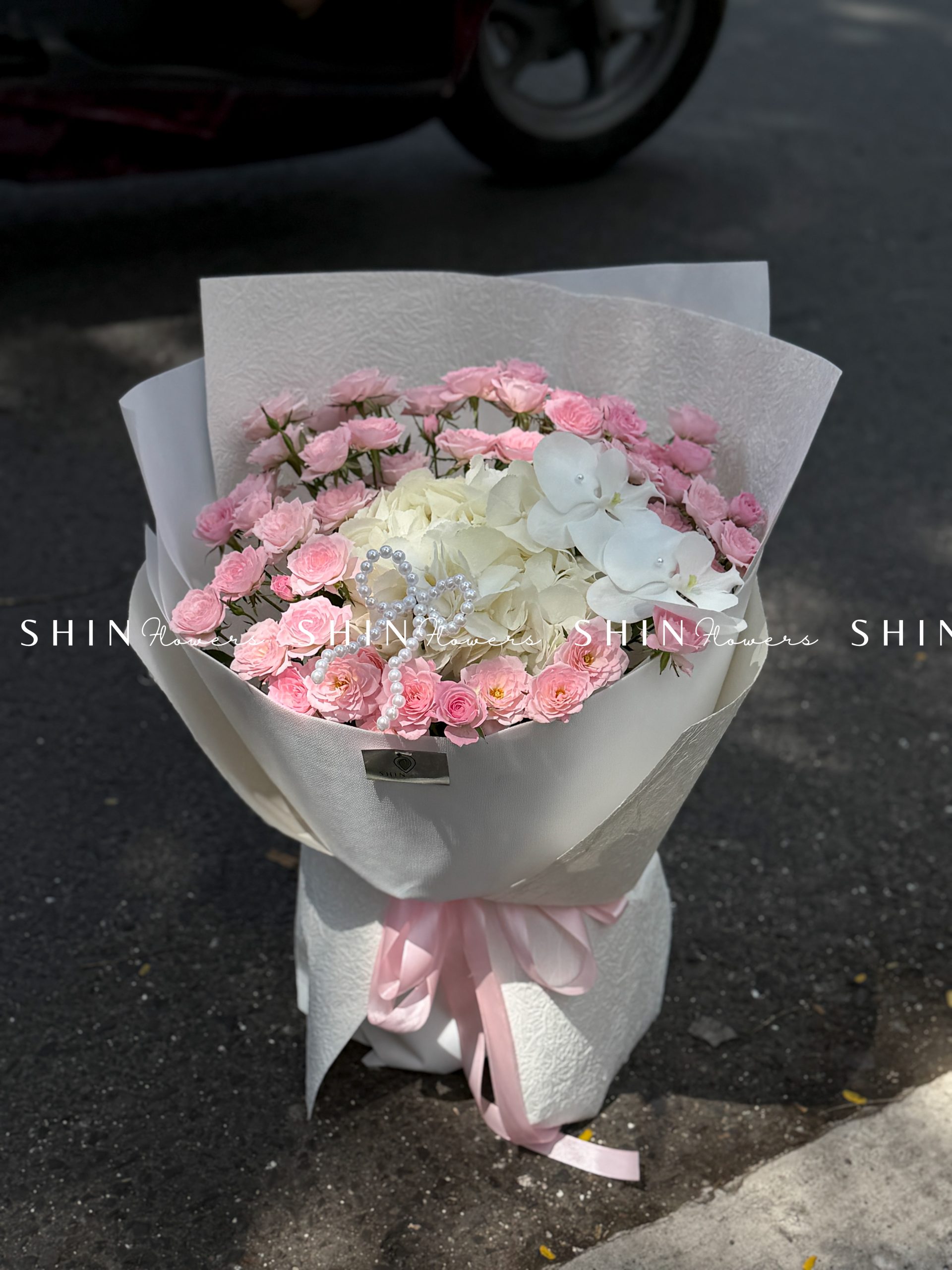 Bó Hoa Hồng Chùm Điền Mật mix Tú Cầu Trắng S551