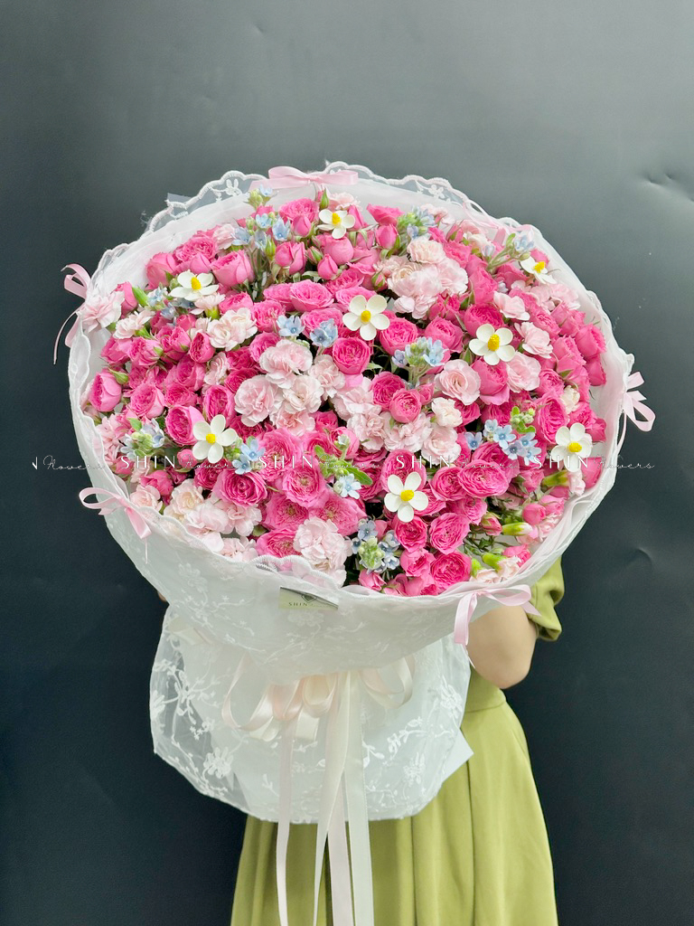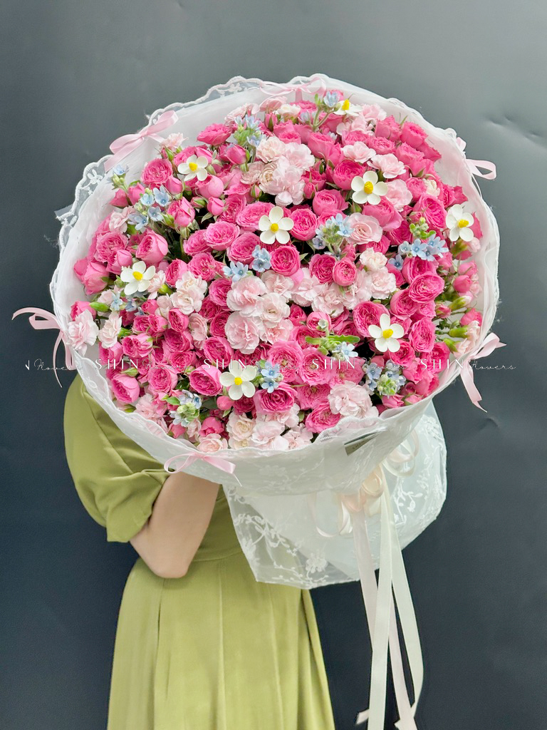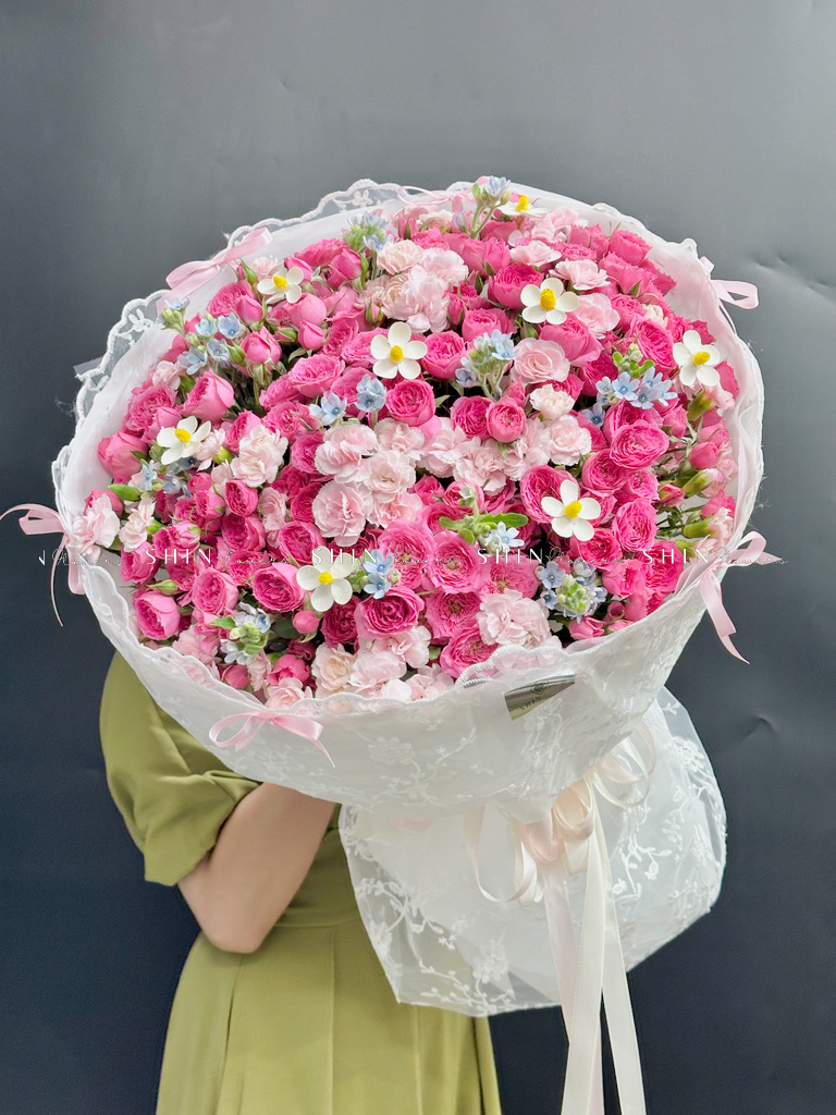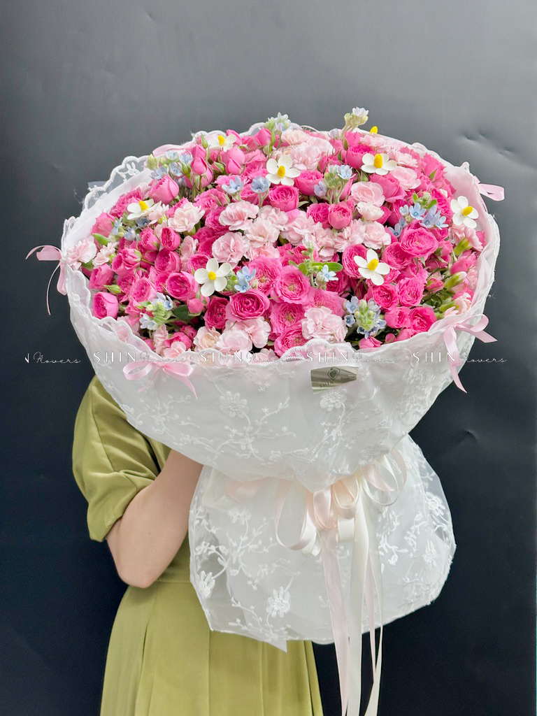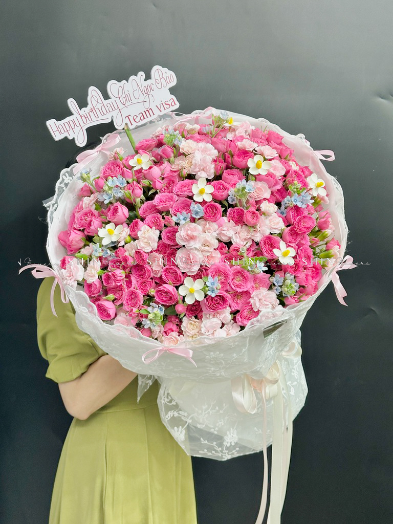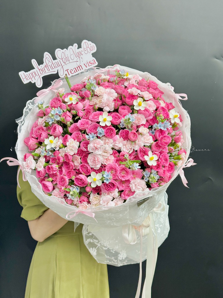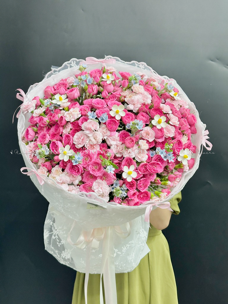 Bó hoa hồng chùm sophie là với hương thơm ngọt ngào và mạnh mẽ, với gam màu hồng biểu tượng của tình yêu và mộng mơ hạnh phúc.