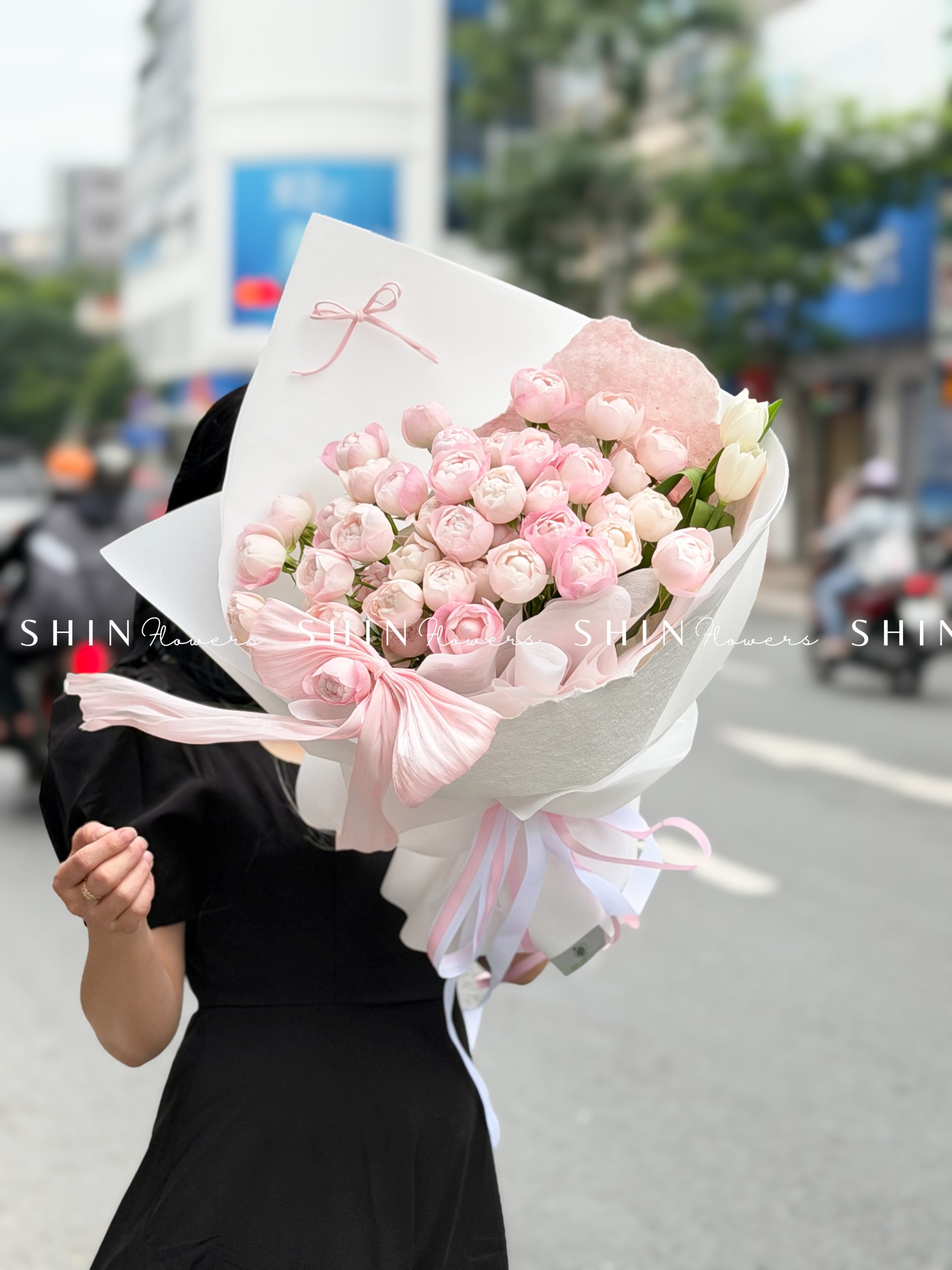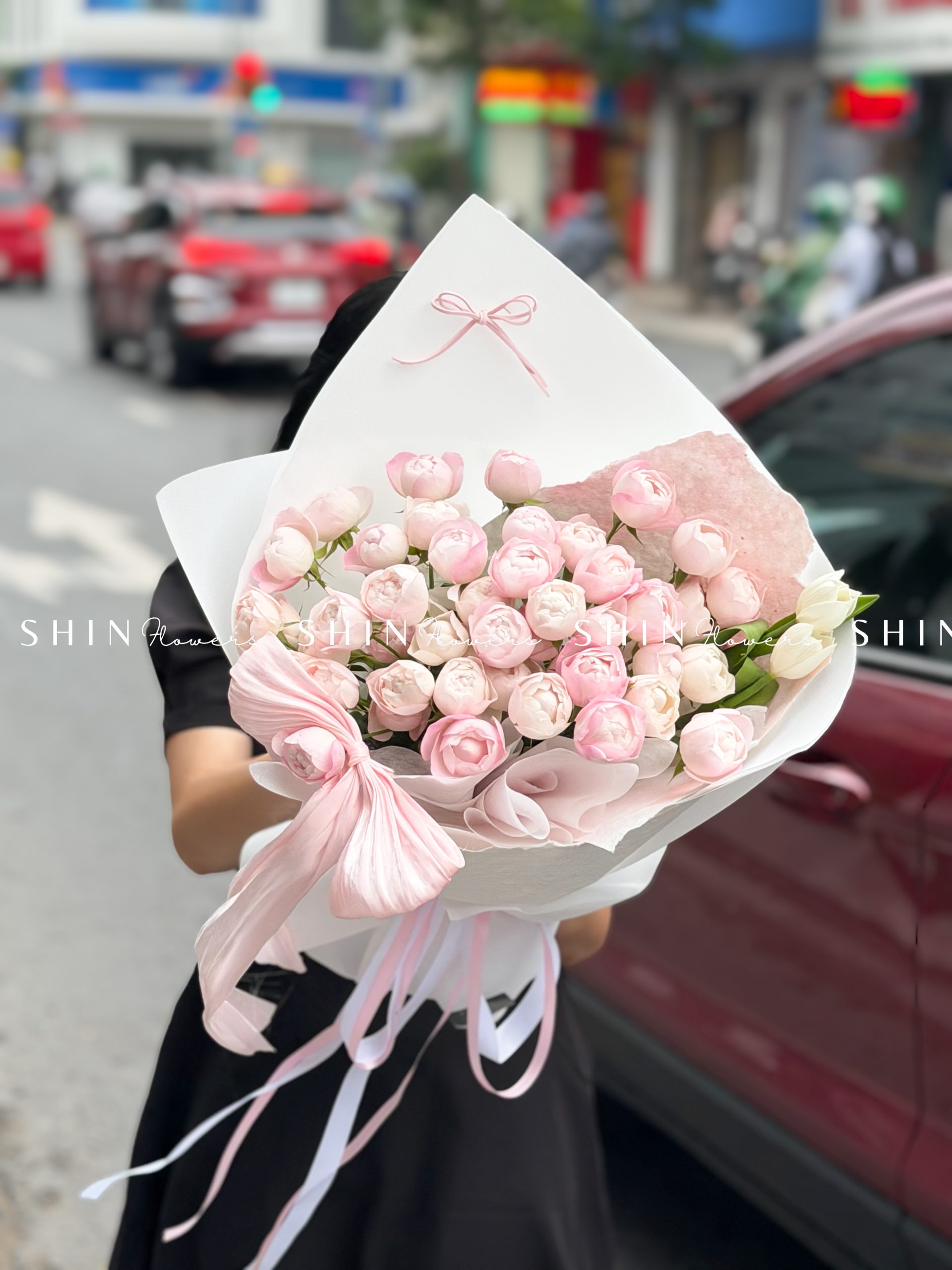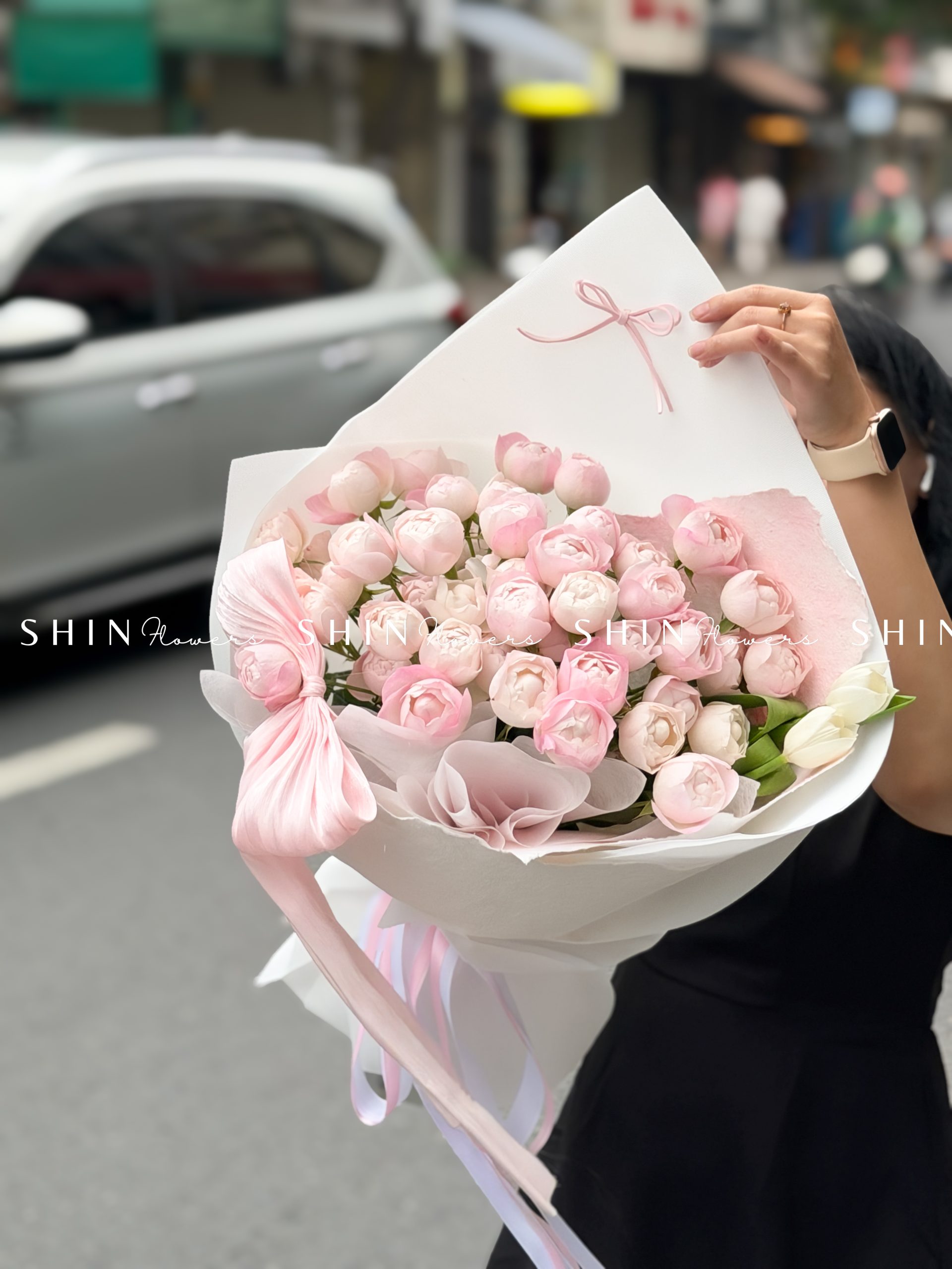 Sản phẩm hoa mẫu chỉ mang tính chất tham khảo. Bởi vì: một số loại hoa trong mẫu theo mùa sẽ không có hoặc chất lượng không đảm bảo, do đó chúng tôi sẽ dùng các loại hoa khác thay thế. Nhưng SHIN Flowers đảm bảo định lượng, tone màu, kiểu dáng cũng như chất lượng hoa tươi đẹp và đầy đặn nhất. Bạn sẽ nhận được ảnh hoàn thiện trước khi chúng tôi giao hoa.