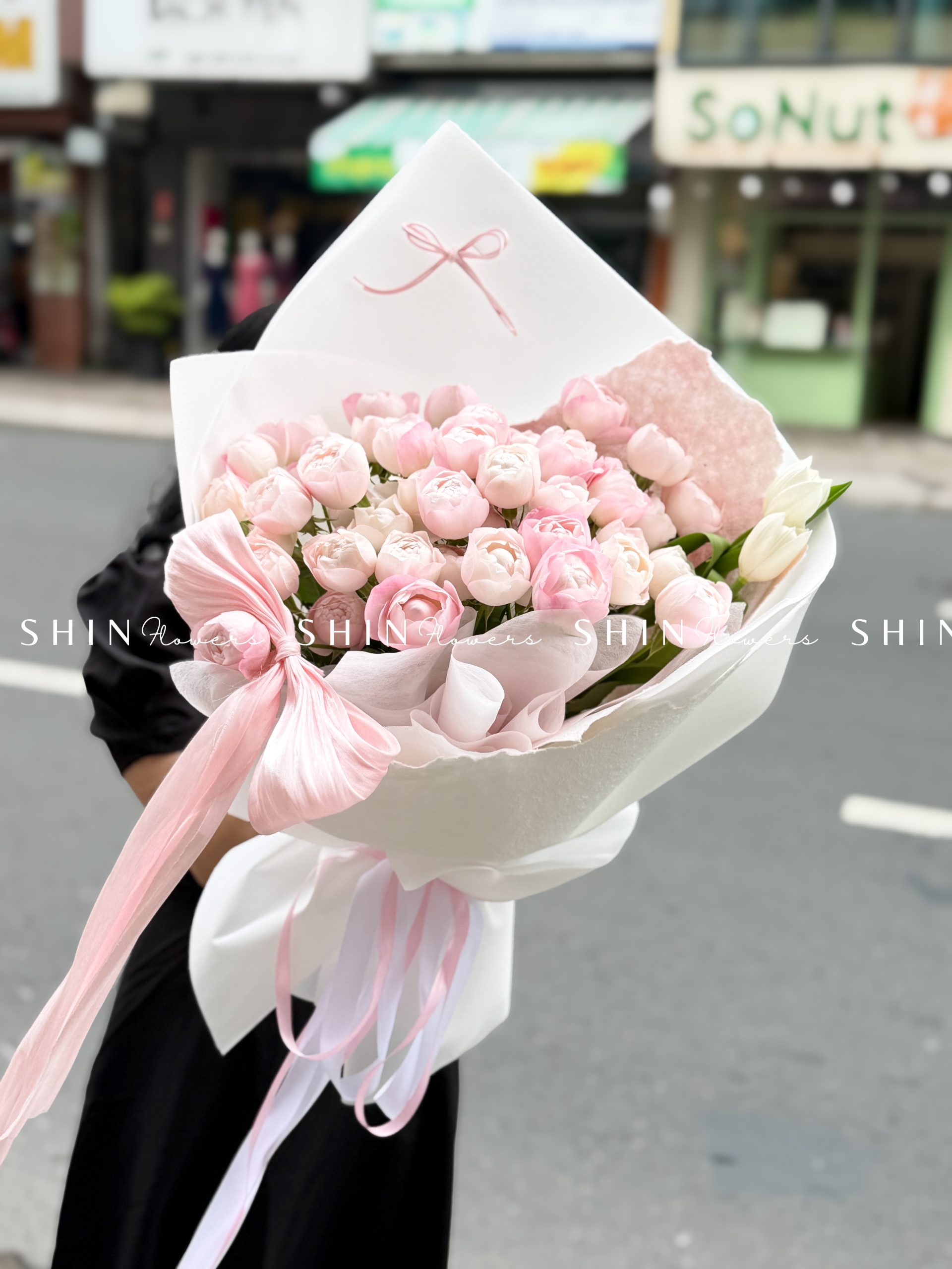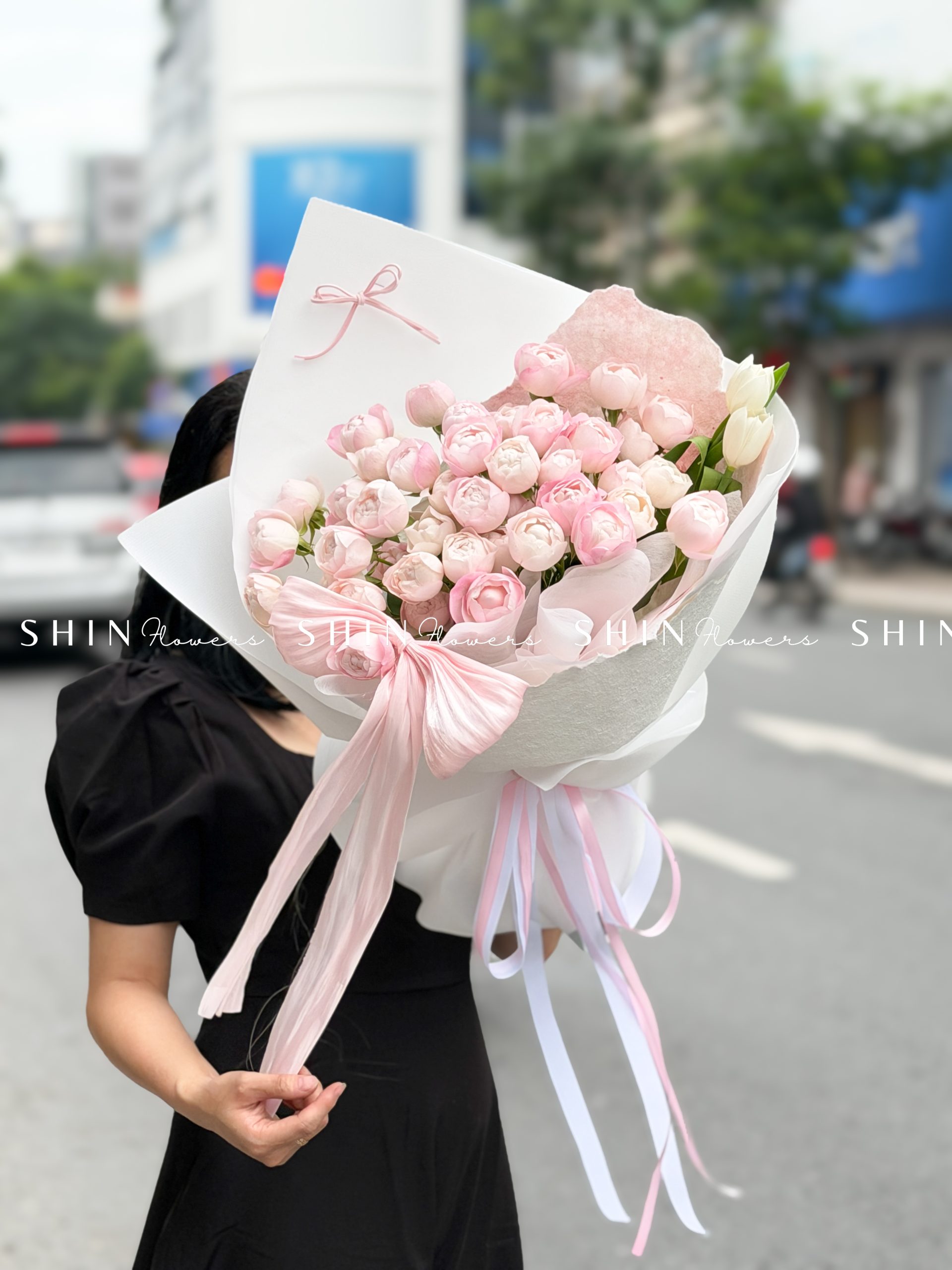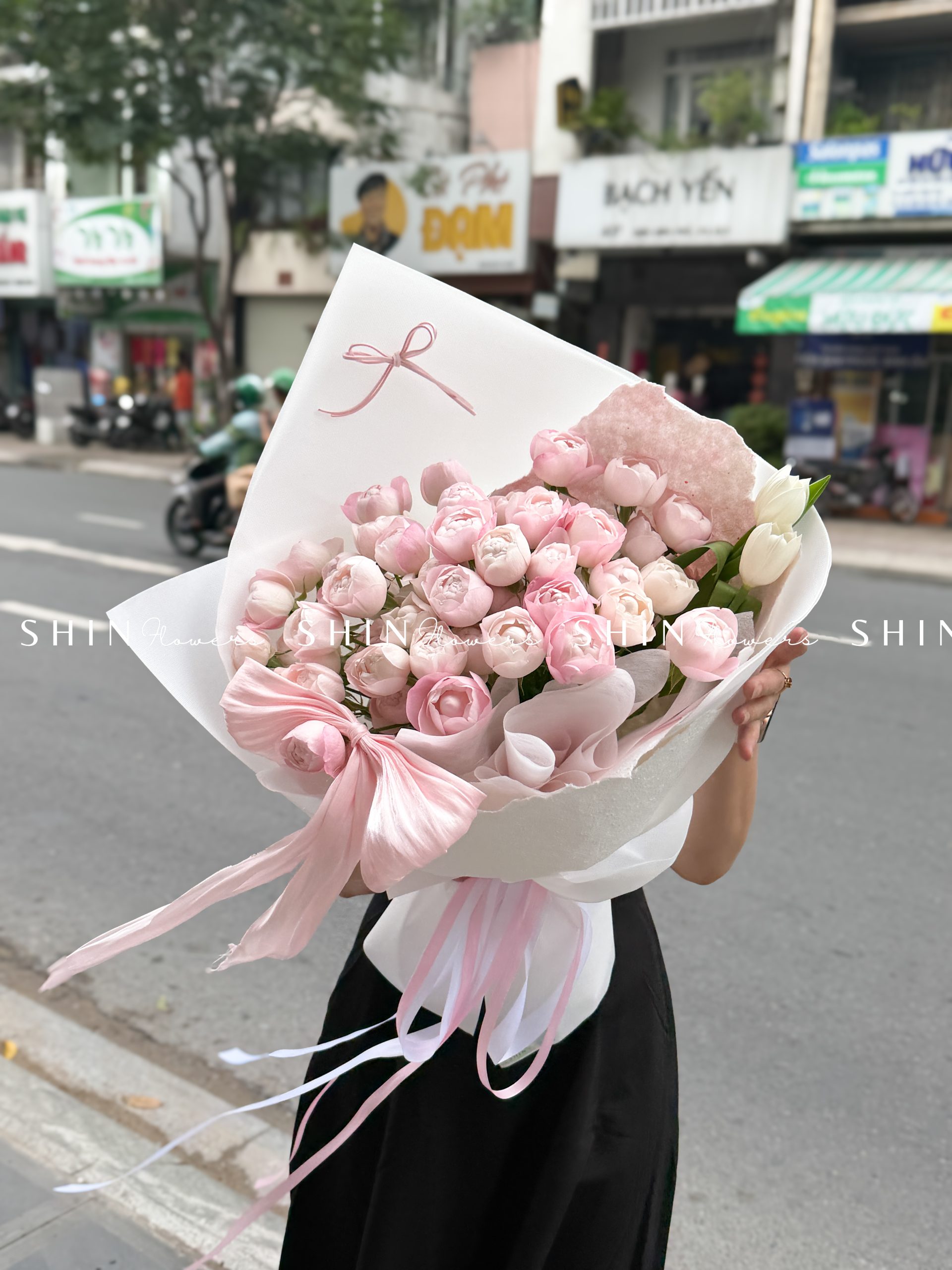 Sản phẩm hoa mẫu chỉ mang tính chất tham khảo. Bởi vì: một số loại hoa trong mẫu theo mùa sẽ không có hoặc chất lượng không đảm bảo, do đó chúng tôi sẽ dùng các loại hoa khác thay thế. Nhưng SHIN Flowers đảm bảo định lượng, tone màu, kiểu dáng cũng như chất lượng hoa tươi đẹp và đầy đặn nhất. Bạn sẽ nhận được ảnh hoàn thiện trước khi chúng tôi giao hoa.