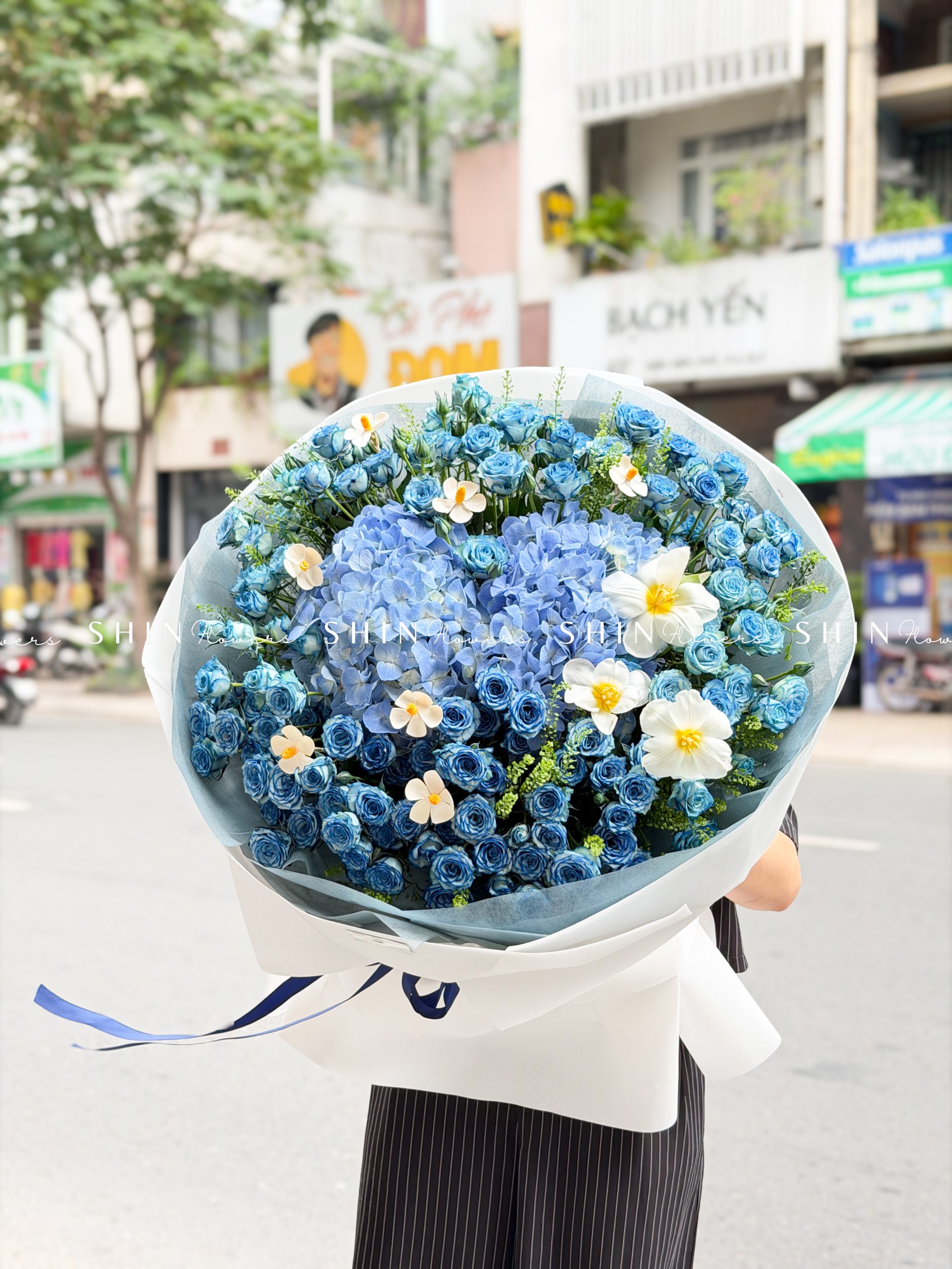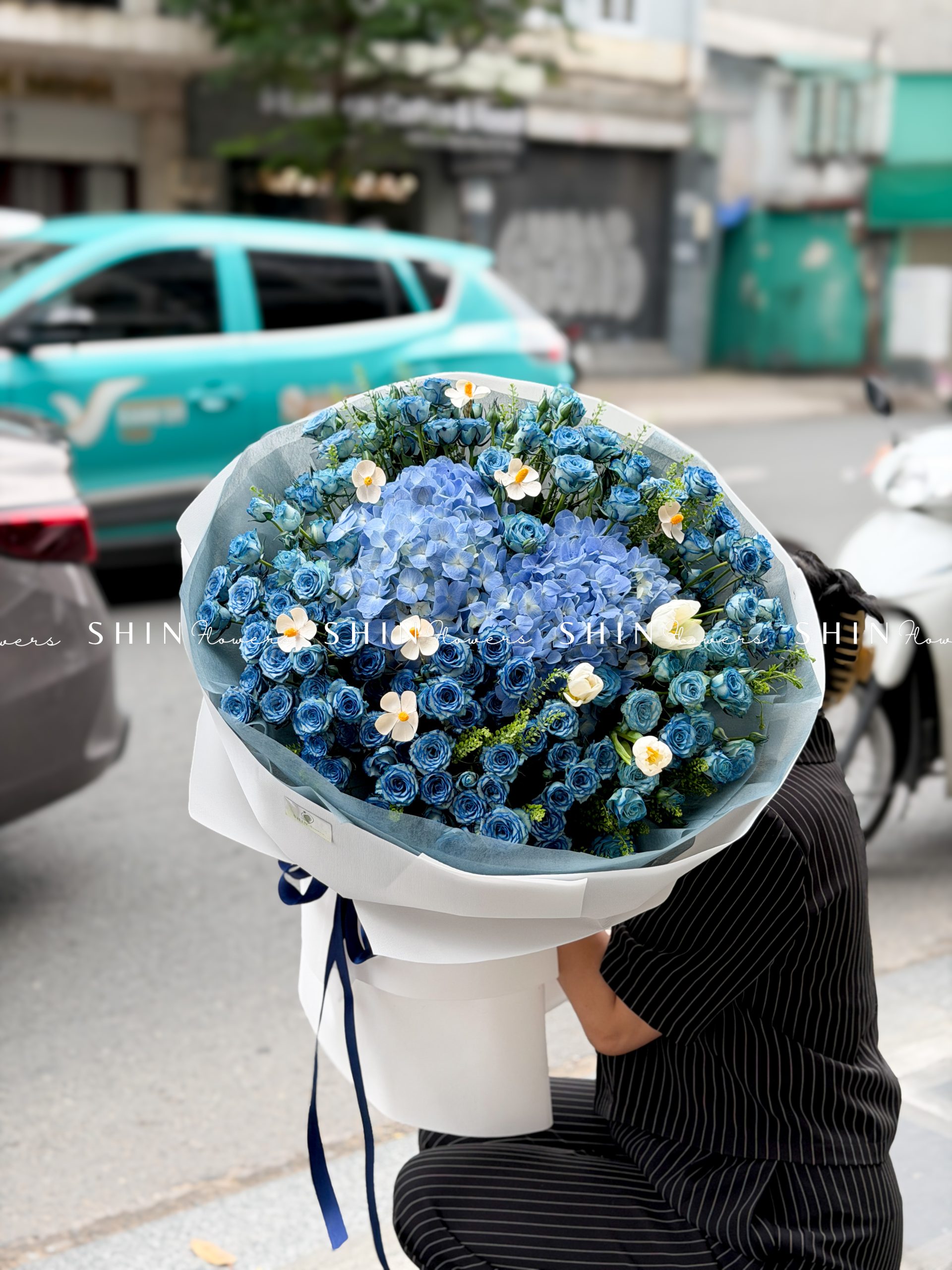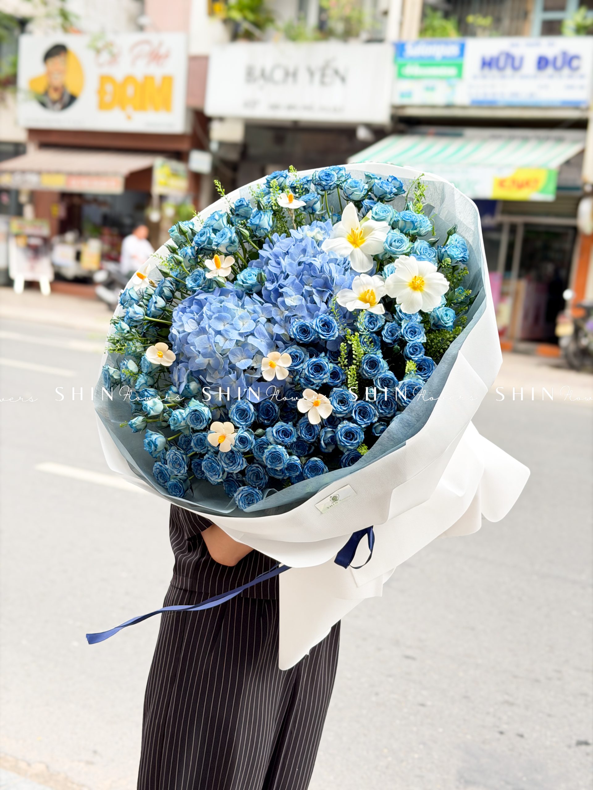 Bó Hoa Hồng Xanh Dương Mix Tú Cầu siêu to S565
