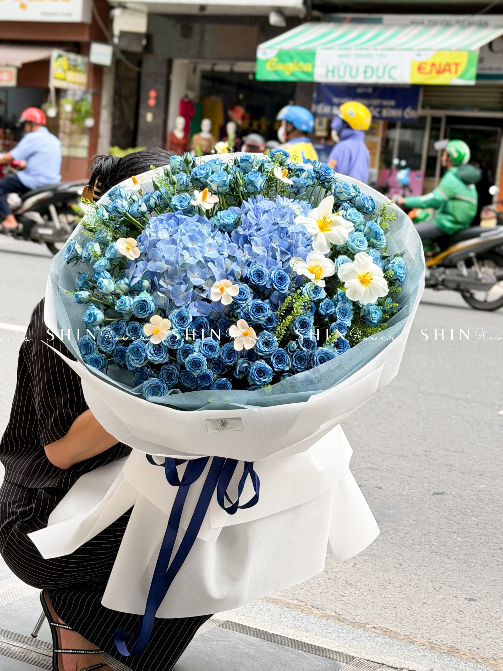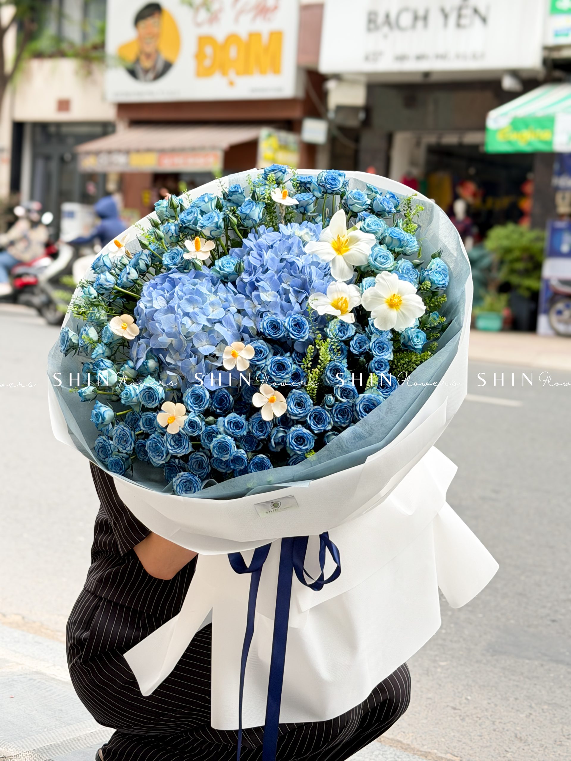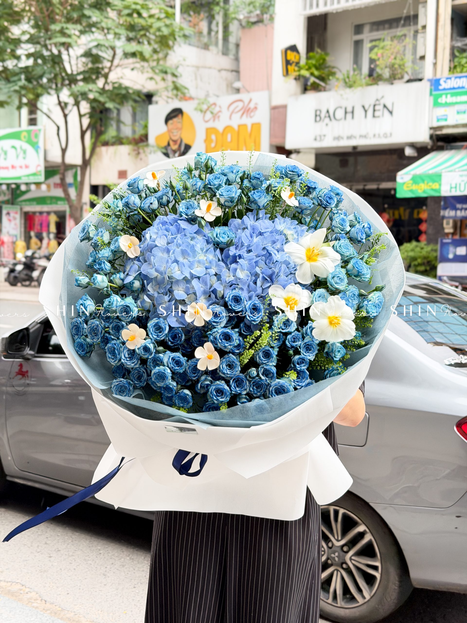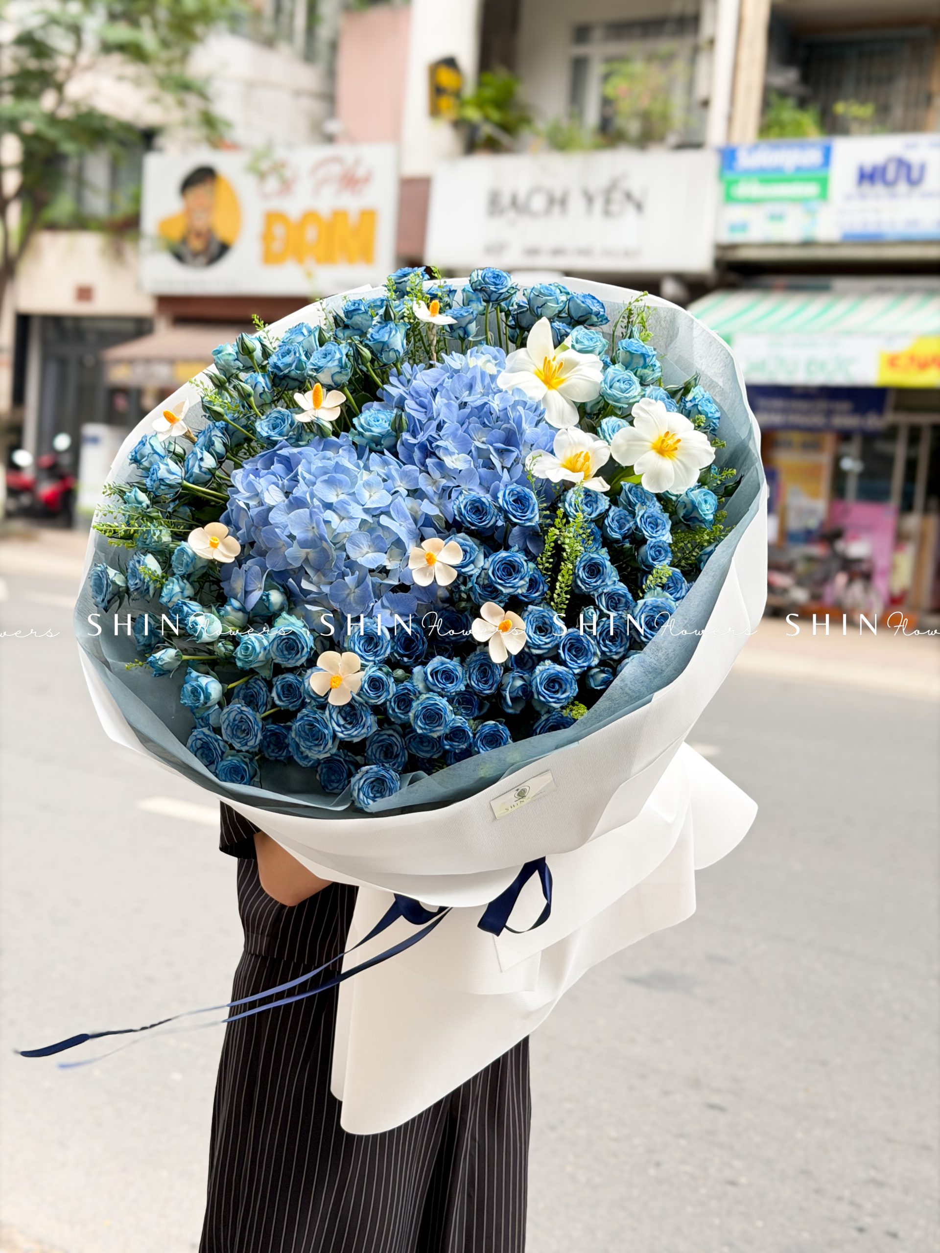 Bó Hoa Hồng Xanh Dương Mix Tú Cầu siêu to S565