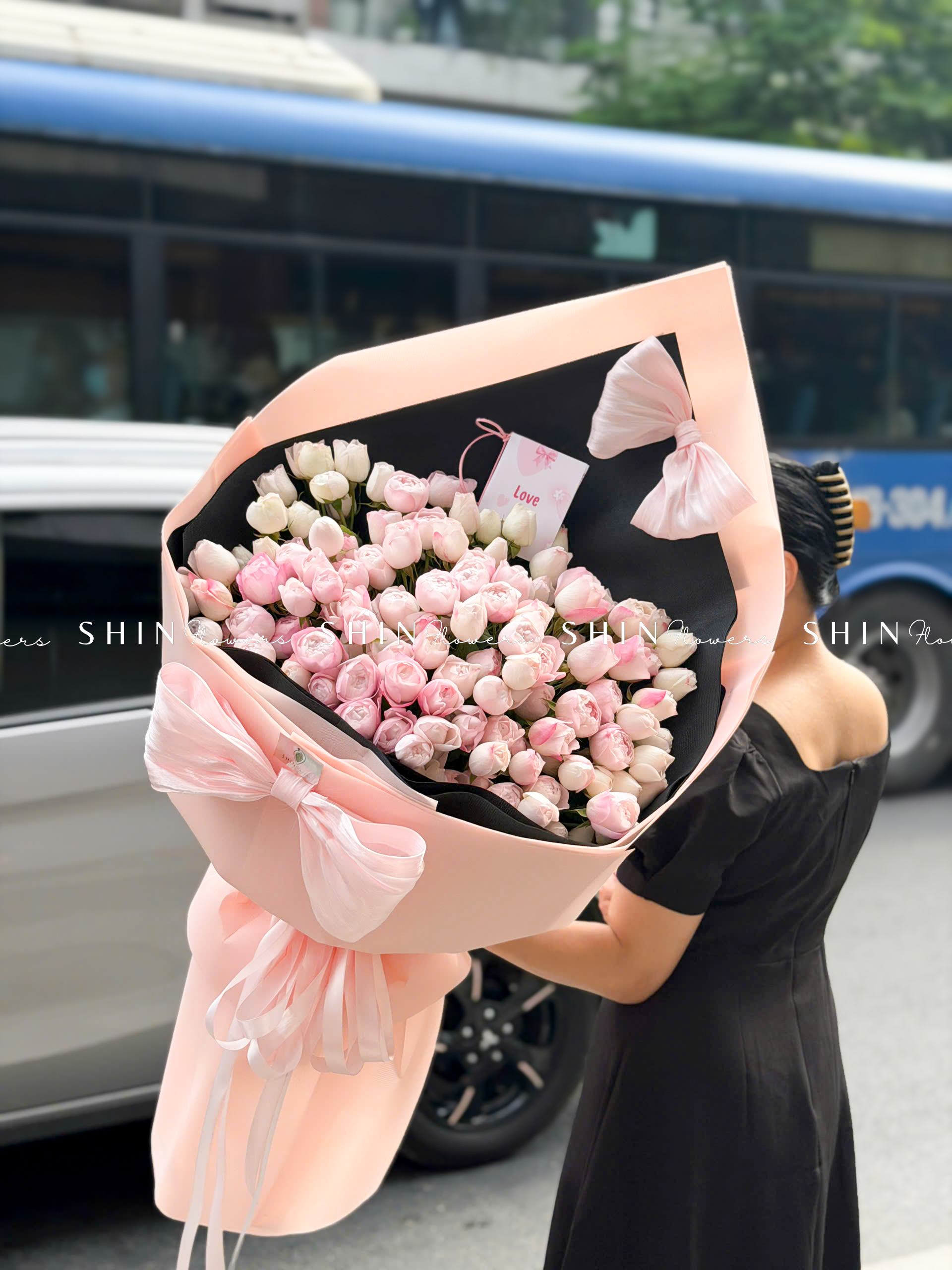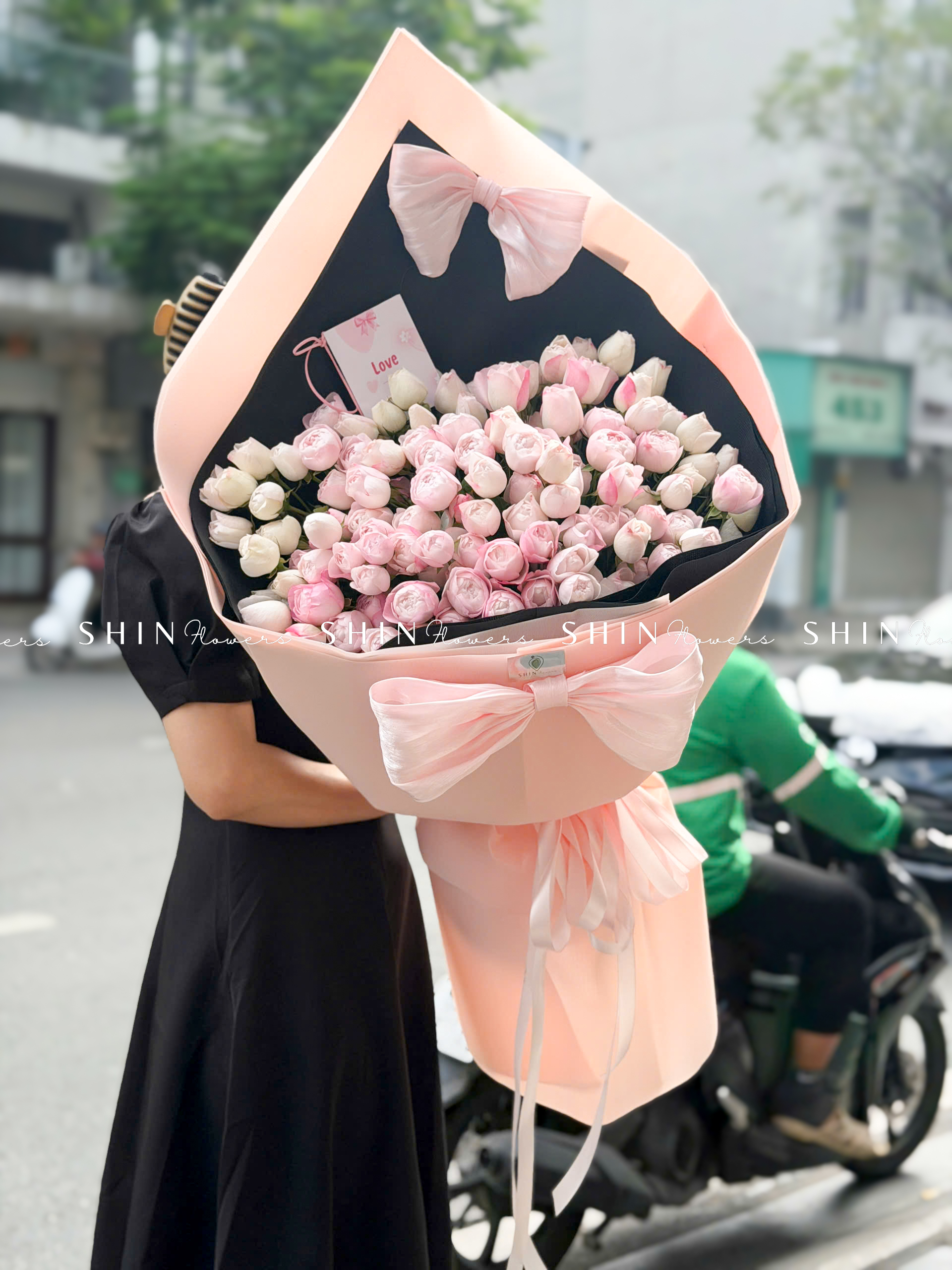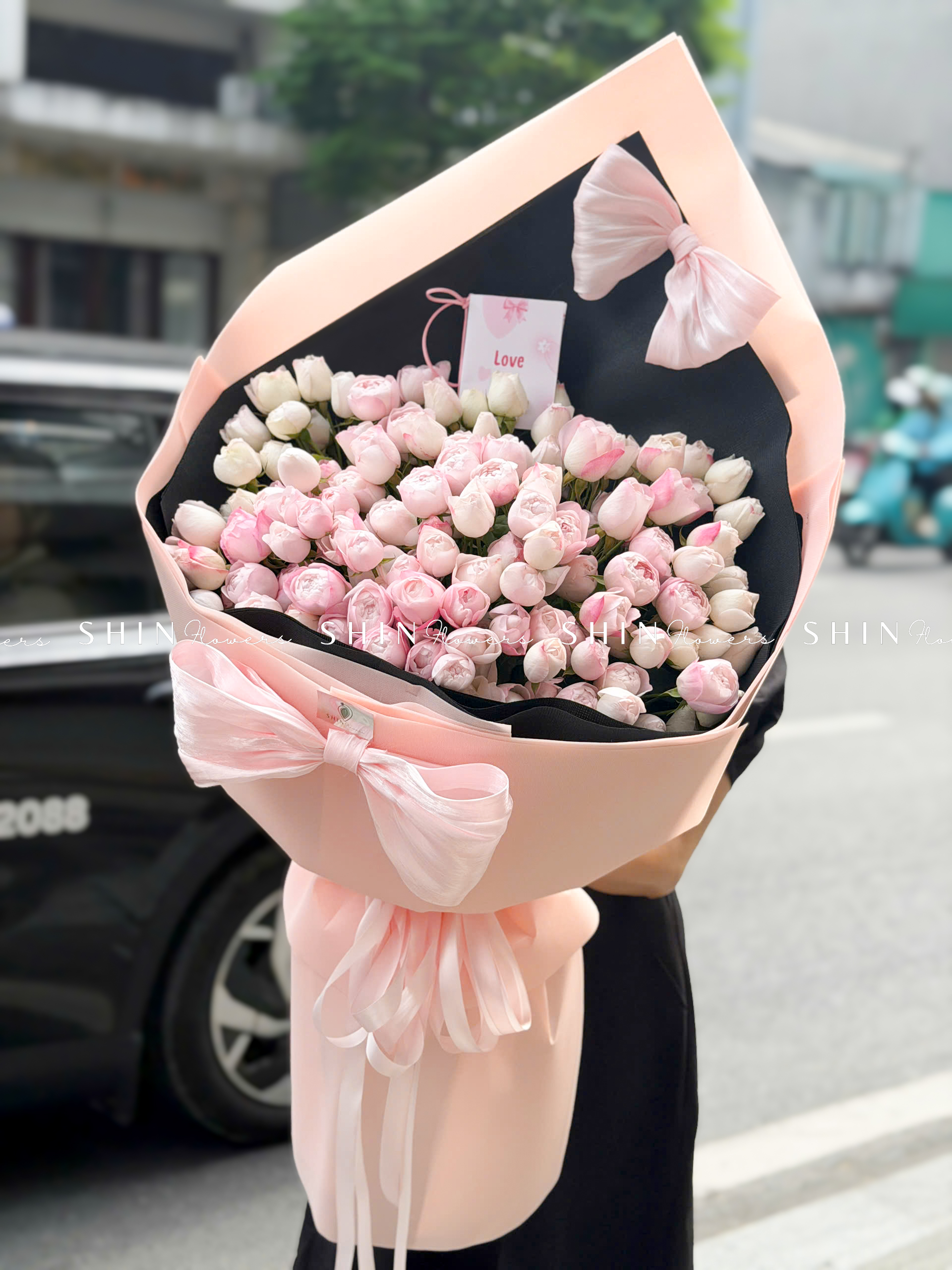 Sản phẩm hoa mẫu chỉ mang tính chất tham khảo. Bởi vì: một số loại hoa trong mẫu theo mùa sẽ không có hoặc chất lượng không đảm bảo, do đó chúng tôi sẽ dùng các loại hoa khác thay thế. Nhưng SHIN Flowers đảm bảo định lượng, tone màu, kiểu dáng cũng như chất lượng hoa tươi đẹp và đầy đặn nhất. Bạn sẽ nhận được ảnh hoàn thiện trước khi chúng tôi giao hoa.