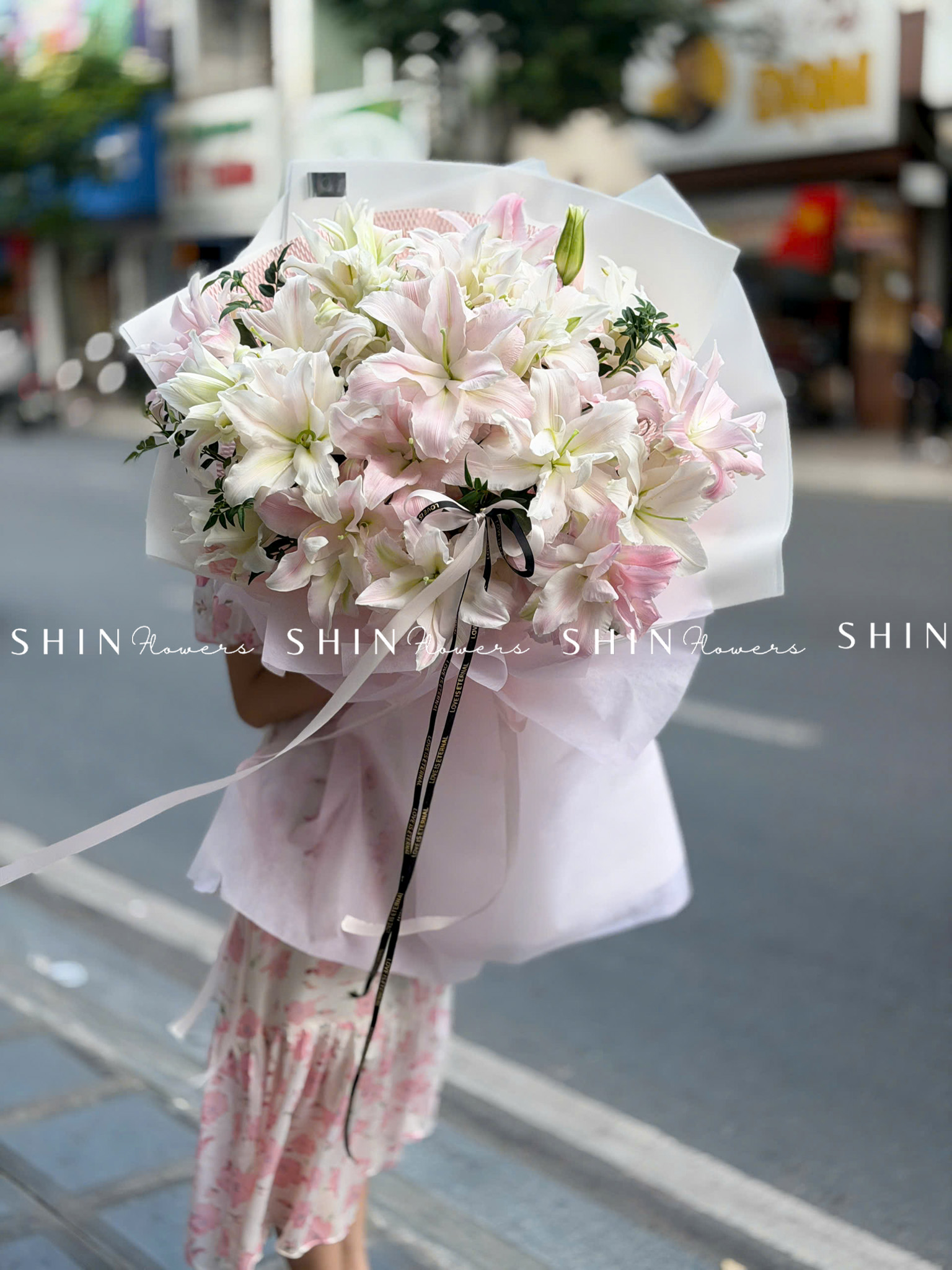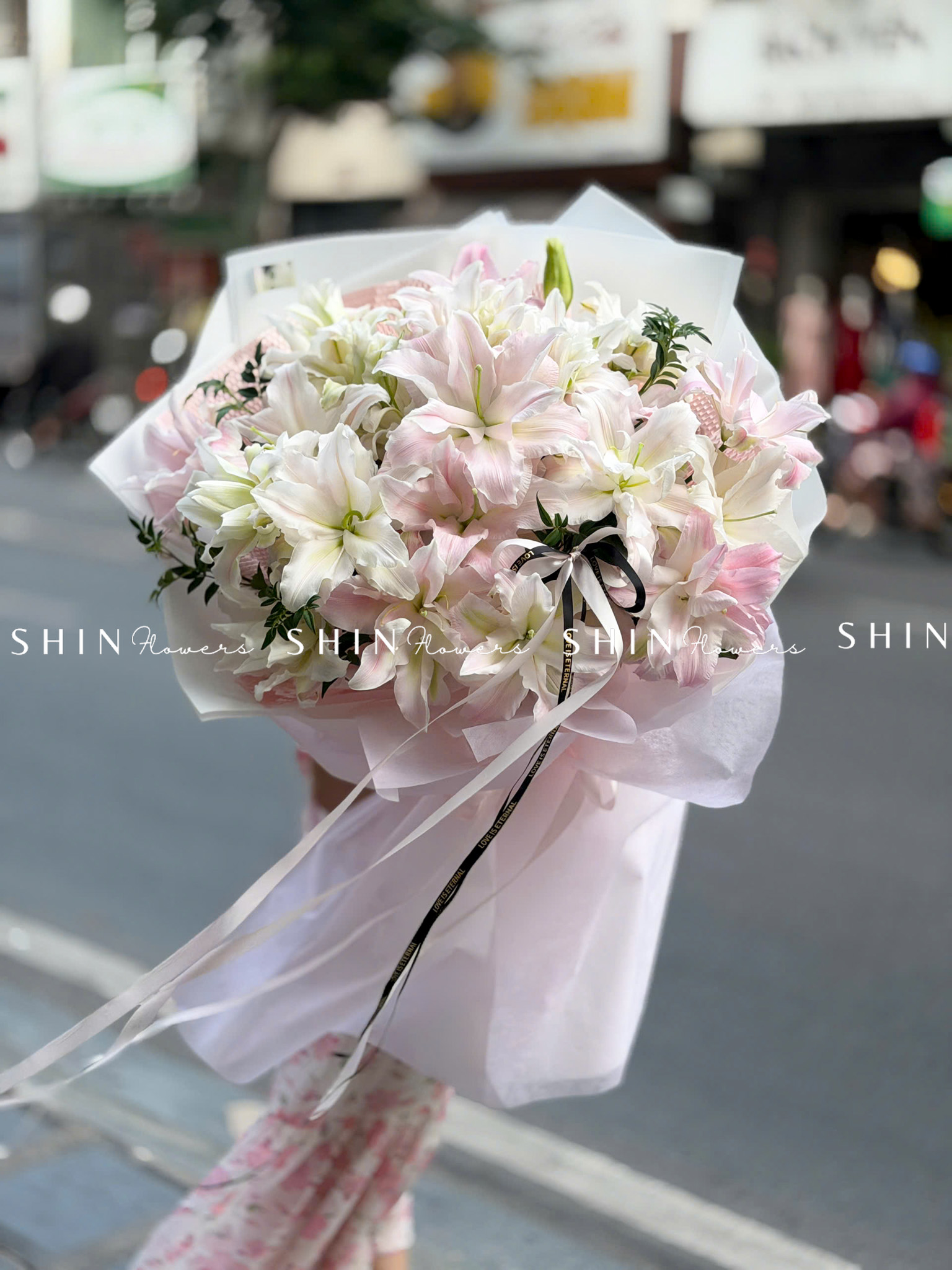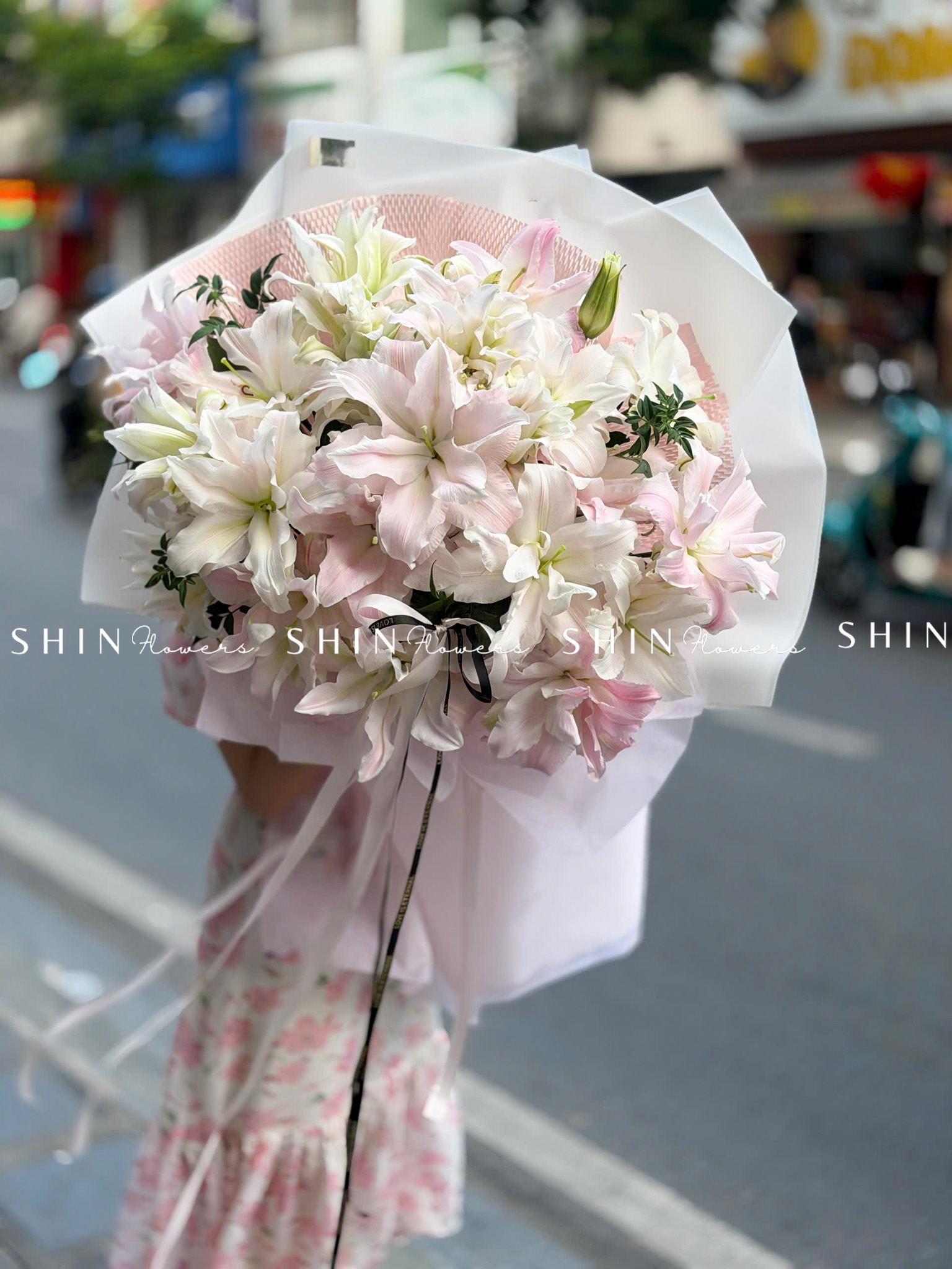 Sản phẩm hoa mẫu chỉ mang tính chất tham khảo. Bởi vì: một số loại hoa trong mẫu theo mùa sẽ không có hoặc chất lượng không đảm bảo, do đó chúng tôi sẽ dùng các loại hoa khác thay thế. Nhưng SHIN Flowers đảm bảo định lượng, tone màu, kiểu dáng cũng như chất lượng hoa tươi đẹp và đầy đặn nhất. Bạn sẽ nhận được ảnh hoàn thiện trước khi chúng tôi giao hoa.