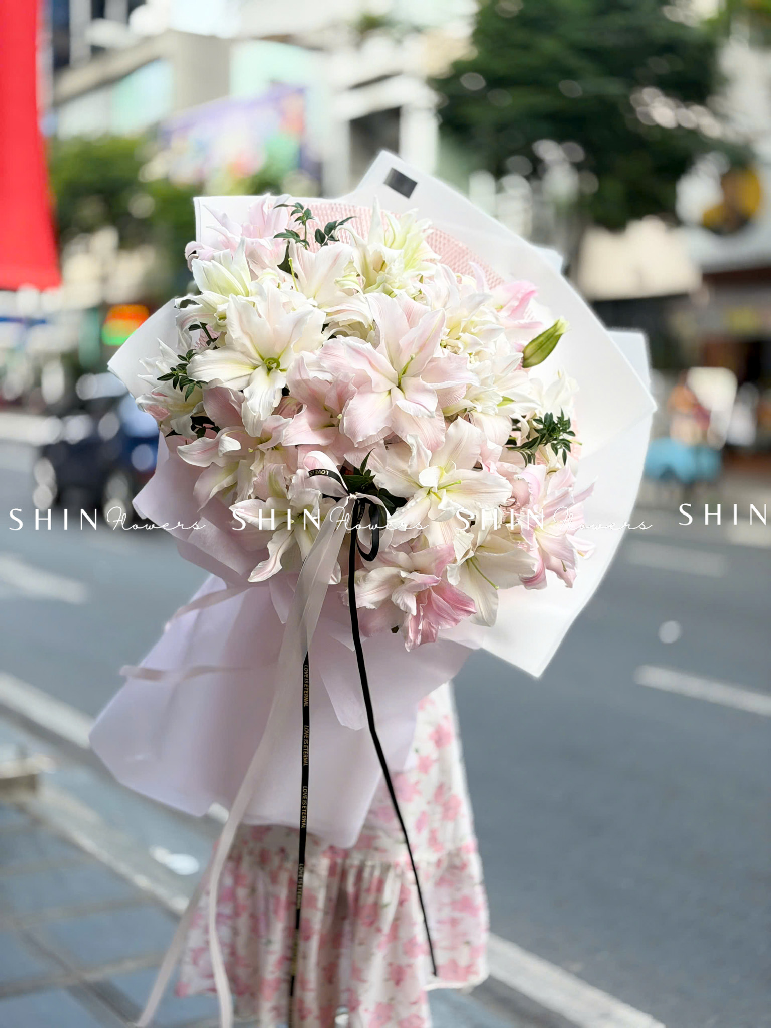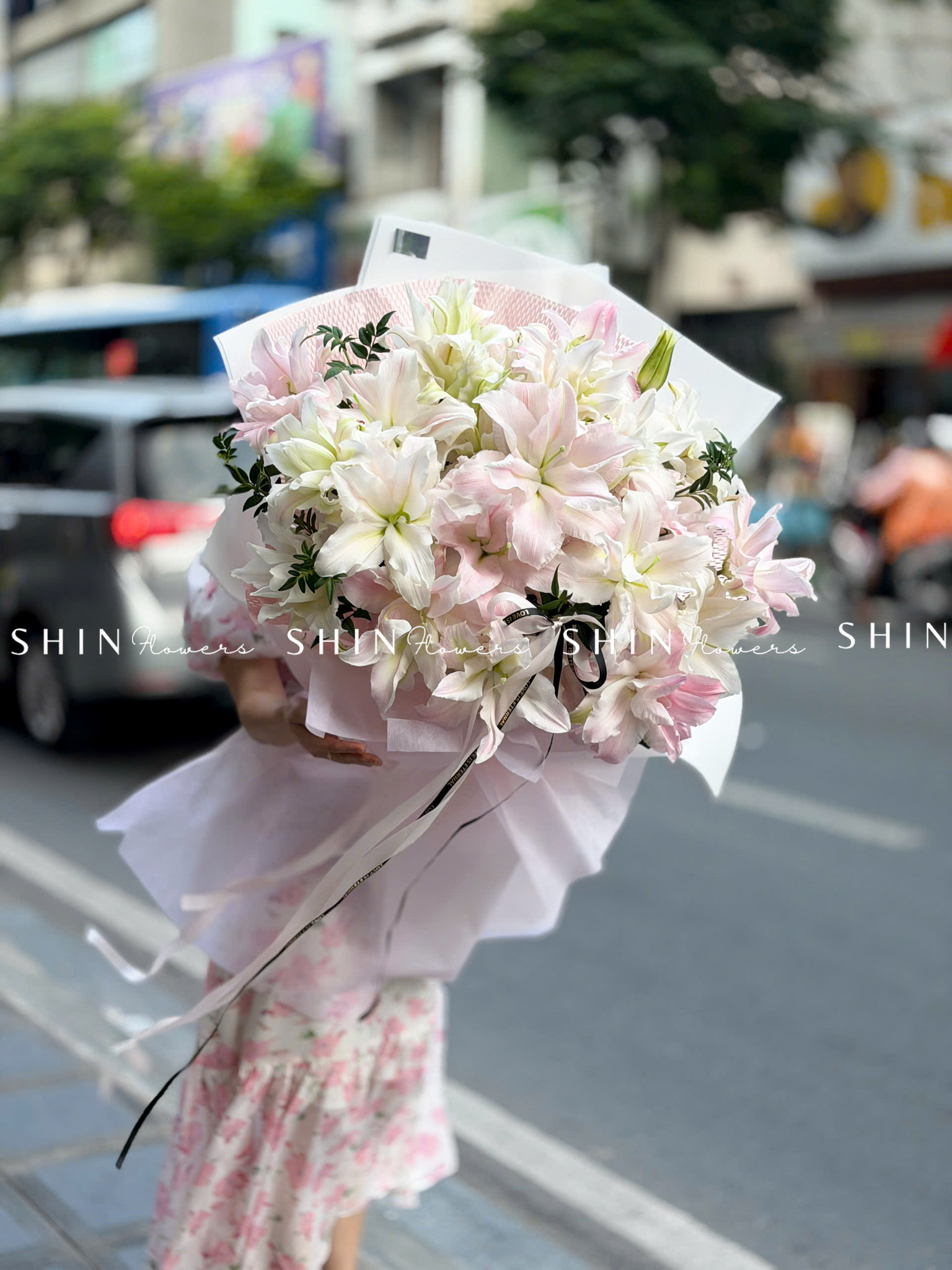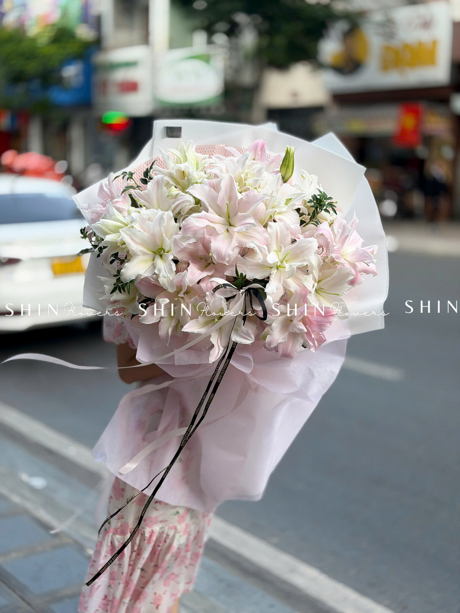Sản phẩm hoa mẫu chỉ mang tính chất tham khảo. Bởi vì: một số loại hoa trong mẫu theo mùa sẽ không có hoặc chất lượng không đảm bảo, do đó chúng tôi sẽ dùng các loại hoa khác thay thế. Nhưng SHIN Flowers đảm bảo định lượng, tone màu, kiểu dáng cũng như chất lượng hoa tươi đẹp và đầy đặn nhất. Bạn sẽ nhận được ảnh hoàn thiện trước khi chúng tôi giao hoa.