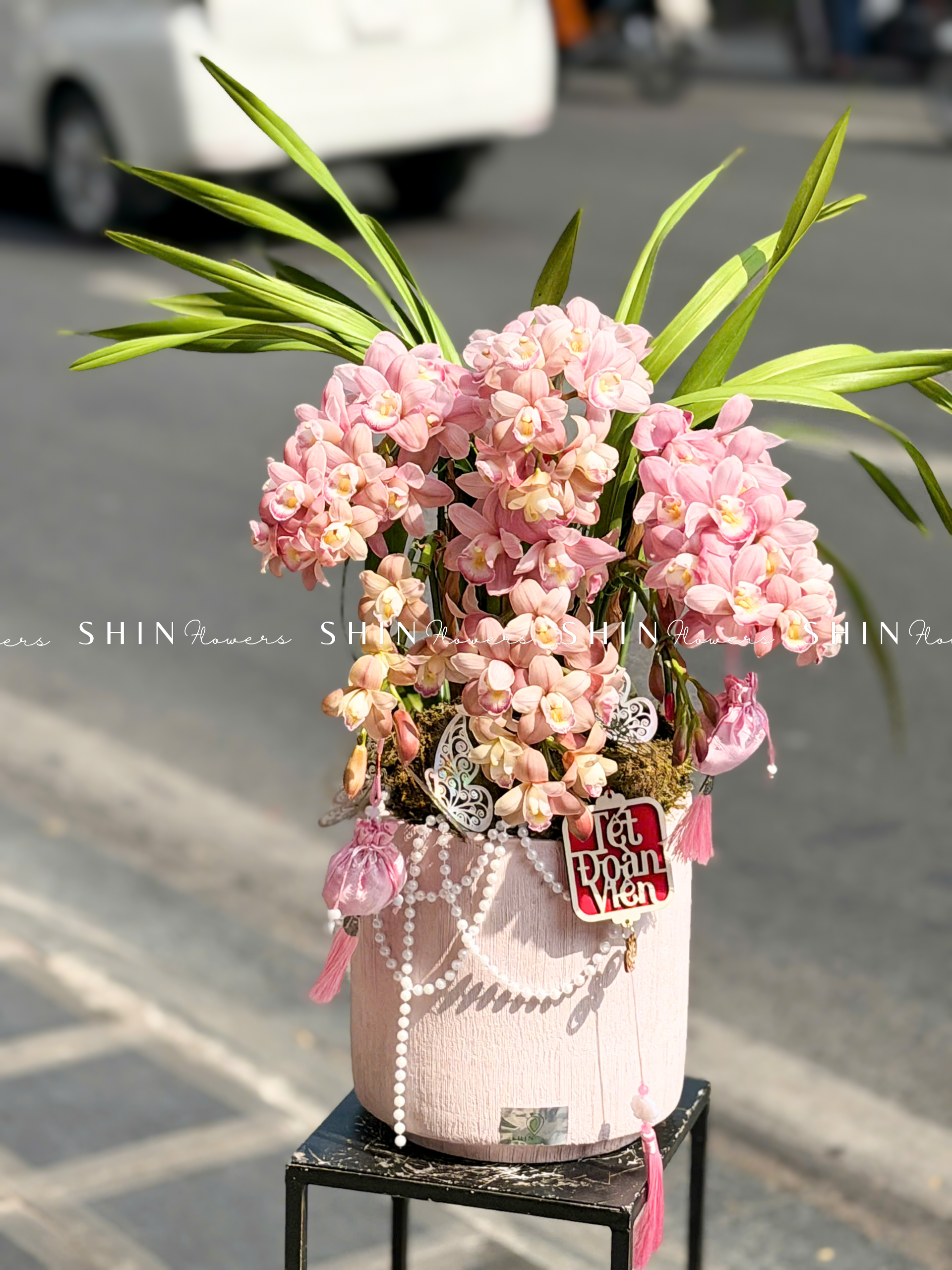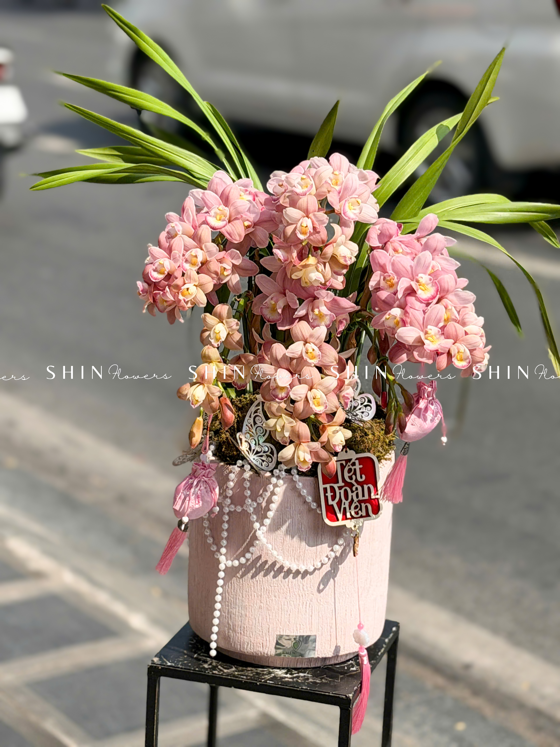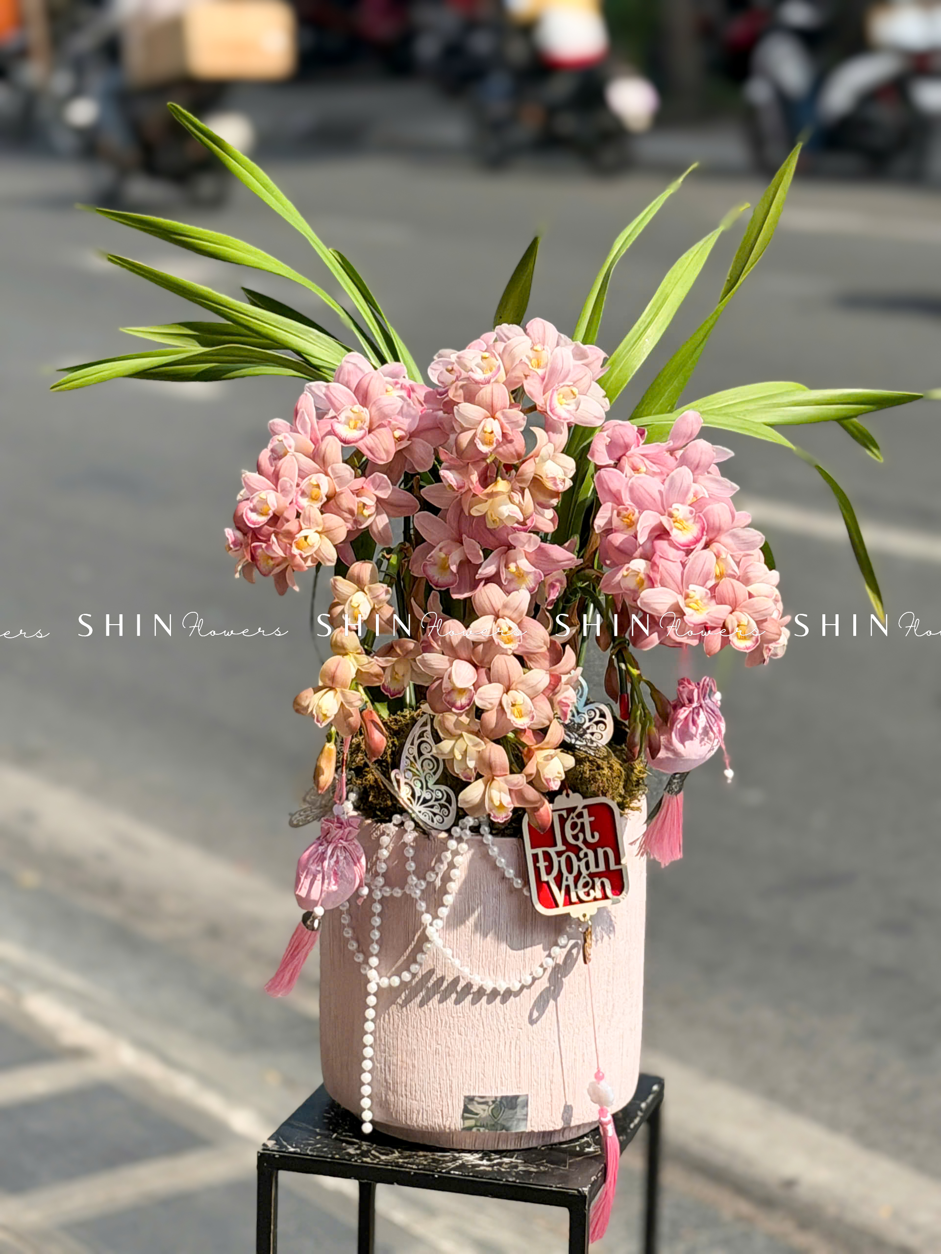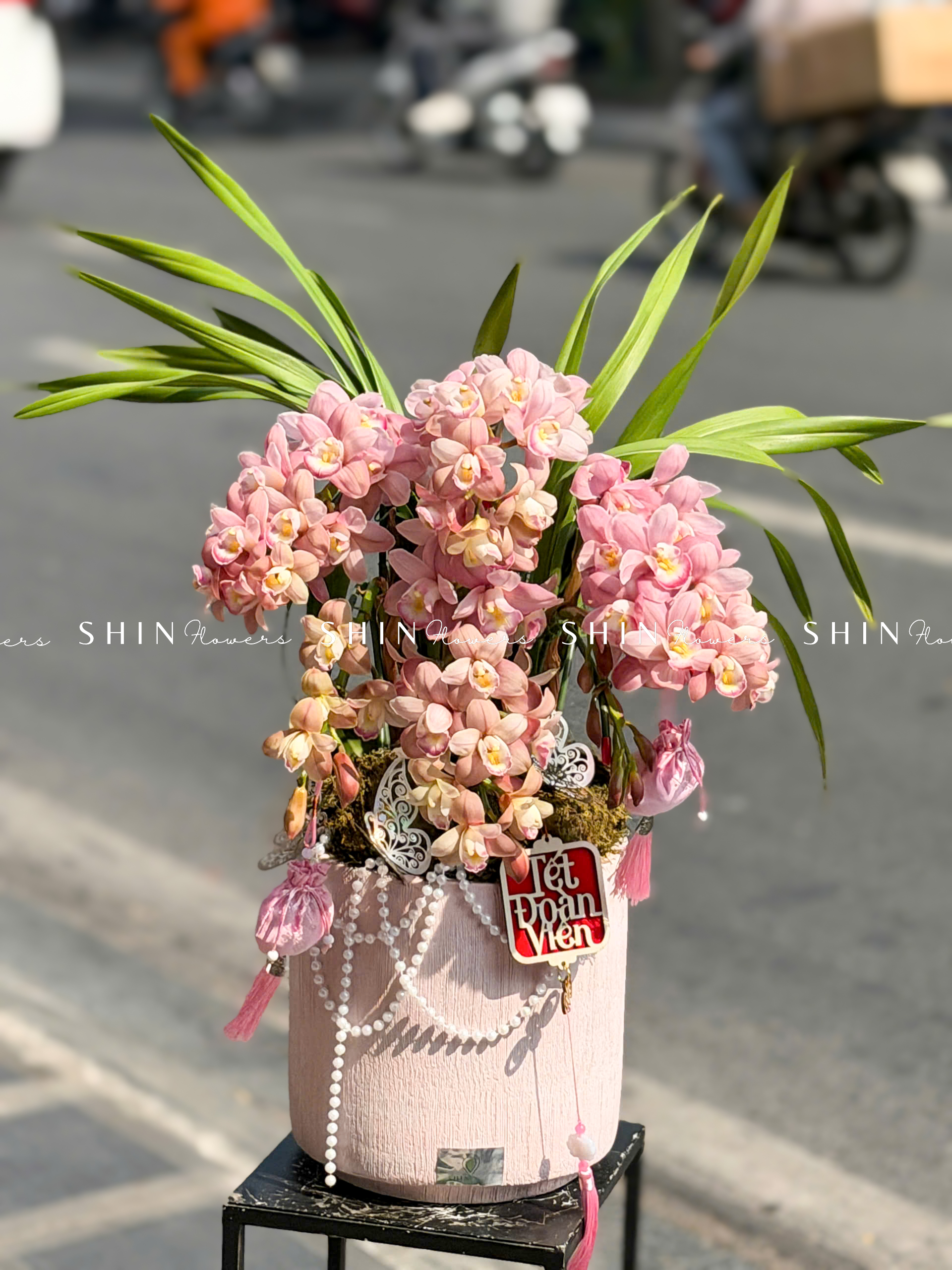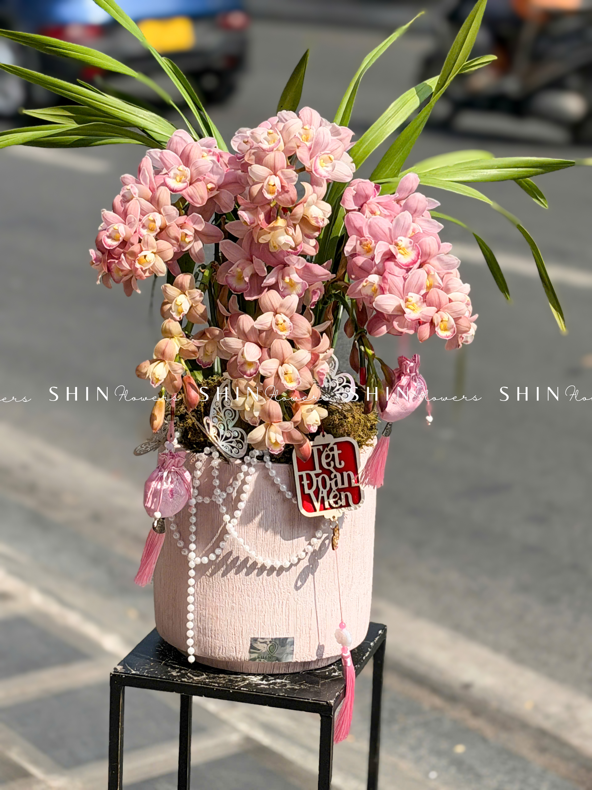 Chậu Đia Lan Sato Hồng Nhạt – Ngọc Ngà – Gấm Hoa – 5 Vòi – Tet36