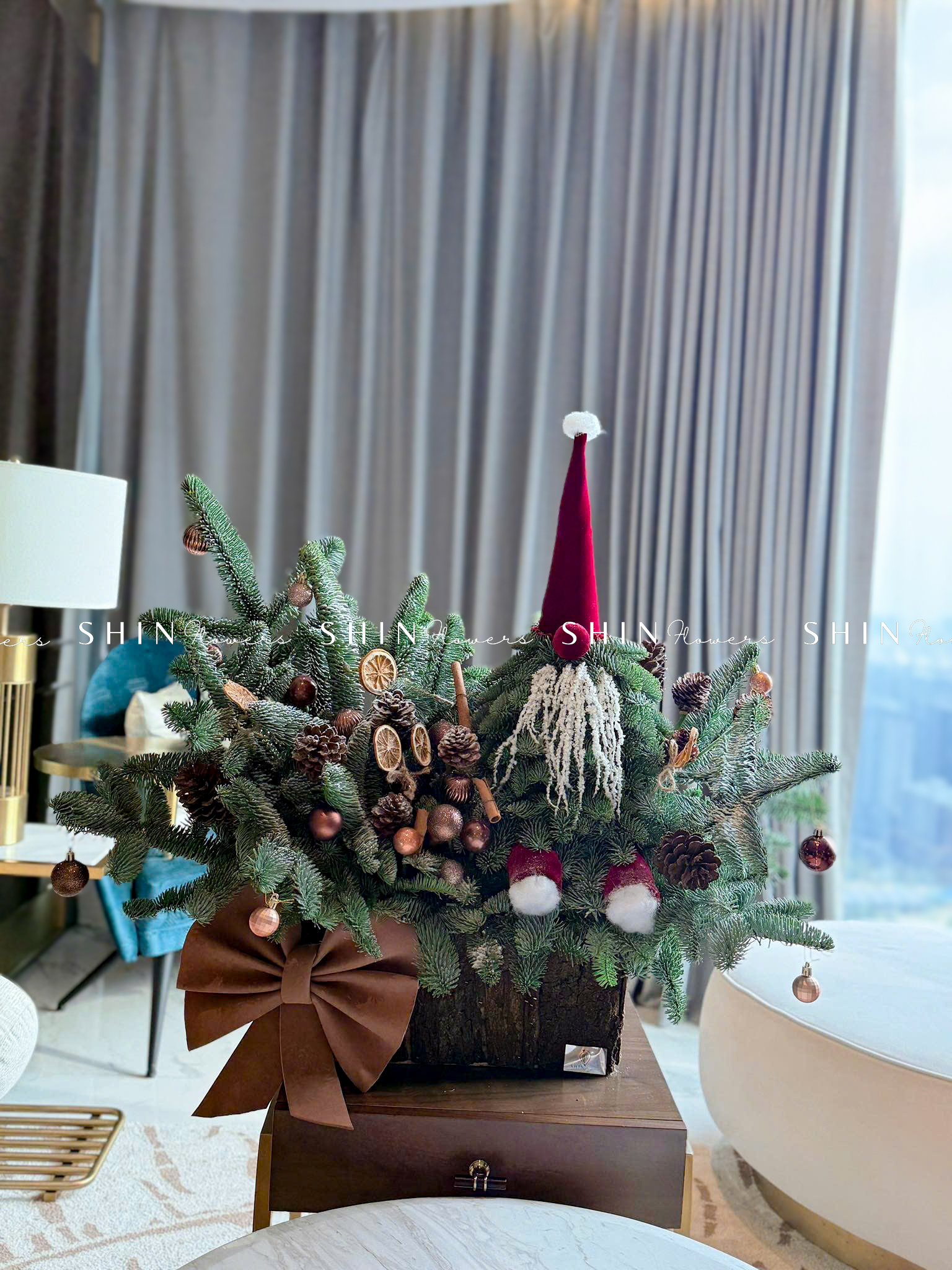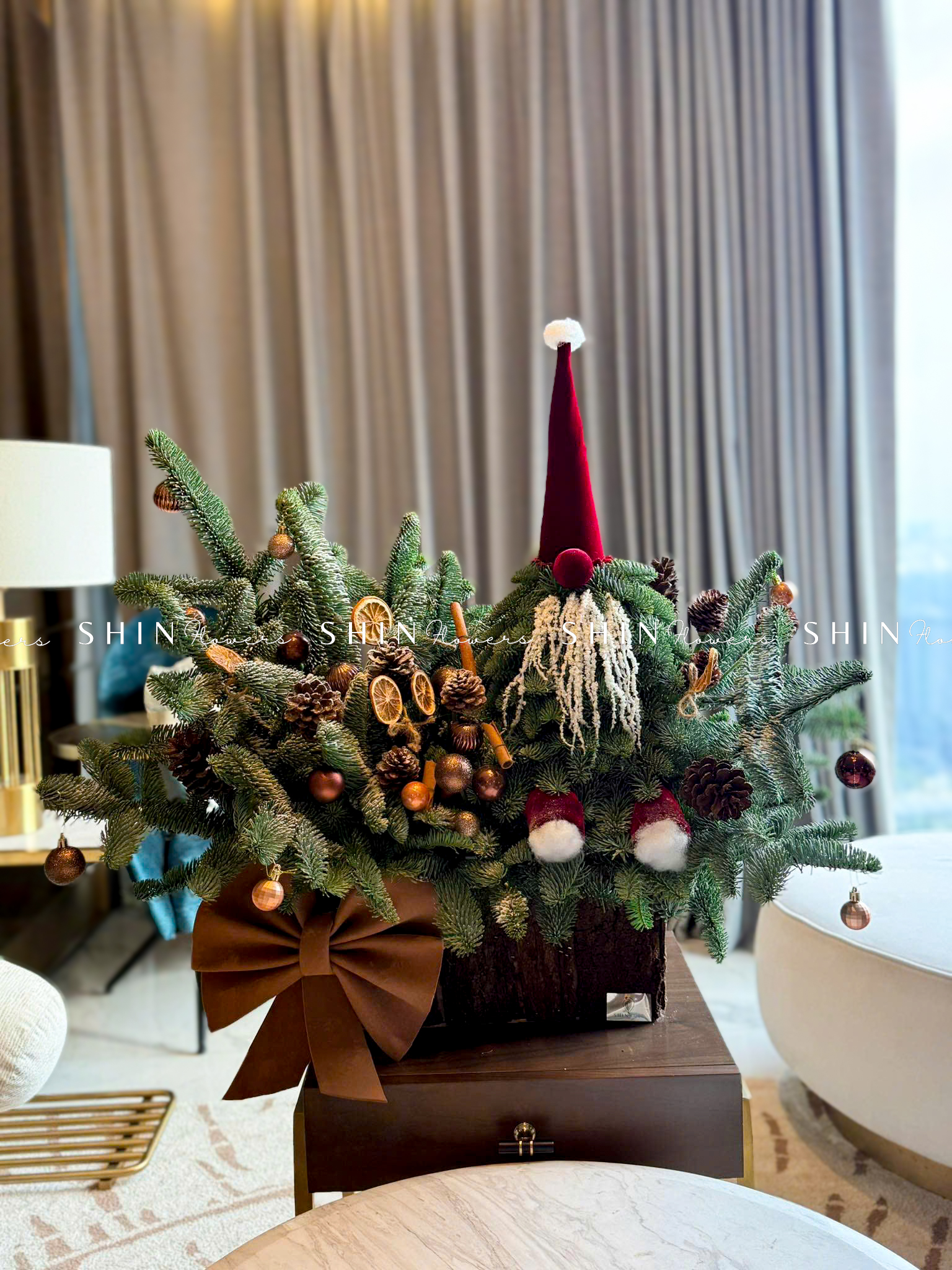 cây THÔNG NOBILIS Đan Mạch ĐỂ BÀN được thiết kế từ những cành thông tươi Nobilis Đan Mạch được cắm theo dáng của những cây thông thật xinh xắn.