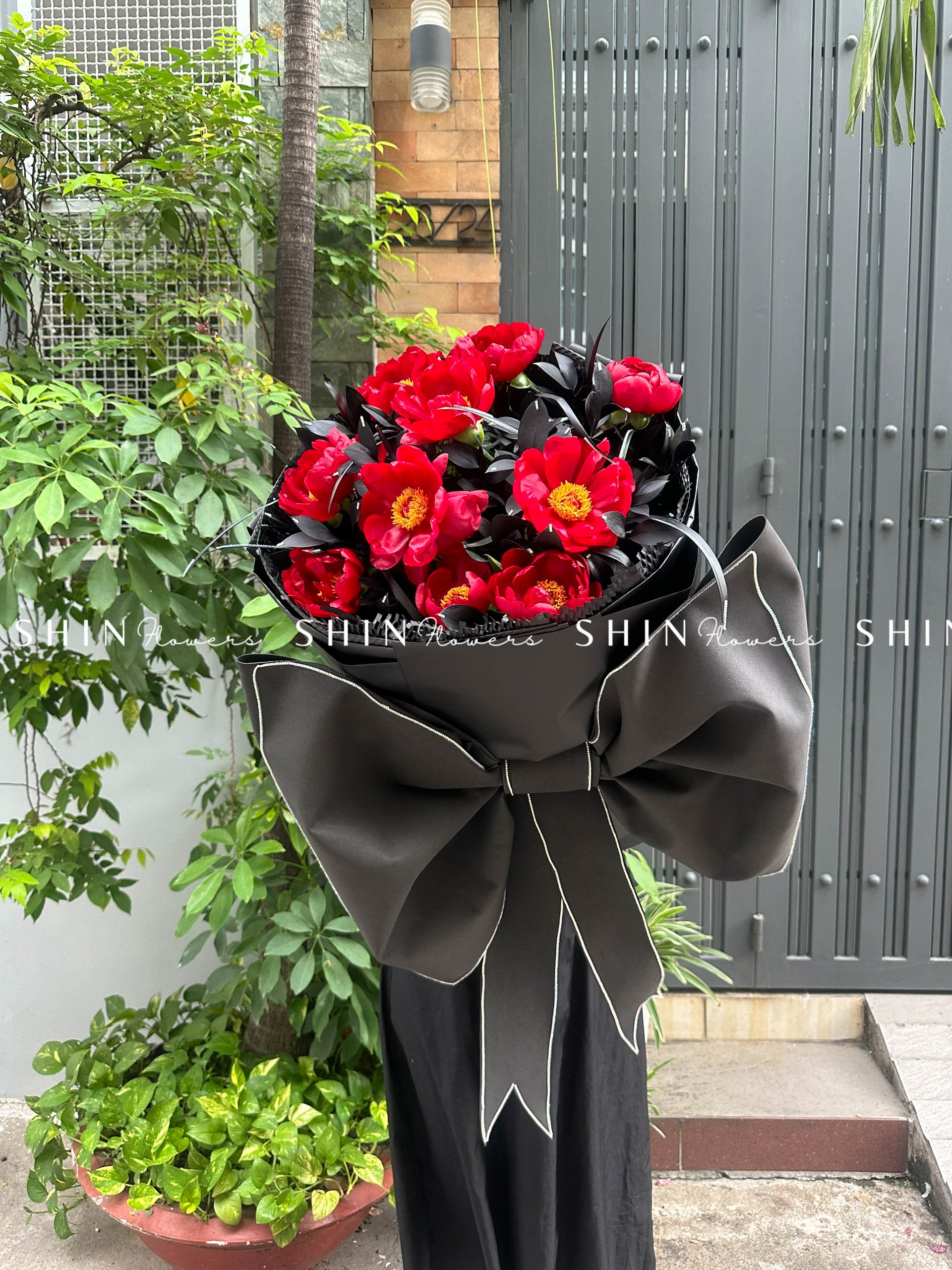 Hoa Bó 10 Mẫu Đơn Đỏ Red Red Rose S010