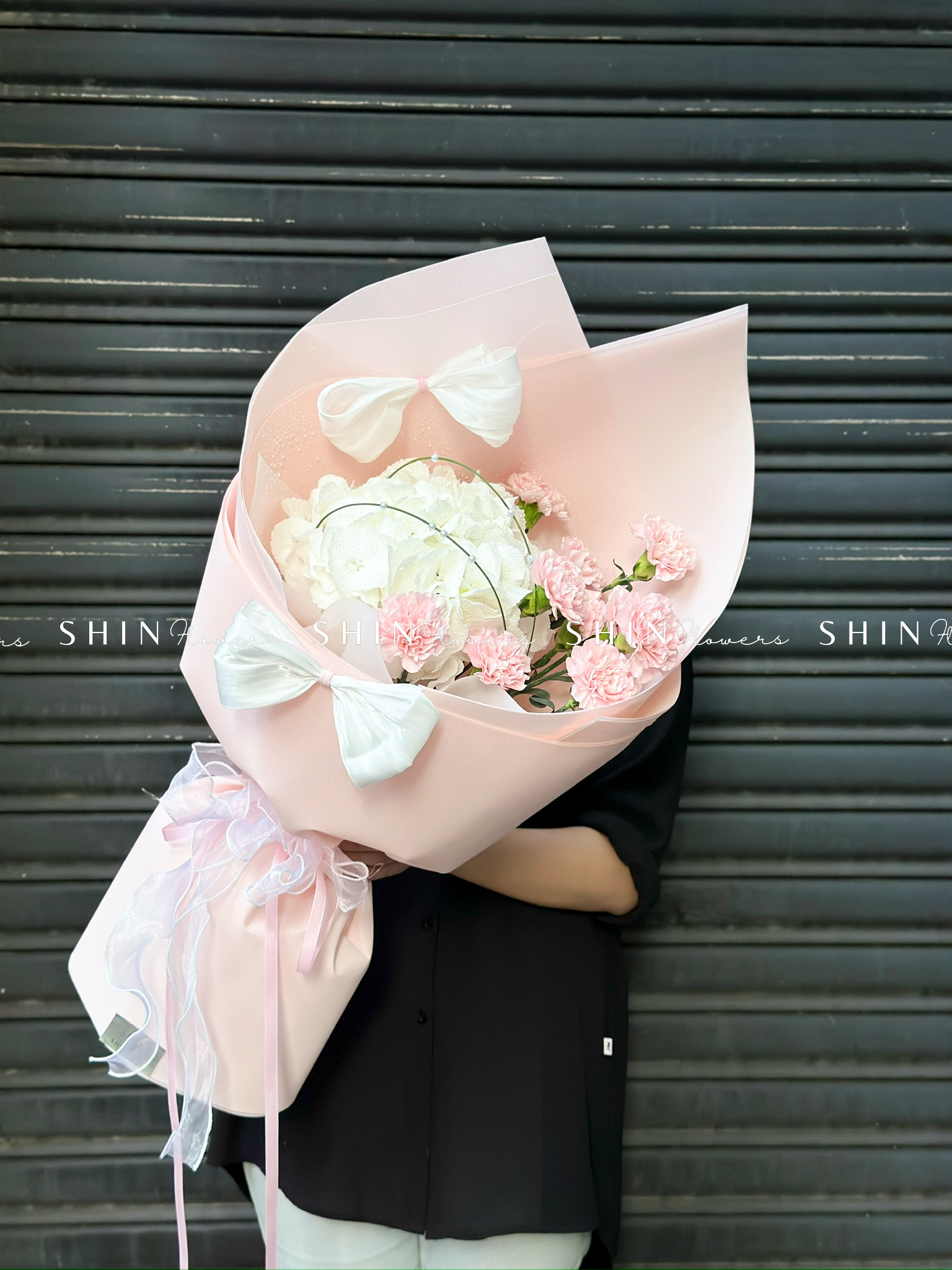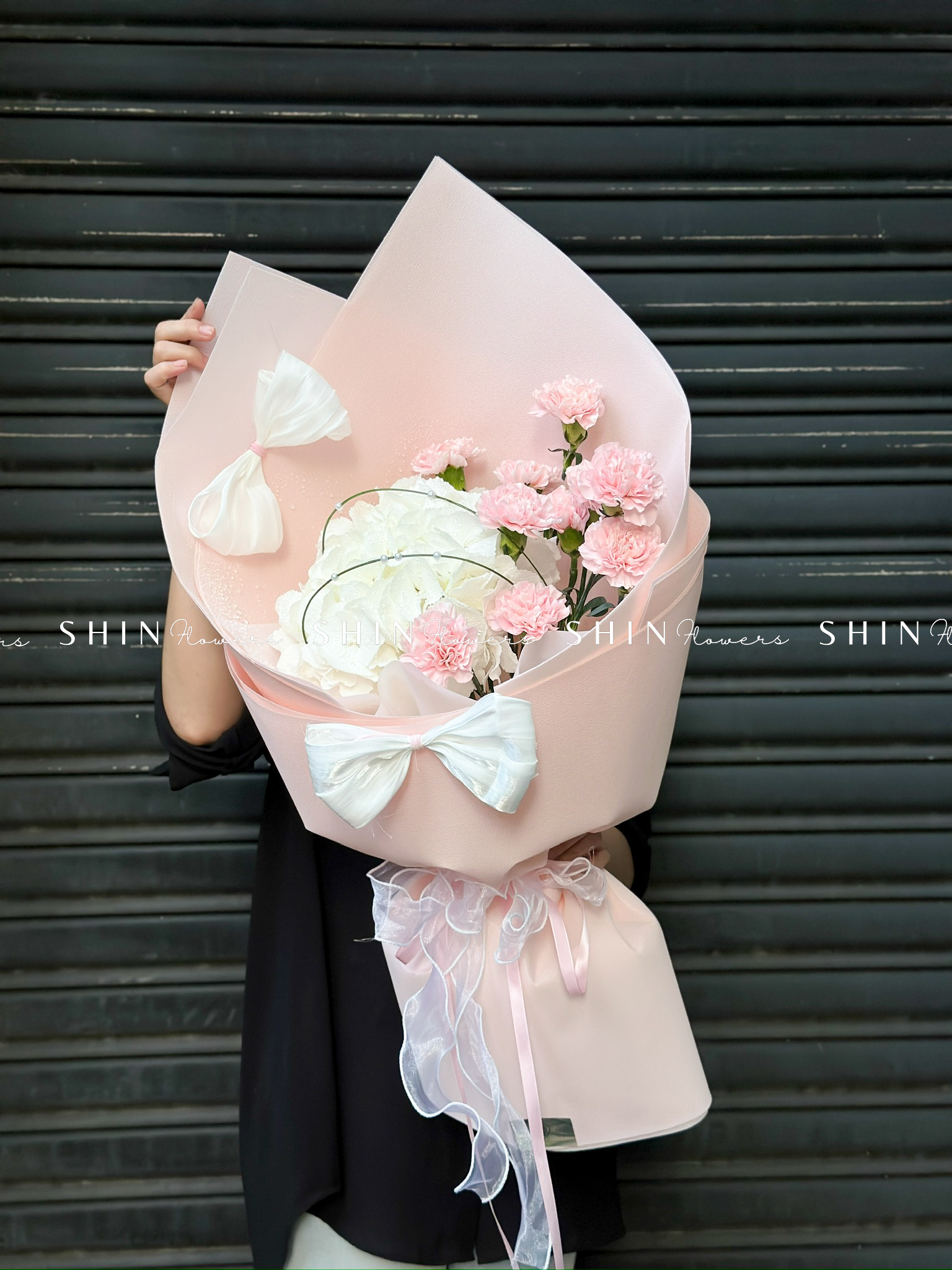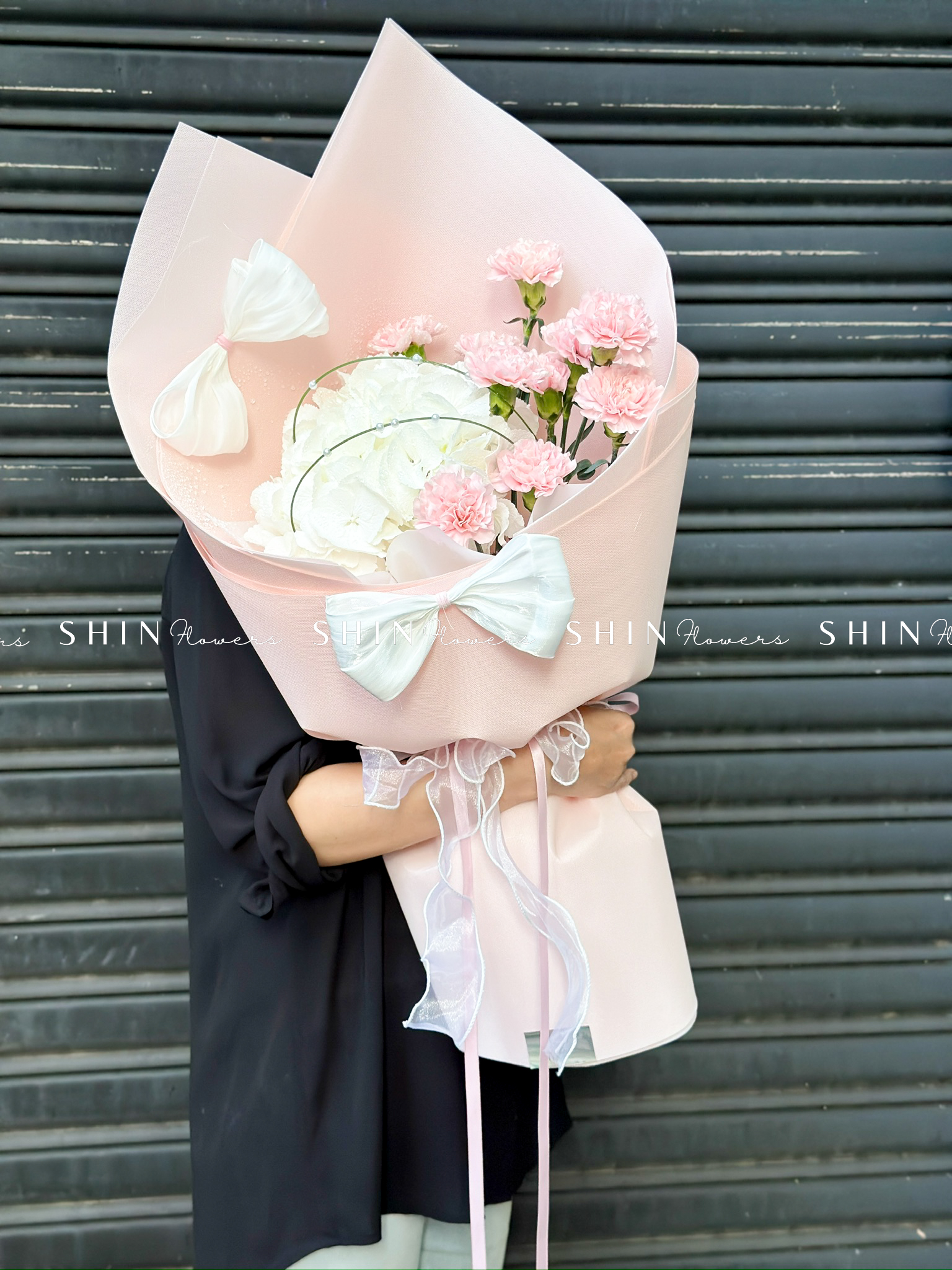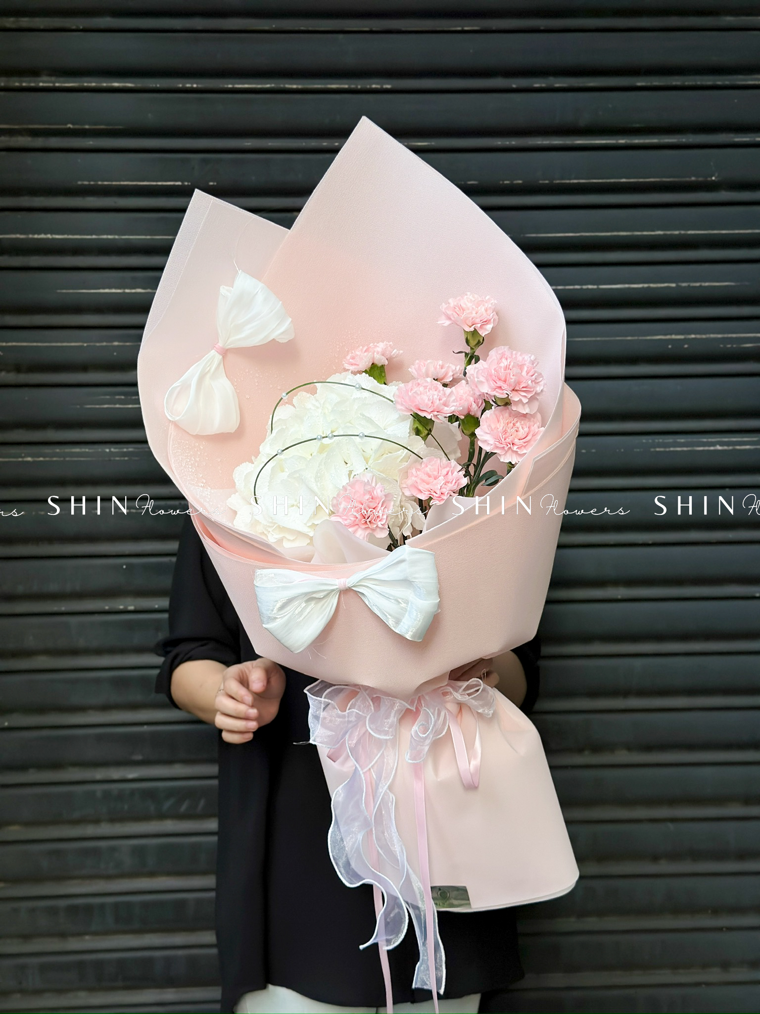 Hoa Bó Cẩm Chướng Hồng mix Cẩm Tú cầu Trắng S480