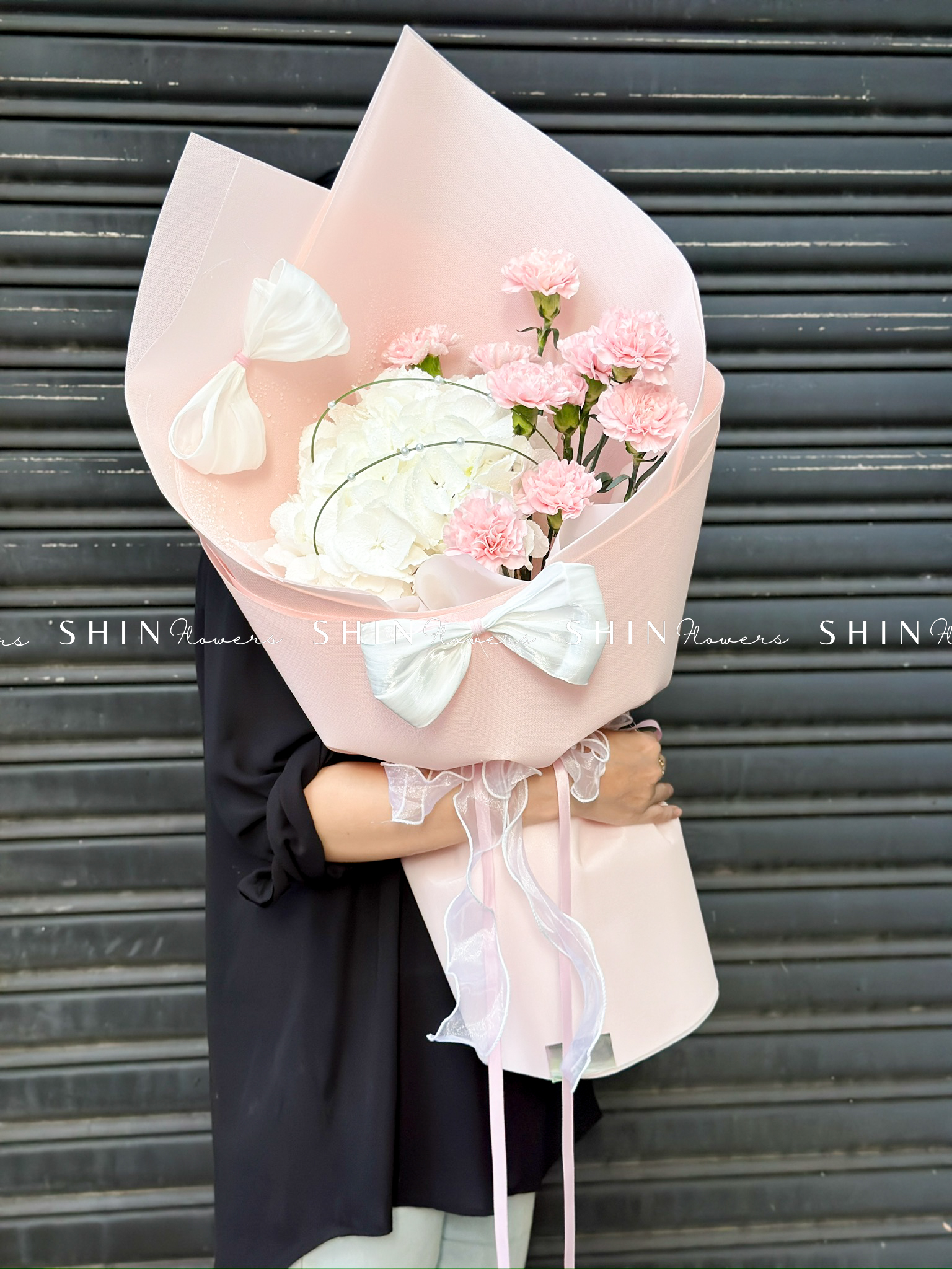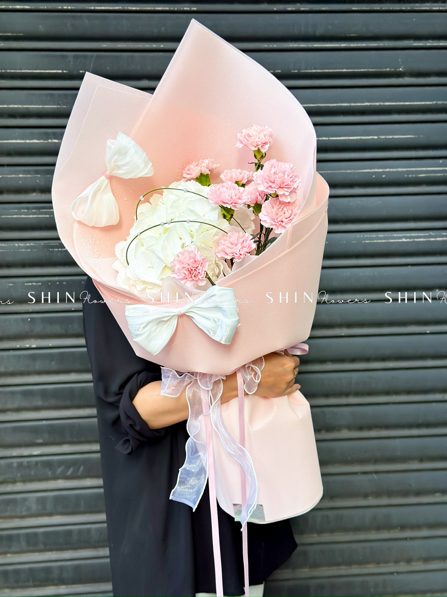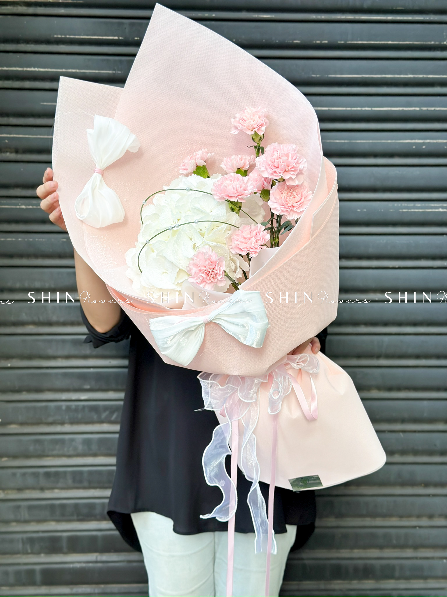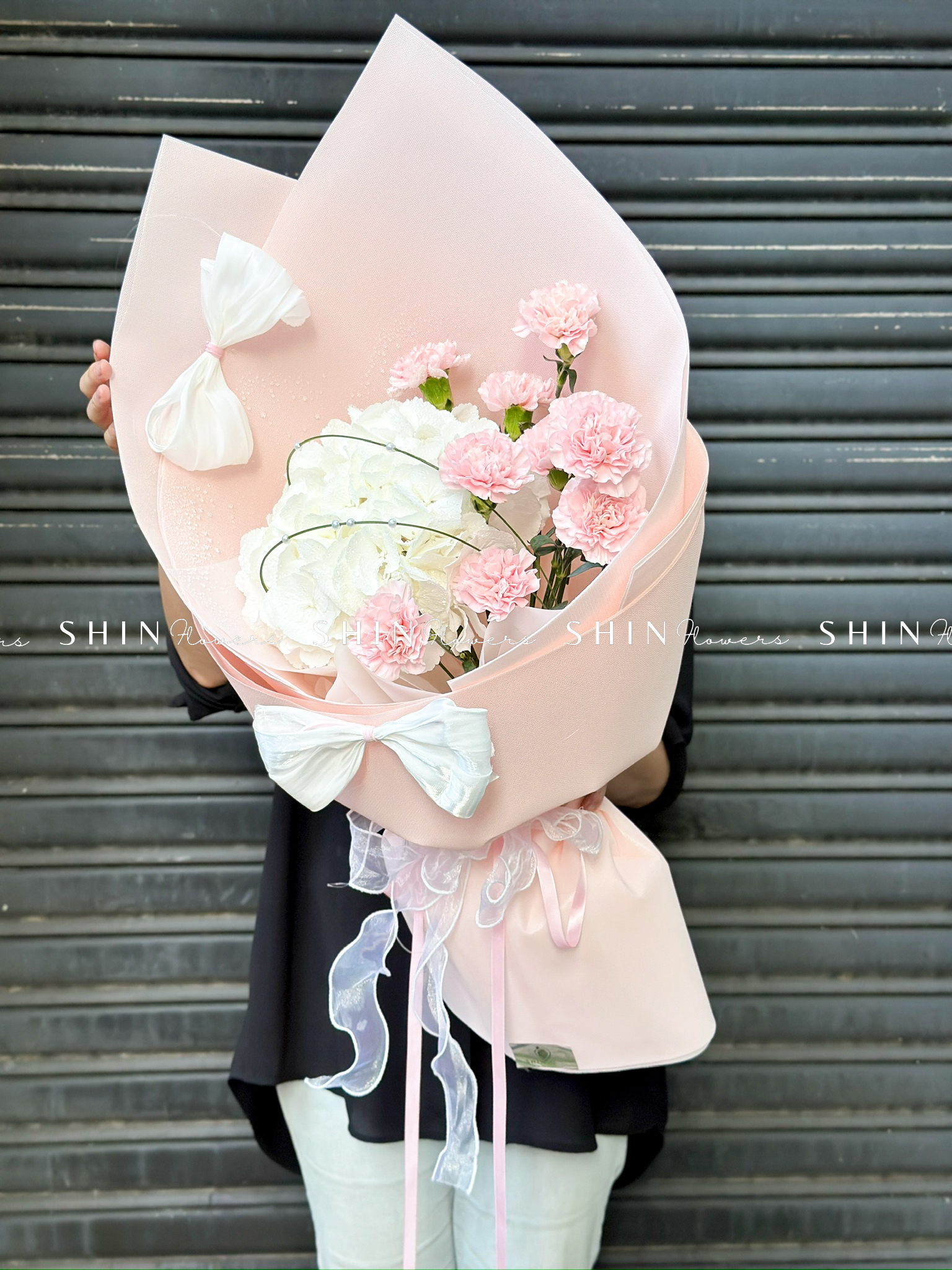 Hoa Bó Cẩm Chướng Hồng mix Cẩm Tú cầu Trắng S480
