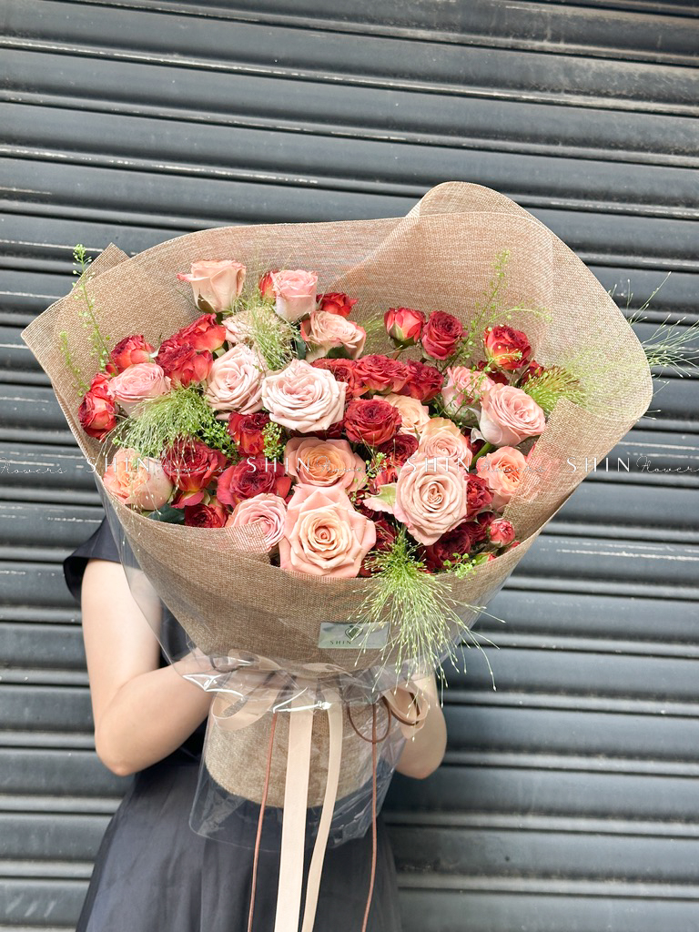Hoa Bó Hoa Hồng Capuchino mix Hồng Chùm Chocolate S411
