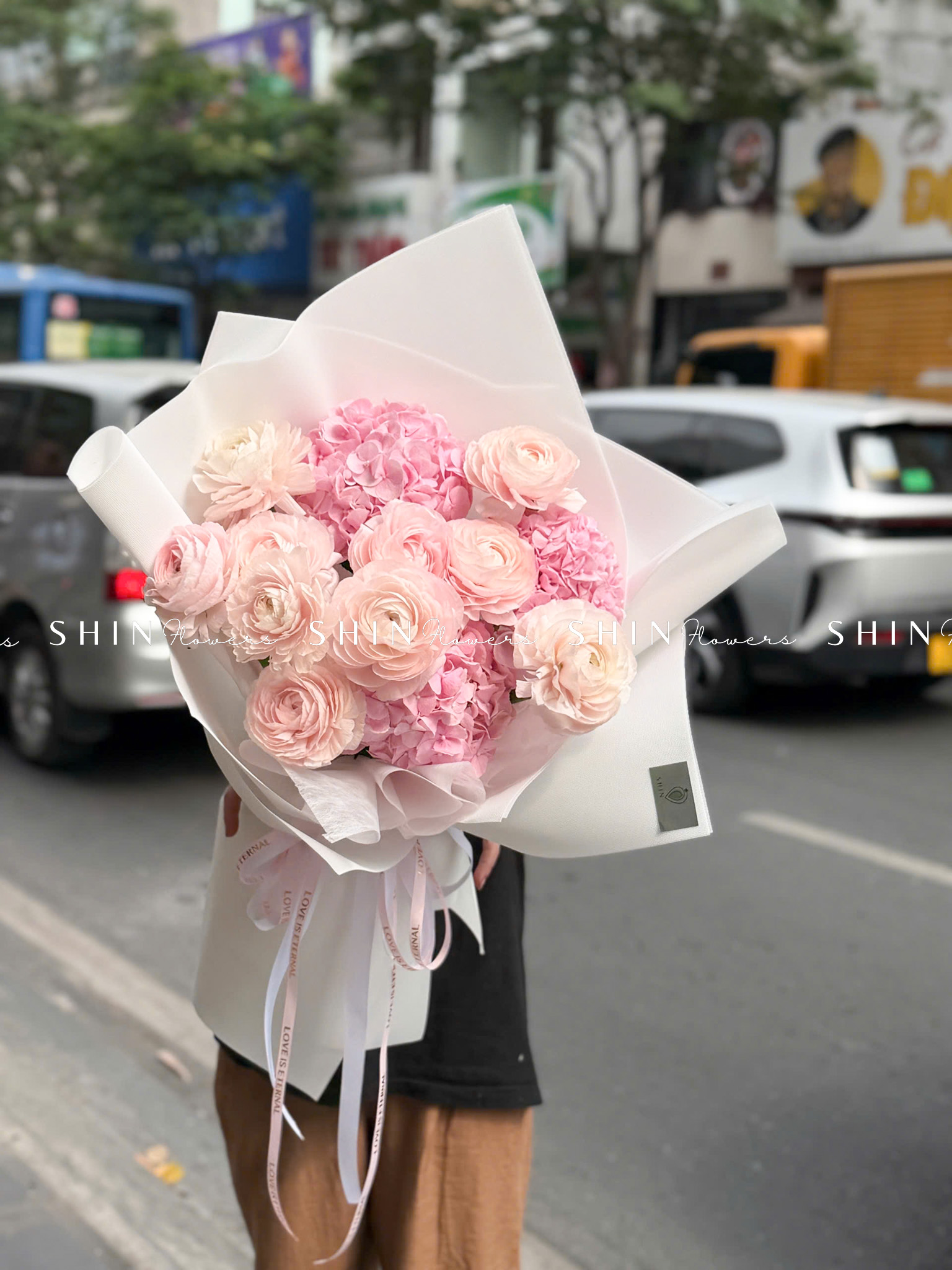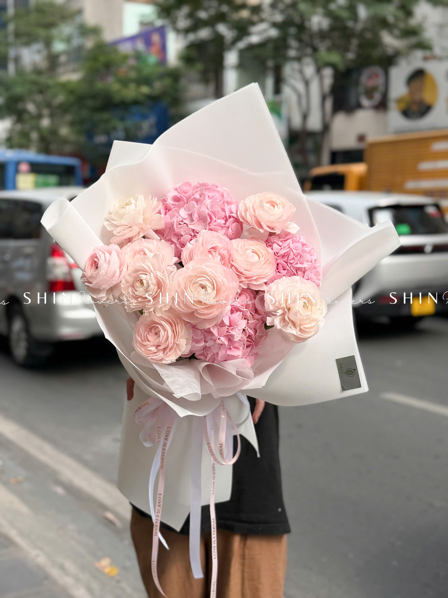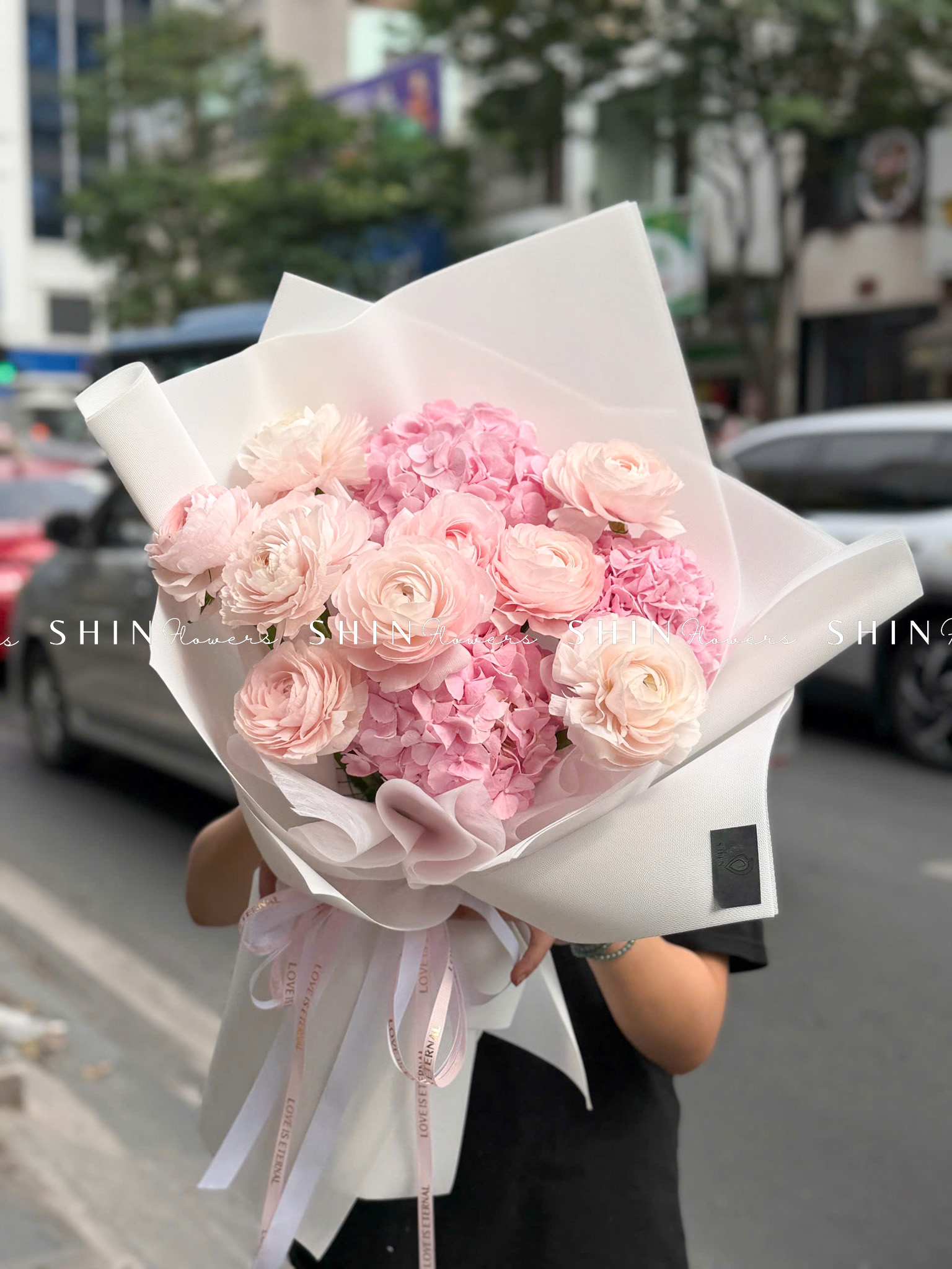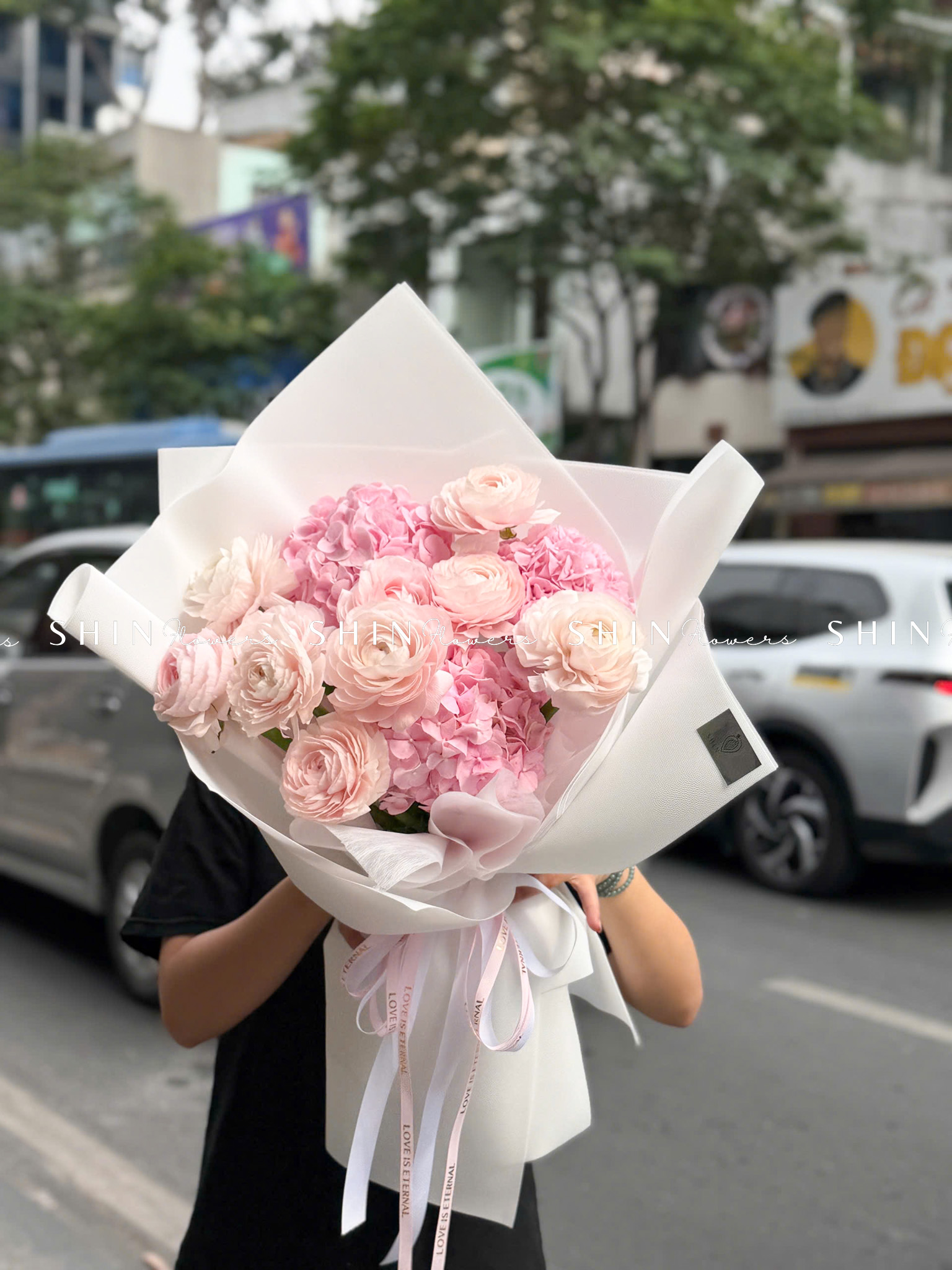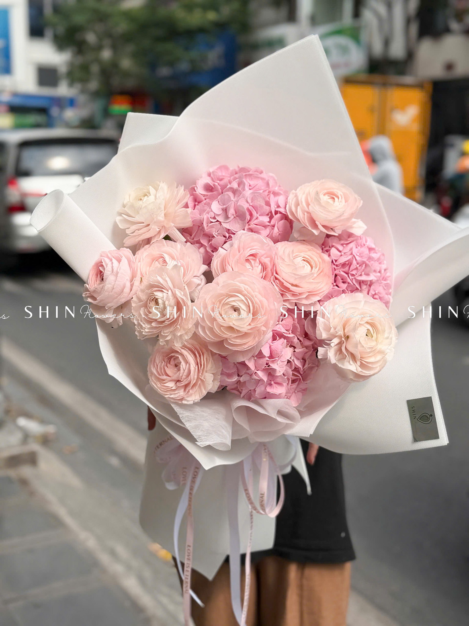 Hoa Bó Mao Lương Hồng Nhật Bản mix Tú Cầu Hồng S595