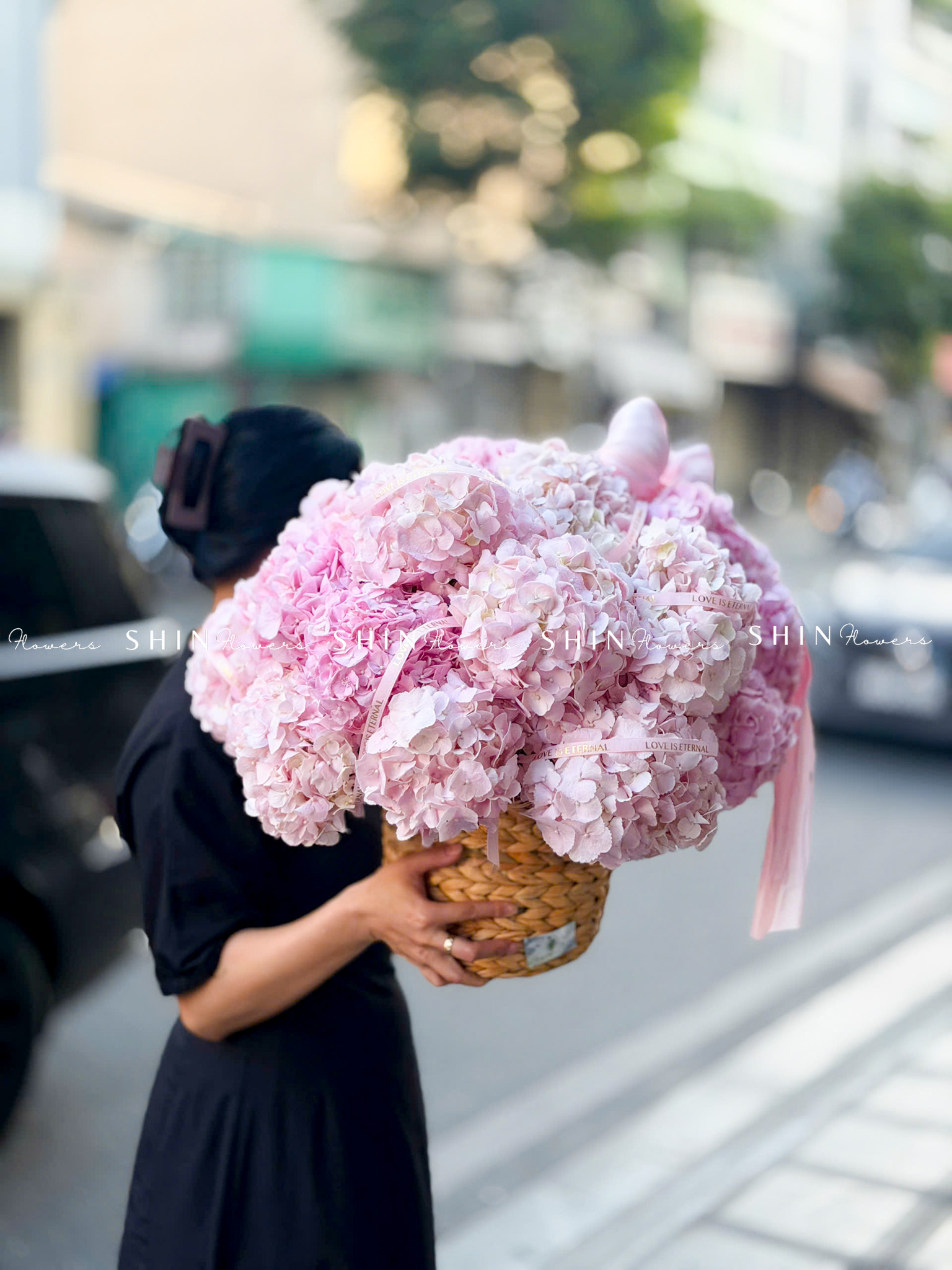 Hộp hoa 22 Cẩm Tú Cầu Hồng H155