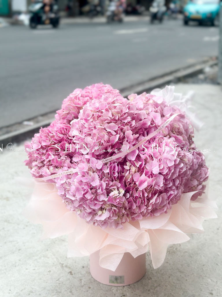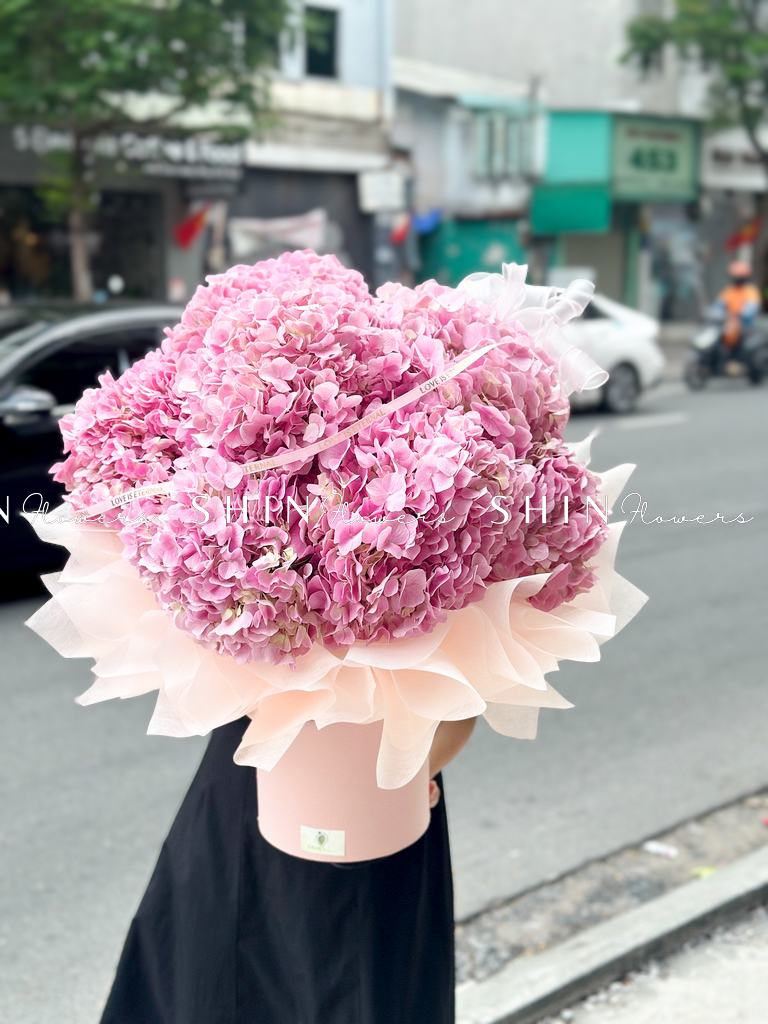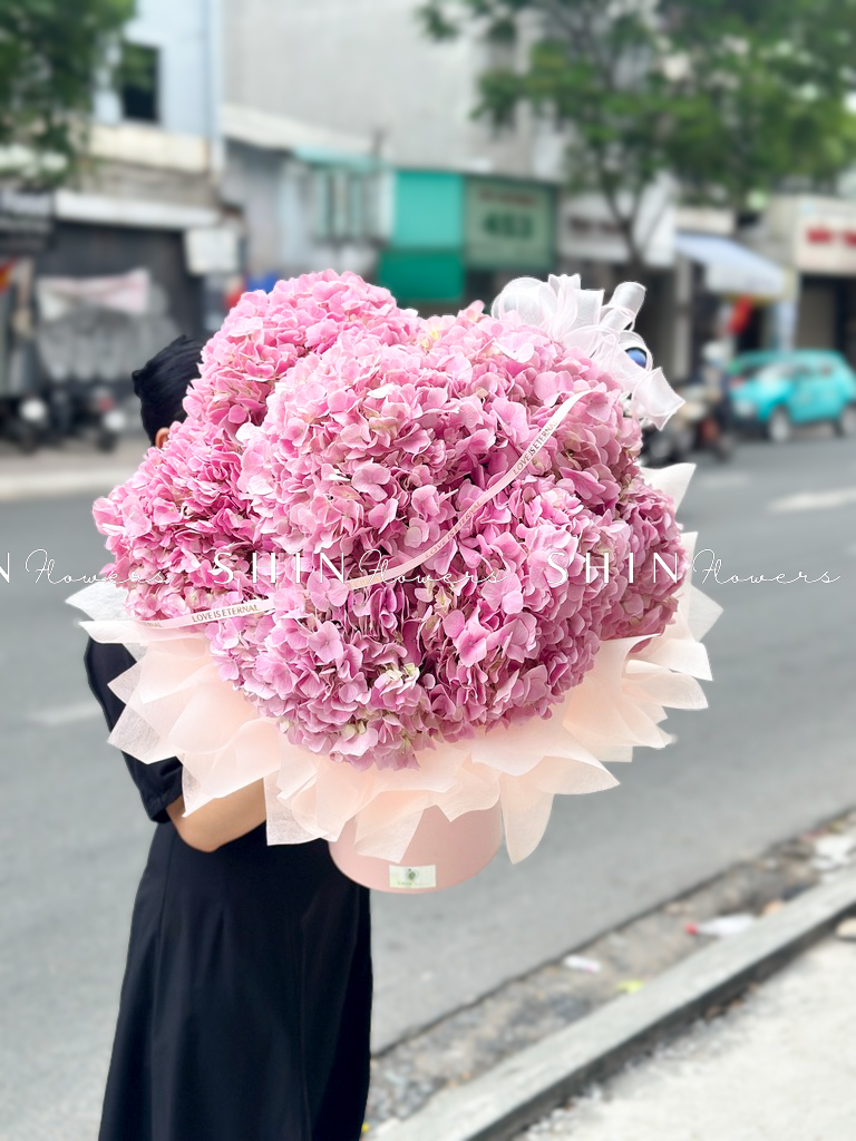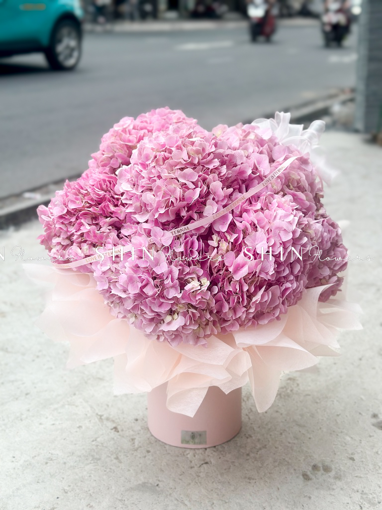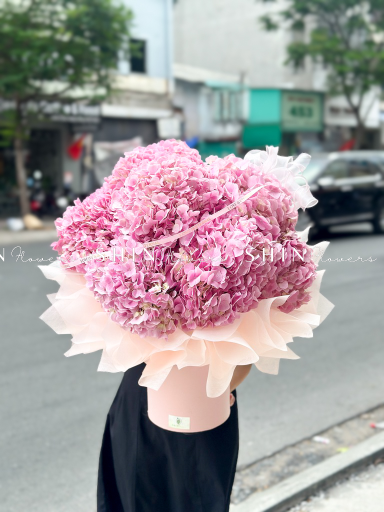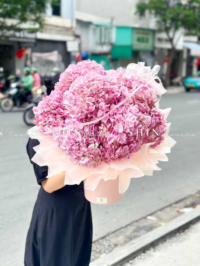 Hộp hoa 7 Cẩm Tú Cầu Hồng Đậm H117