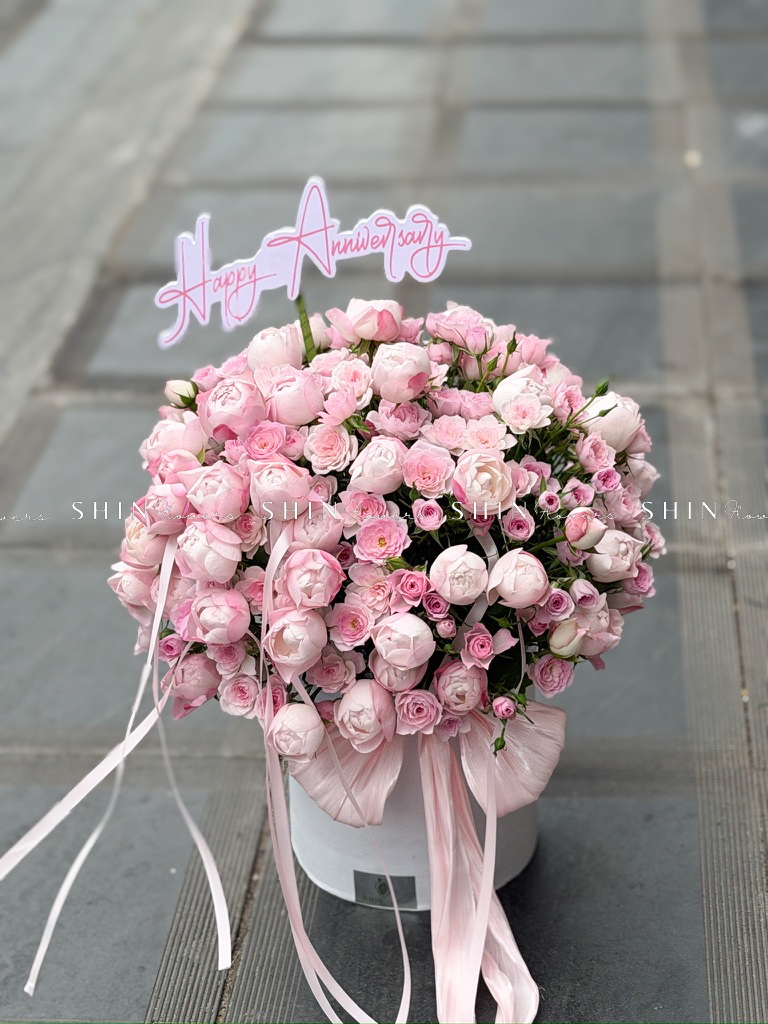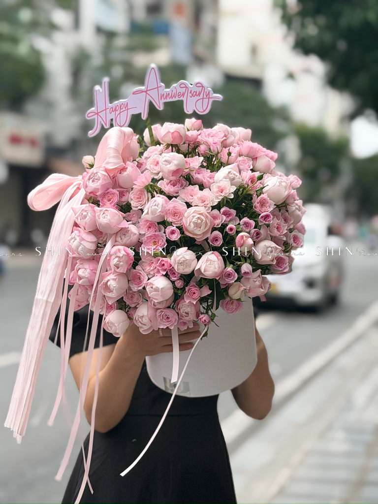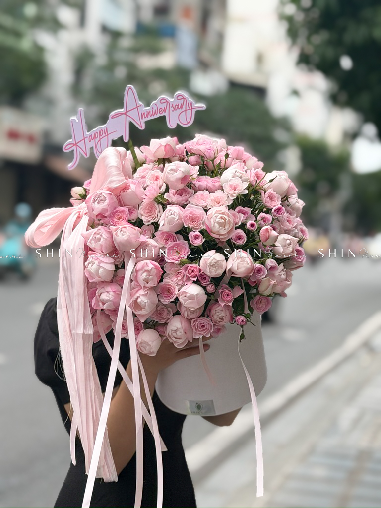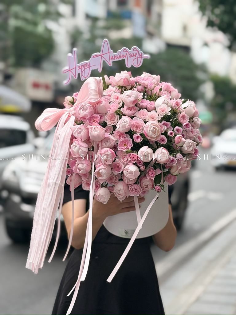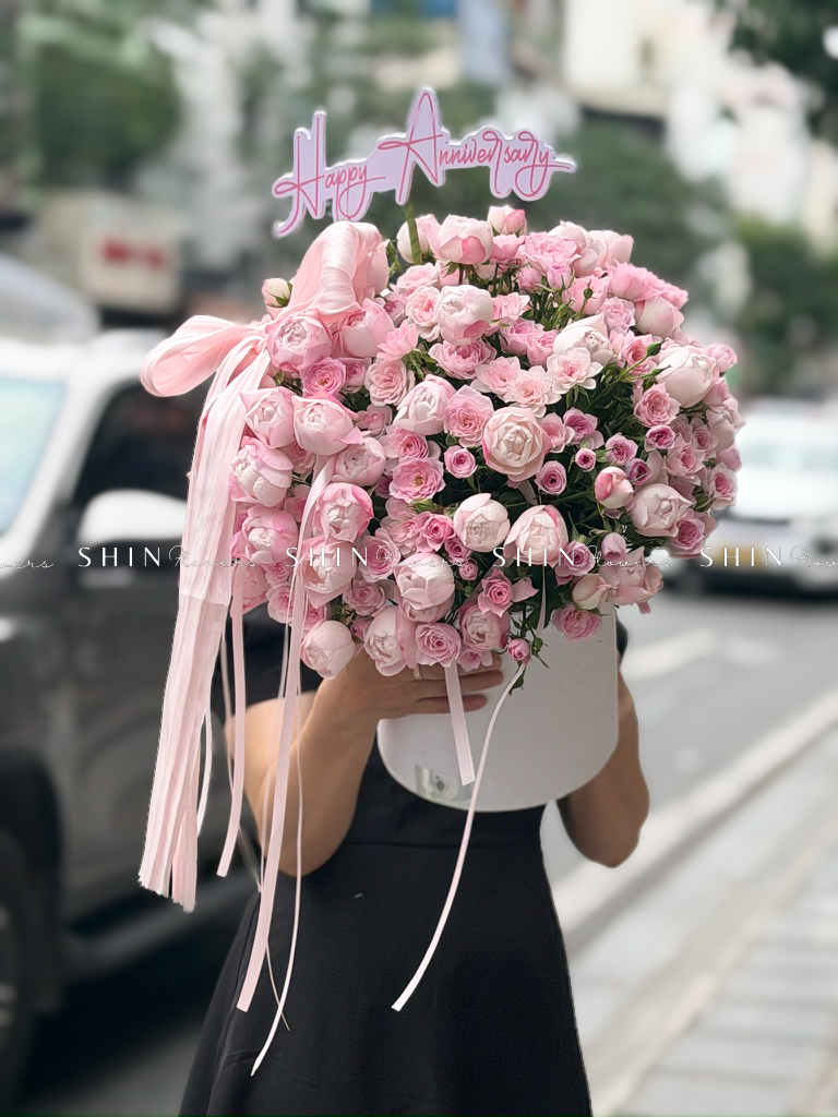 Hộp hoa hồng chùm điền mật và hồng chùm Plume H139