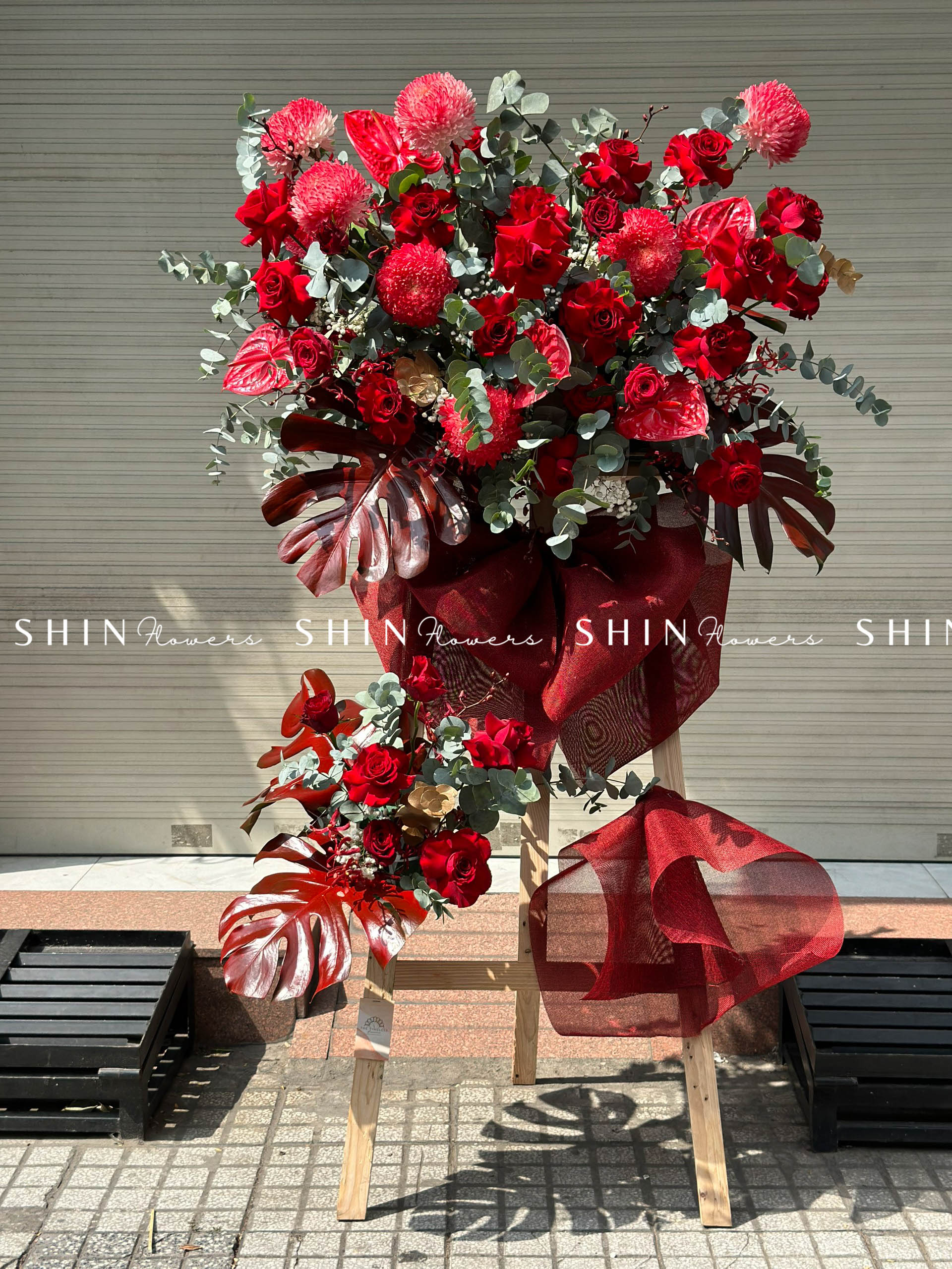 Kệ khai trương tone hồng dễ thương có ý nghĩa muốn gửi đến chủ cửa hàng lời chúc mừng và chúc cho cửa hàng thành công phát đạt.