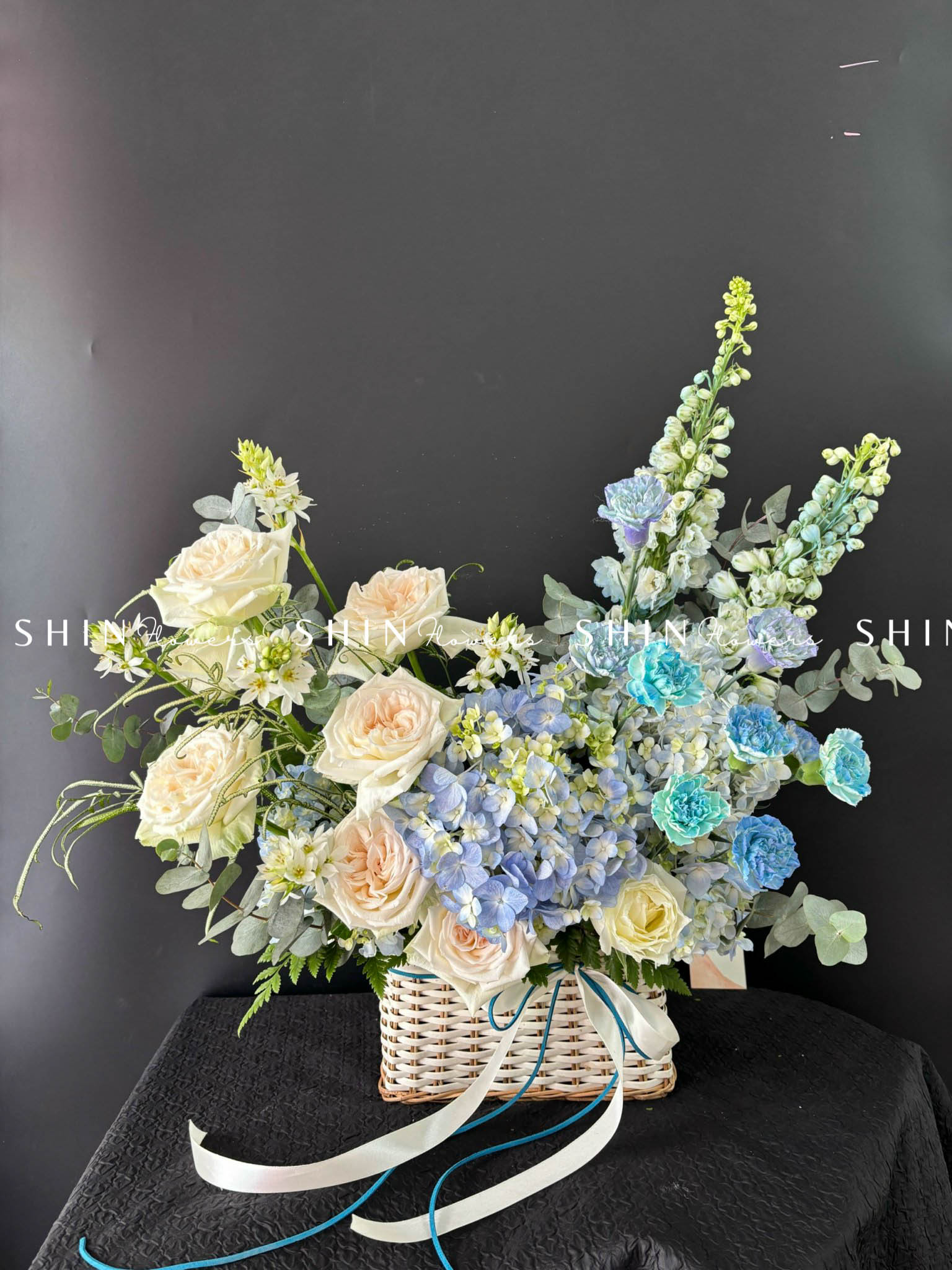 Lẵng Hoa tone Blue Chúc Mừng H020