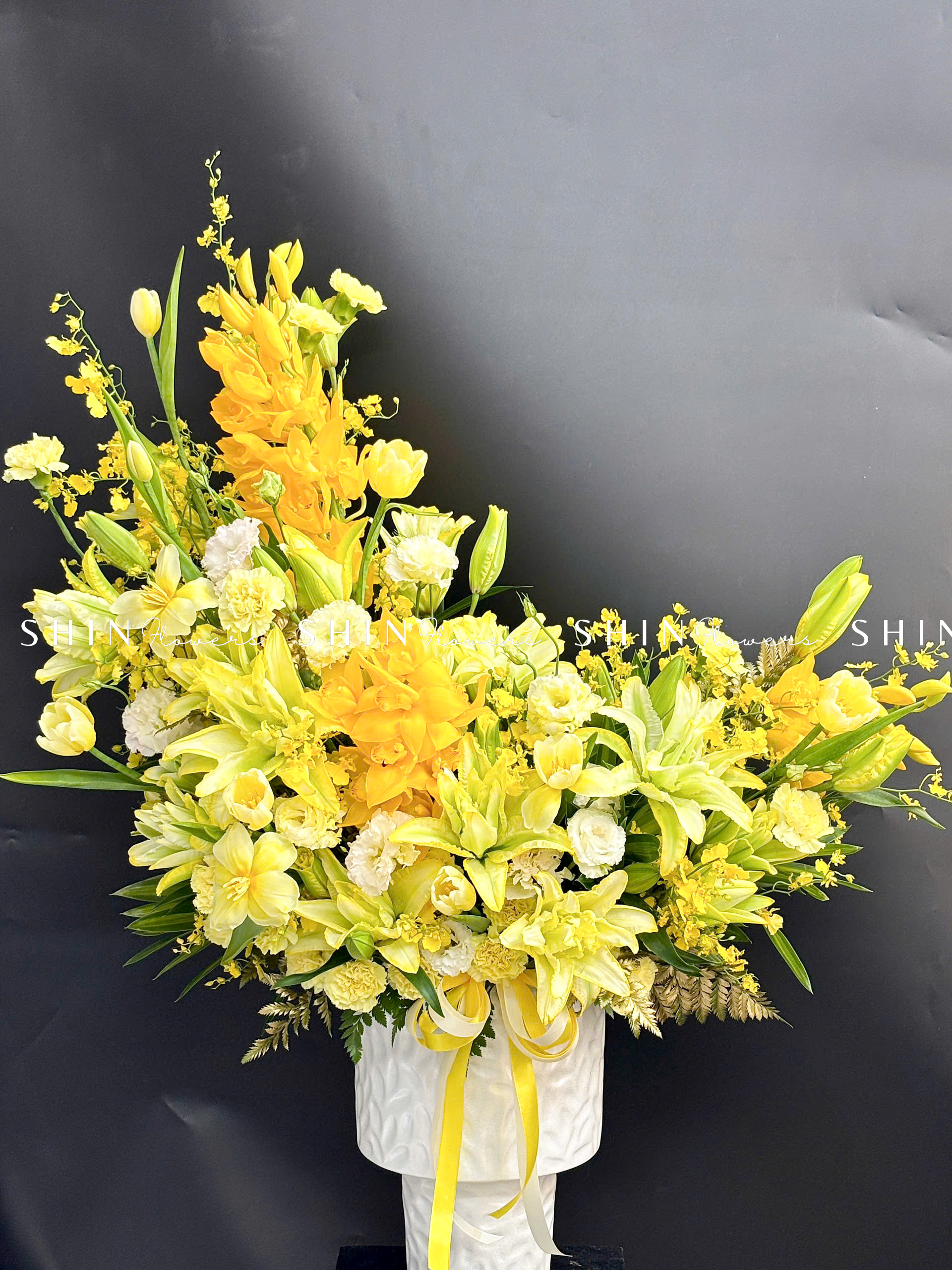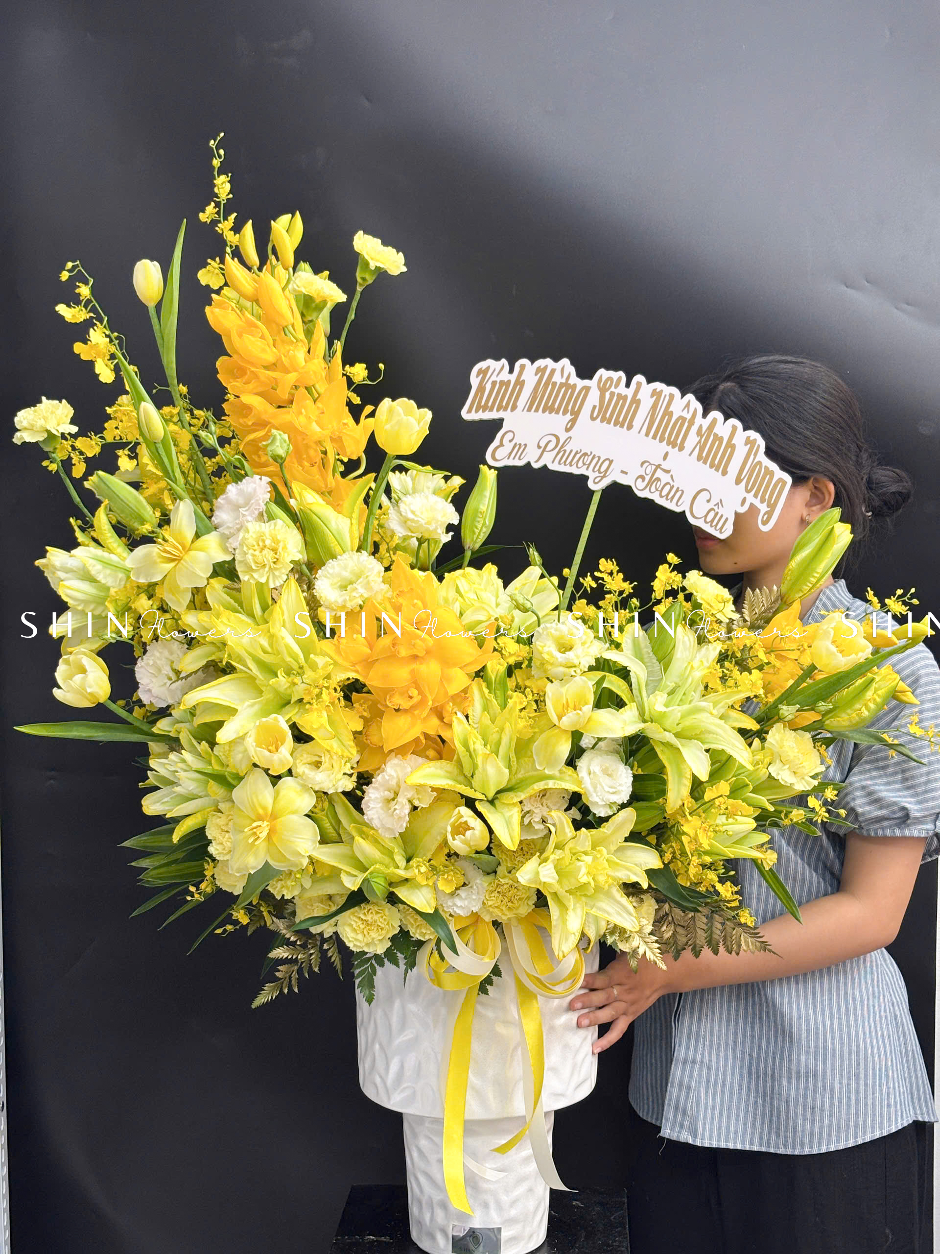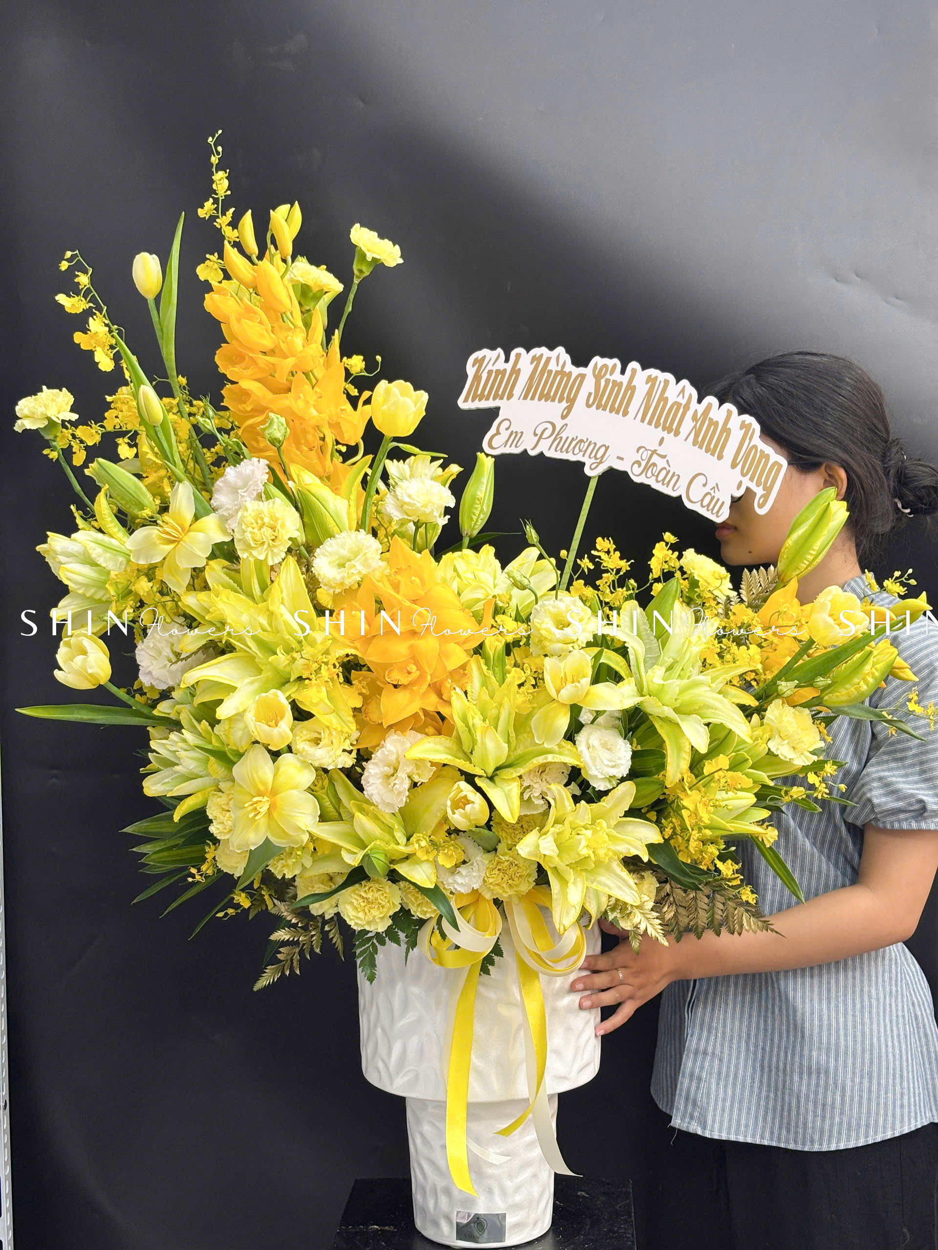 Sản phẩm hoa mẫu chỉ mang tính chất tham khảo. Bởi vì: một số loại hoa trong mẫu theo mùa sẽ không có hoặc chất lượng không đảm bảo, do đó chúng tôi sẽ dùng các loại hoa khác thay thế. Nhưng SHIN Flowers đảm bảo định lượng, tone màu, kiểu dáng cũng như chất lượng hoa tươi đẹp và đầy đặn nhất. Bạn sẽ nhận được ảnh hoàn thiện trước khi chúng tôi giao hoa.