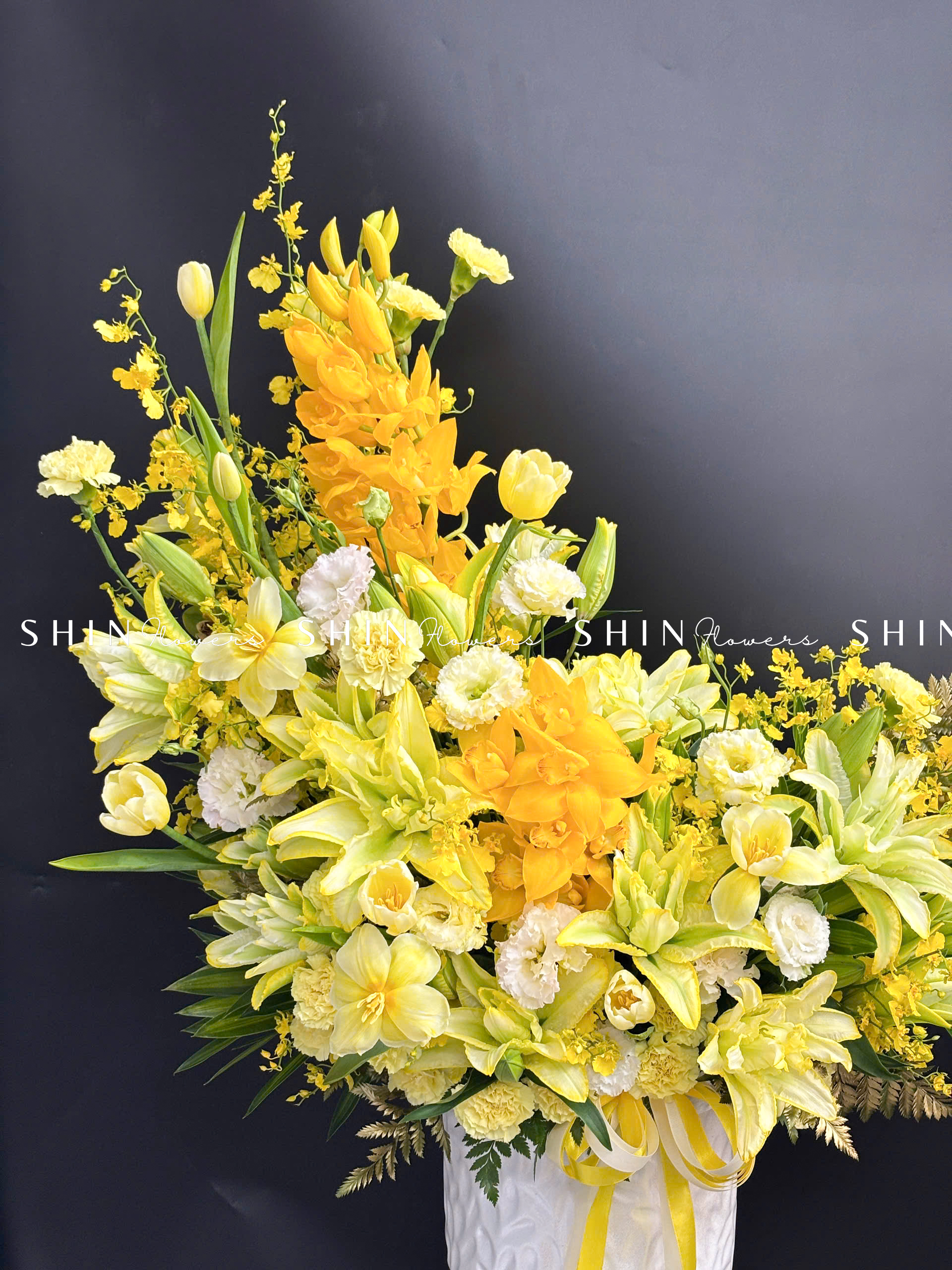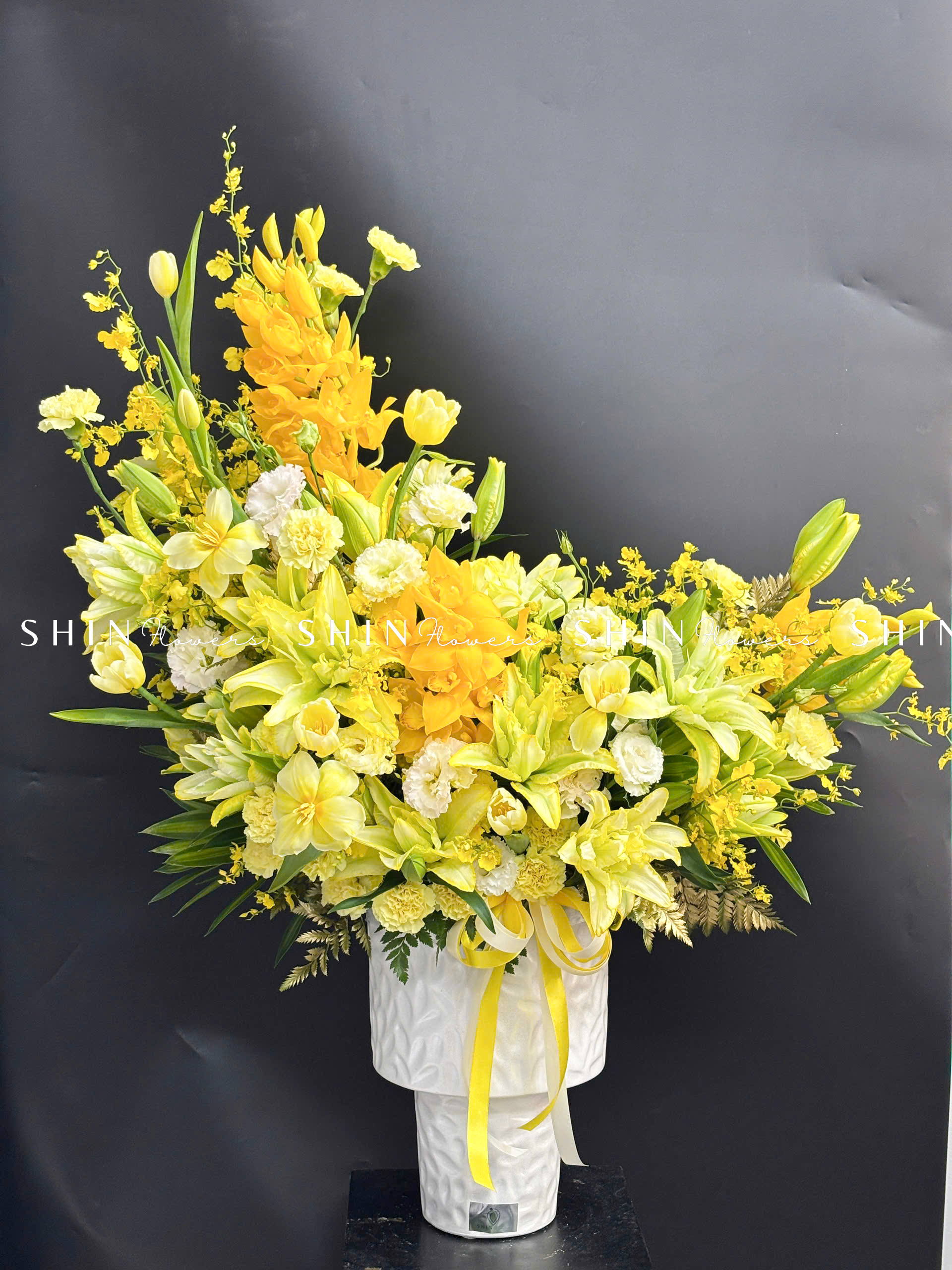 Lẵng Hoa Trăng Vàng Phú Qúy H138