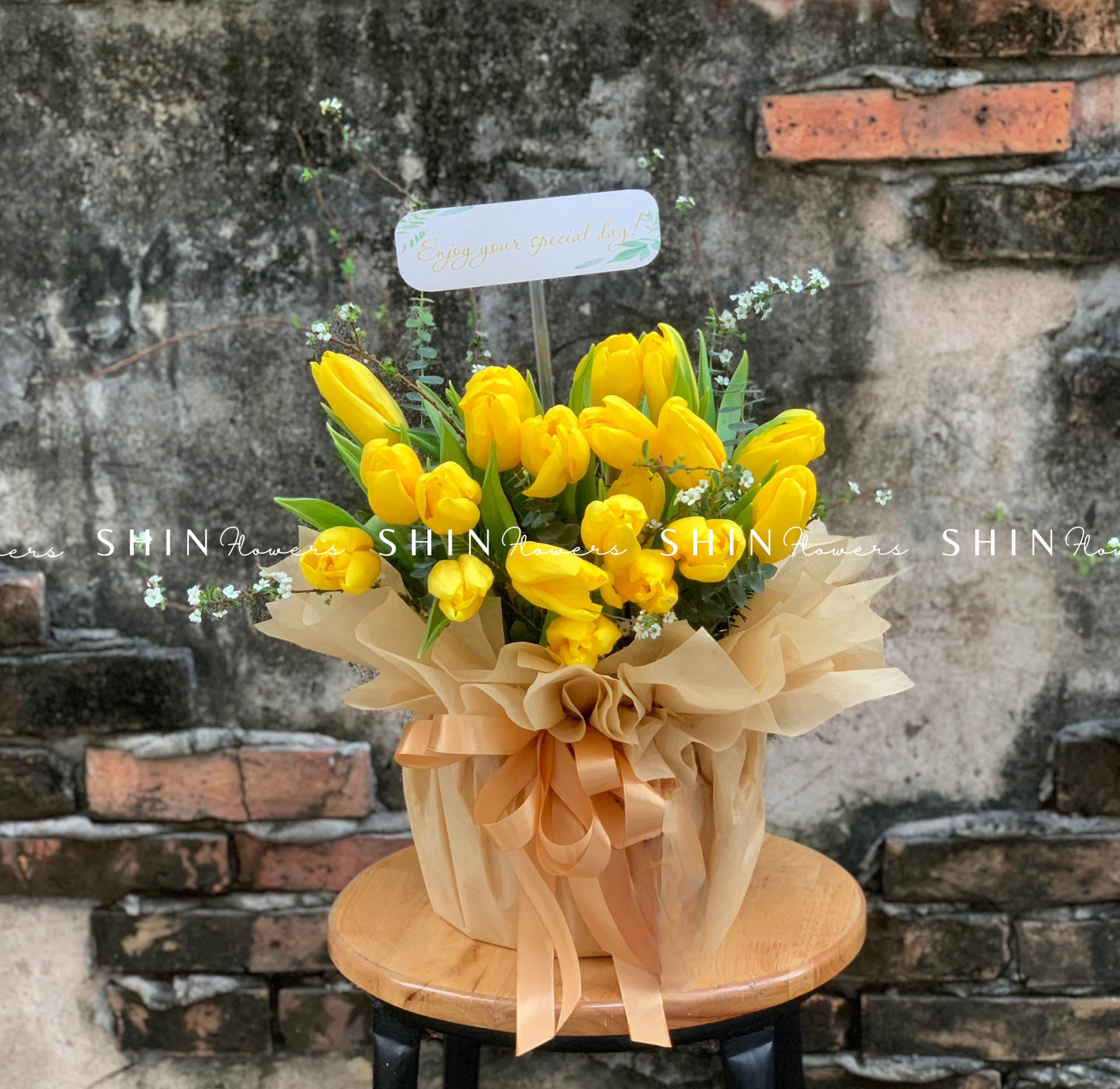 Lẵng Hoa Tulip Vàng Chúc Mừng H038